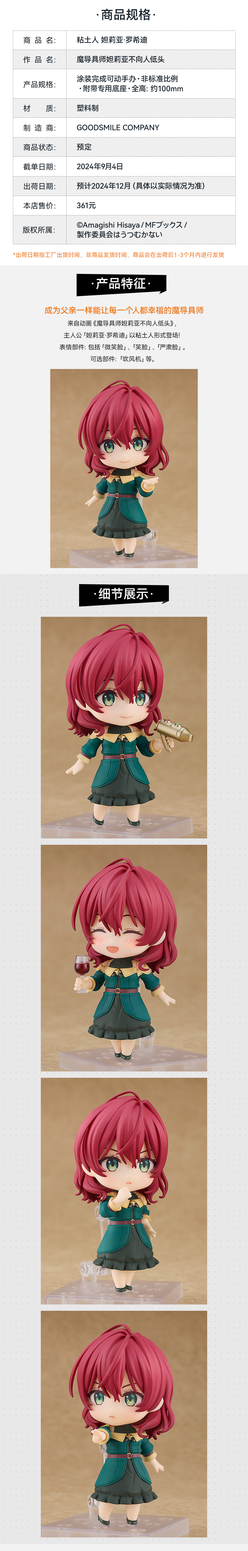【GSC补款】粘土人 菈妮 艾尔登法环 手办模玩 附特典