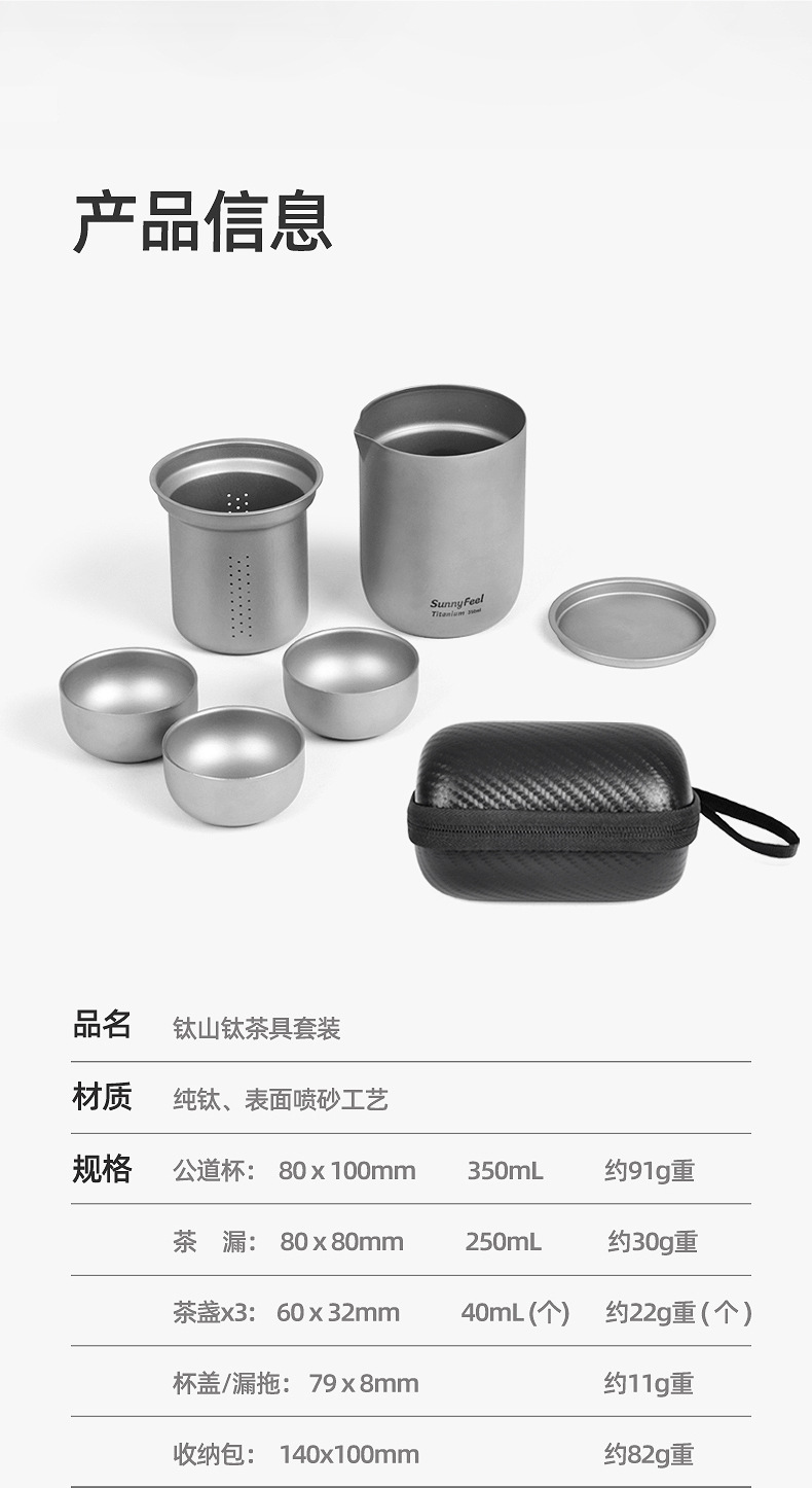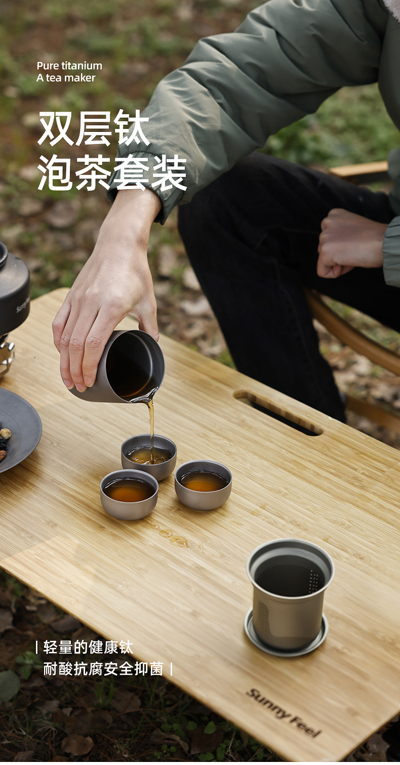 SunnyFeel山扉户外茶具套装_露营炊具便携收纳纯钛功夫茶套装