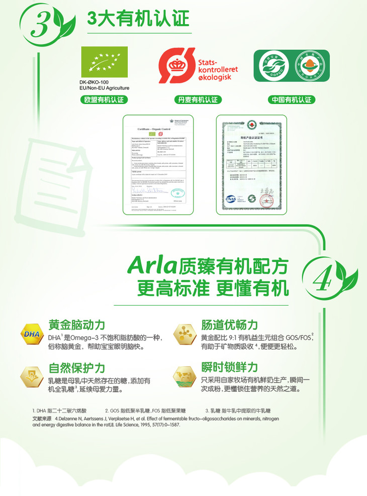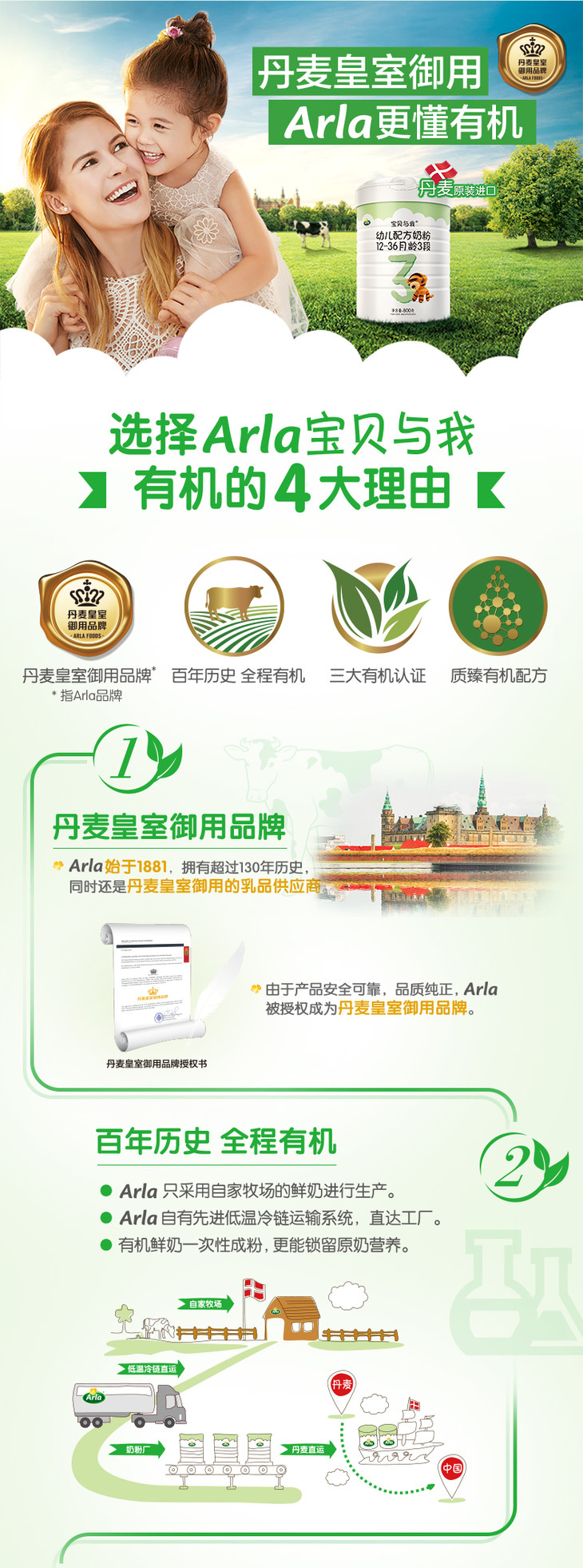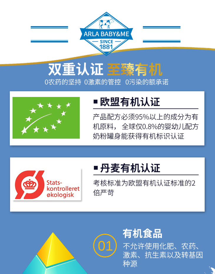 丹麦Arla宝贝与我有机幼儿配方奶粉3段12-36个月800g