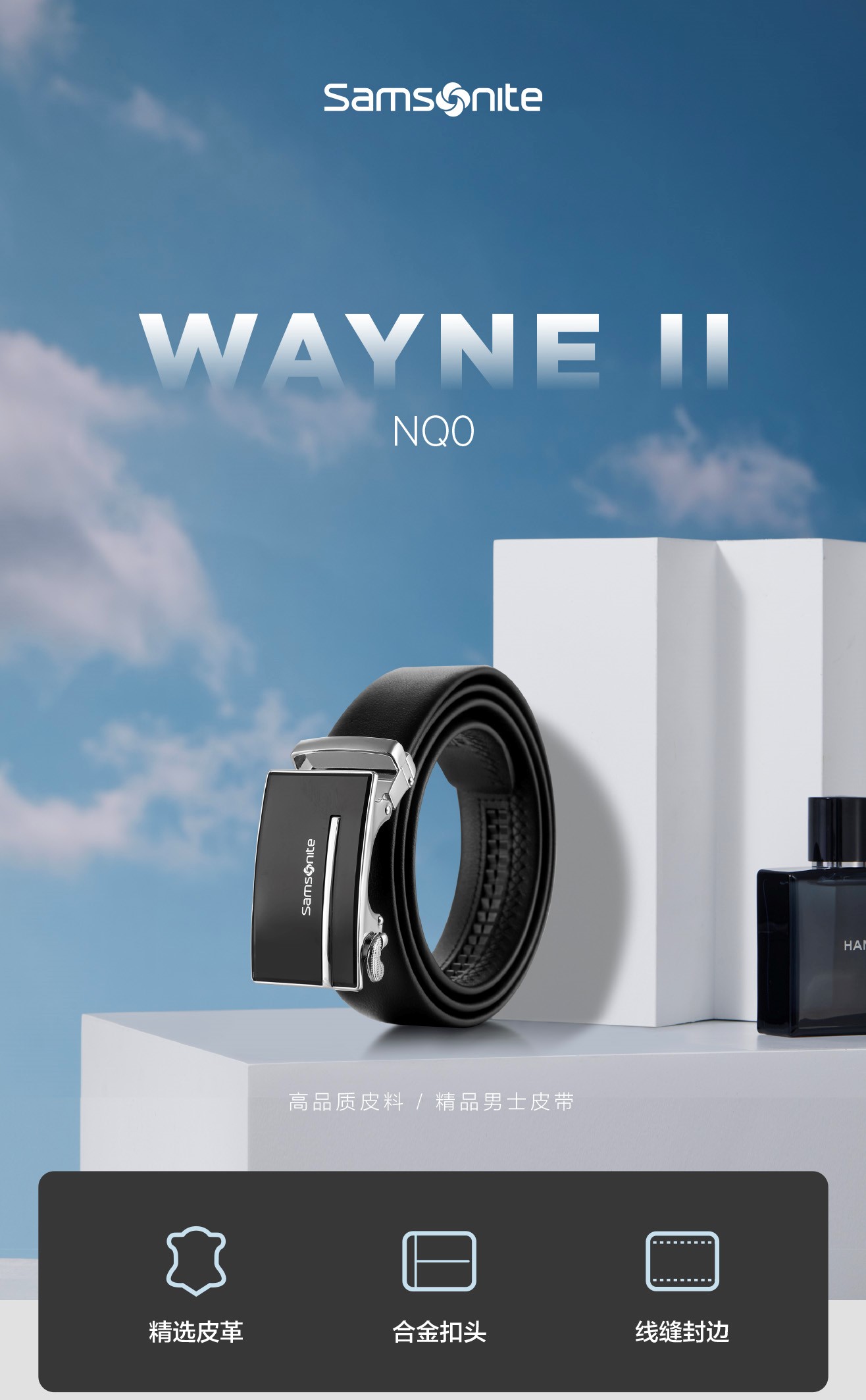 【员工内购】请注意,不退换。新秀丽男士经典简约牛皮商务休闲自动扣皮带NQ0*005