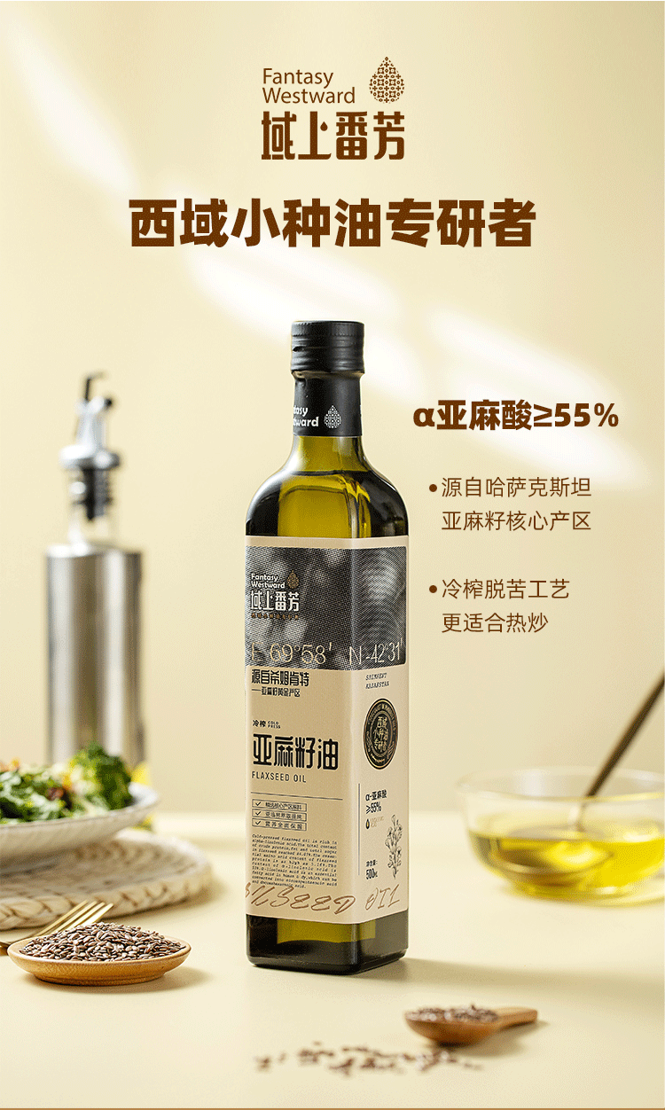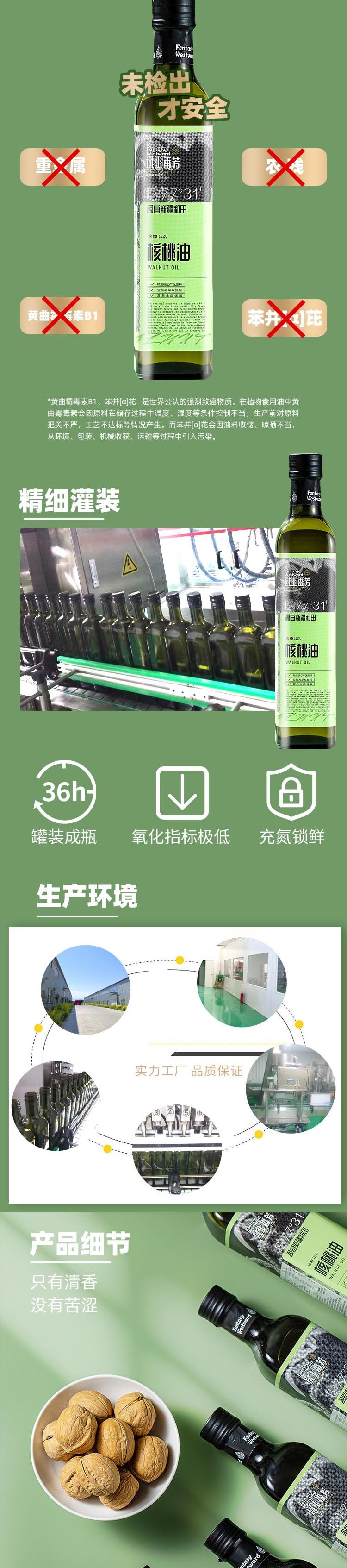 【域上番芳核桃油】新疆纯核桃油玻璃瓶物理压榨食用植物油家用