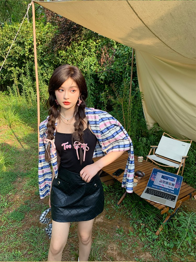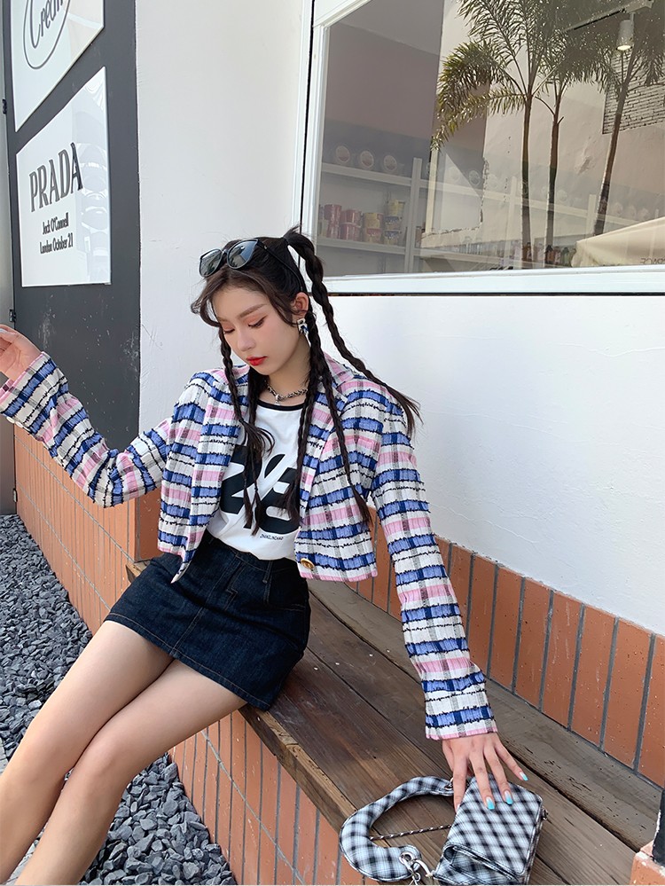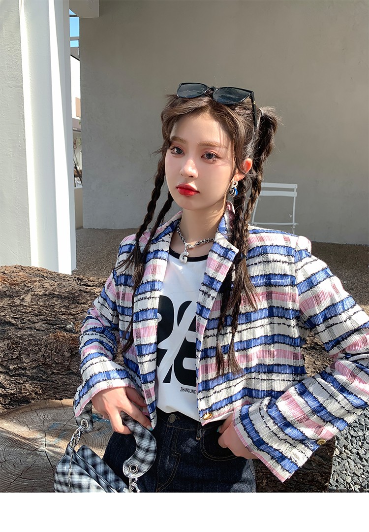 清仓捡漏 LIN CHAO ZHANG【蓝粉古着小香】拼色短款毛呢彩色格子外套