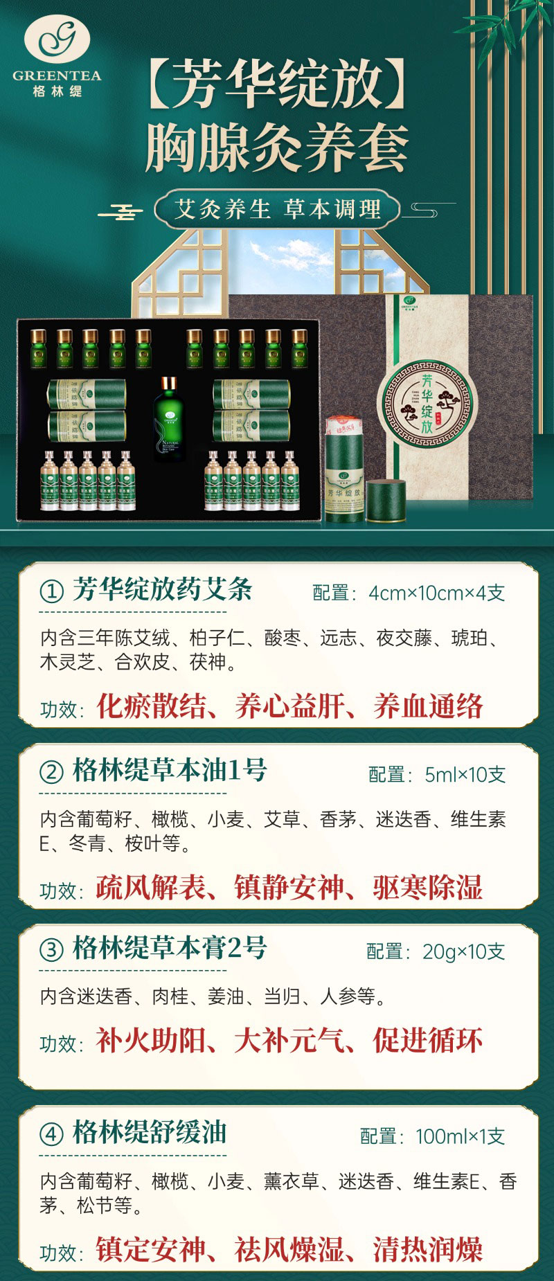 胸部套盒【格林缇】芳华绽放【艾灸】胸部身体套盒 胸腺养生套盒乳腺疏通按摩药油淋巴散结