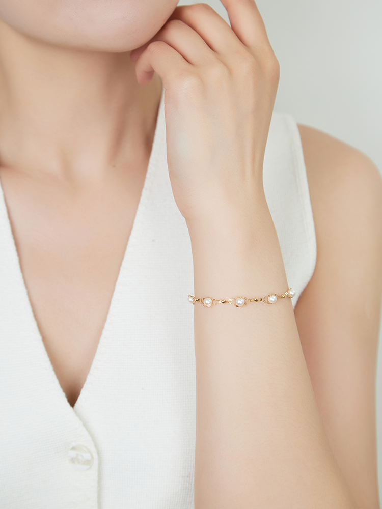 【挚友限定】悦甄 18k金akoya海水珍珠手链4-5mm