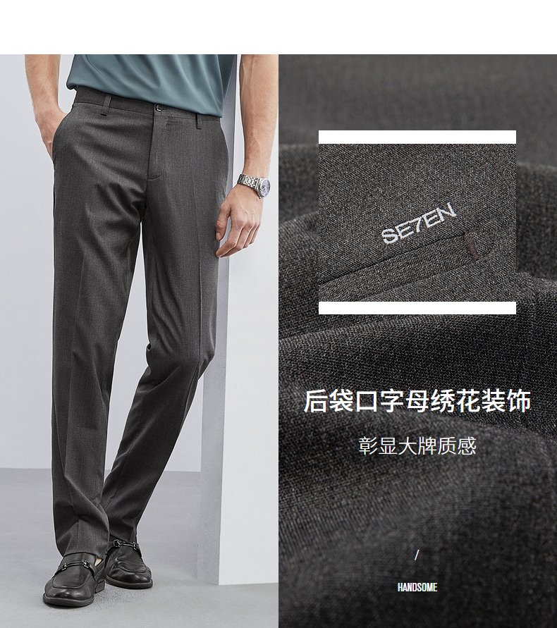 【含桑蚕丝/莫代尔】柒牌西裤男士春夏新款商务通勤直筒男裤 124H71210