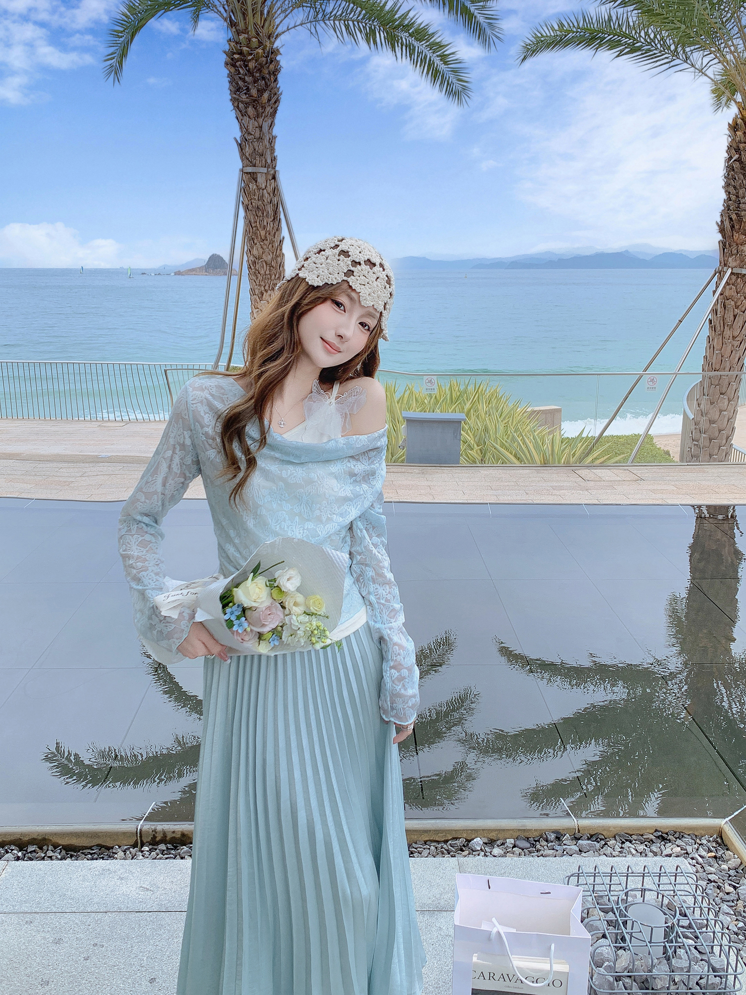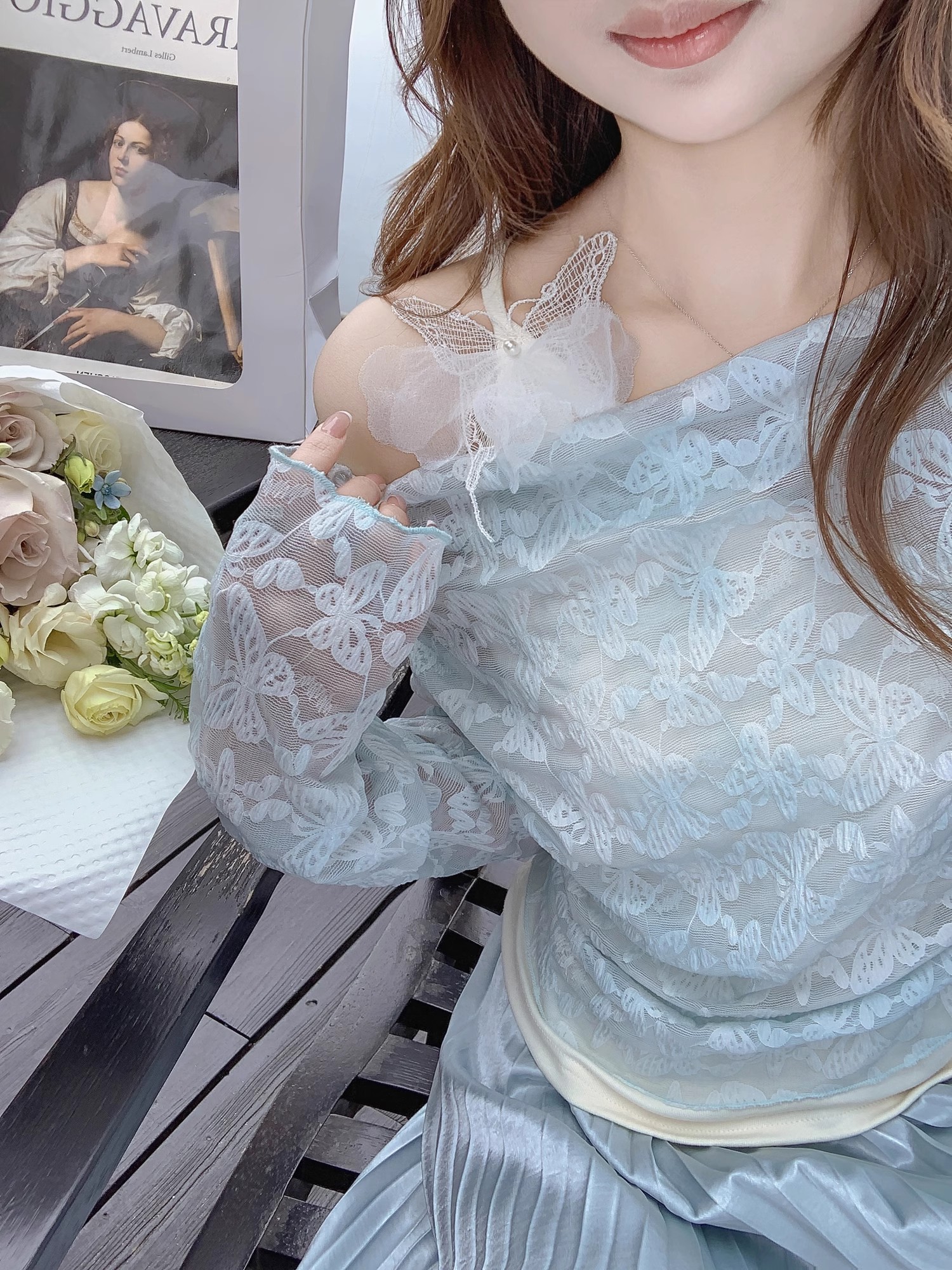 张心子【温柔可露丽】立体花温柔挂脖打底衫上衣 U2512017