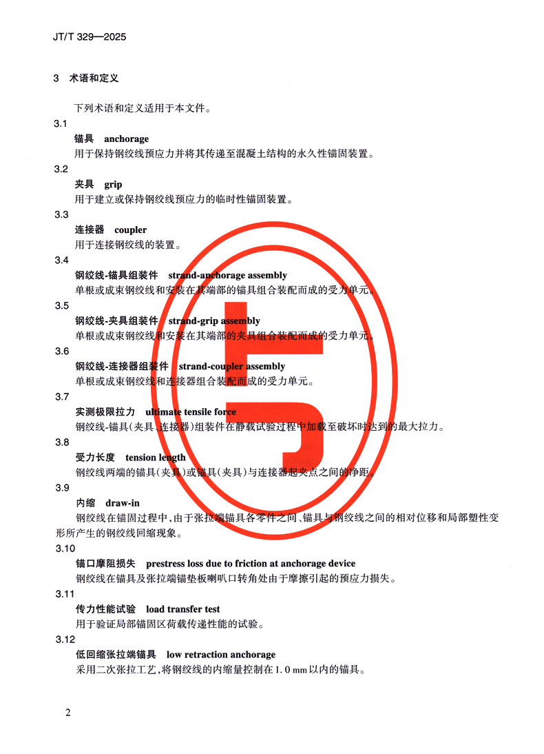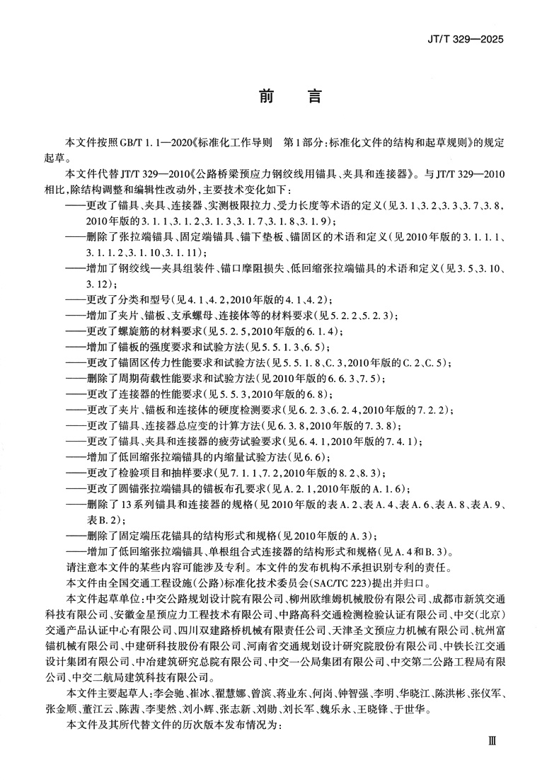 公路桥梁预应力钢绞线用锚具、夹具和连接器(JT/T 329—2025)