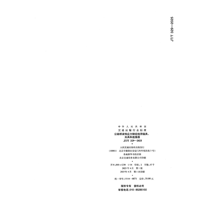 书名:公路桥梁预应力钢绞线用锚具、夹具和连接器(JT/T 329—2025)
