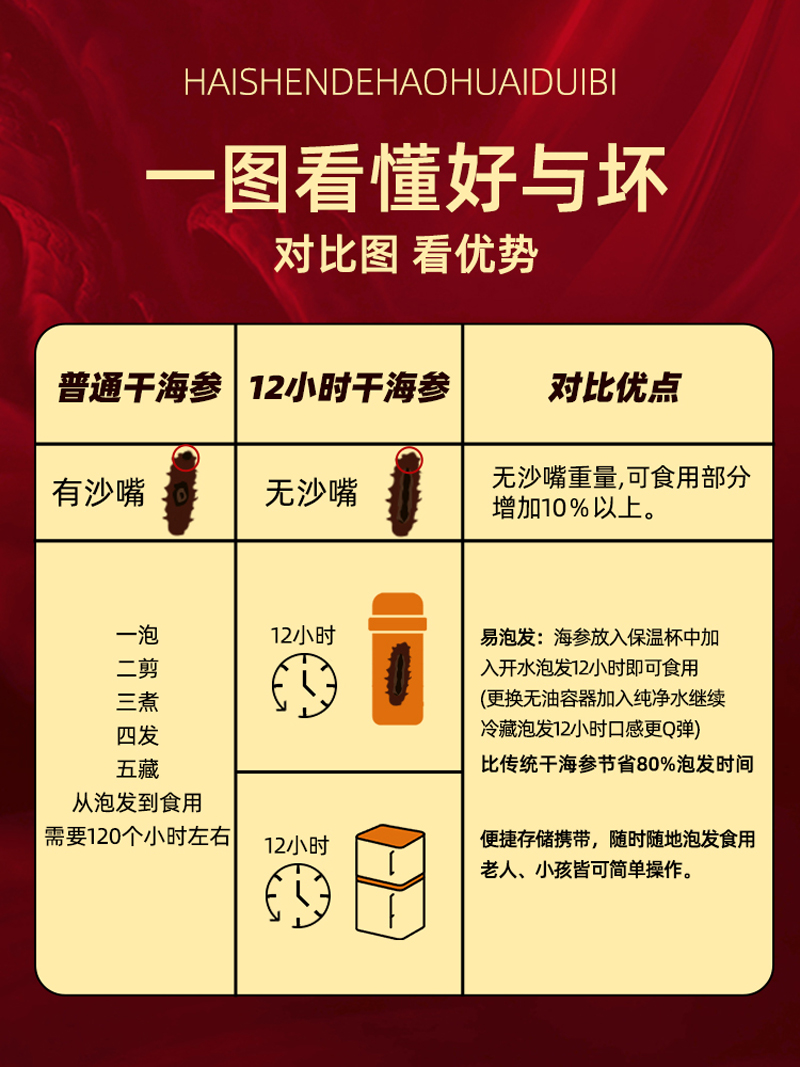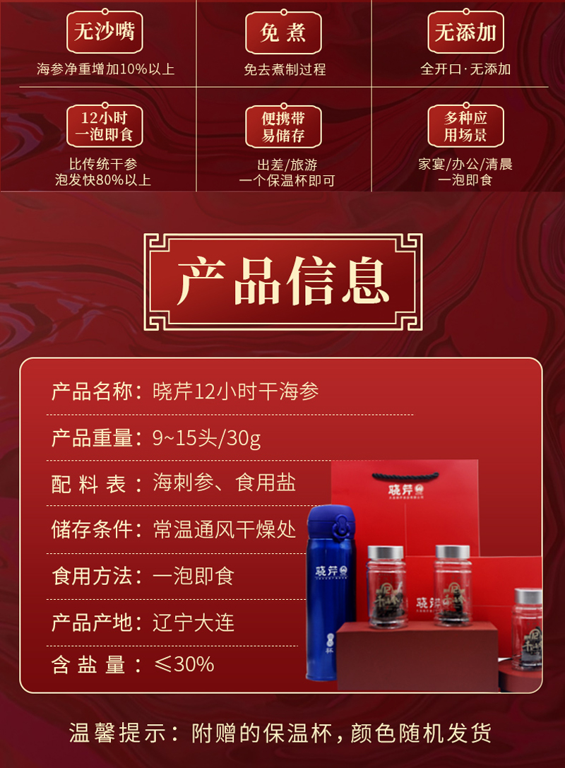 [晓芹]12小时干海参(30g/盒 9-15头)加送泡发杯1个