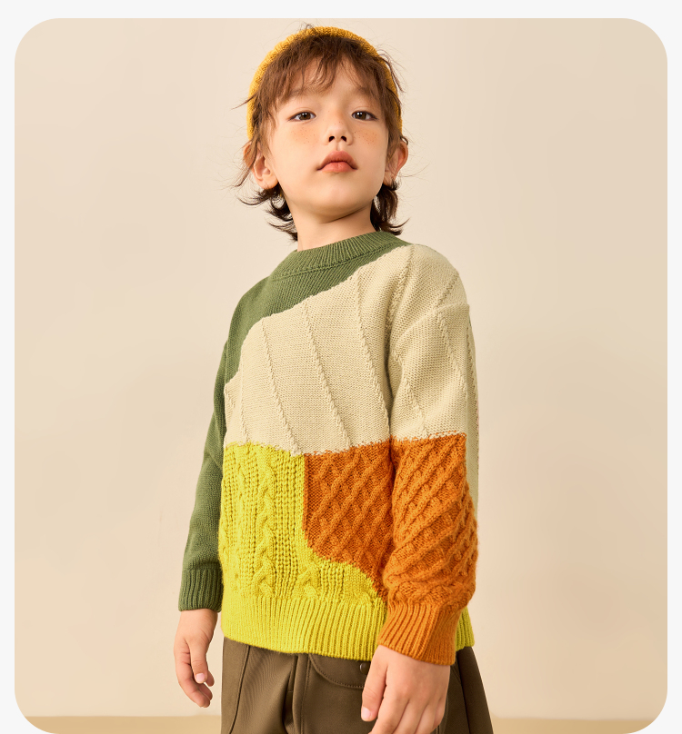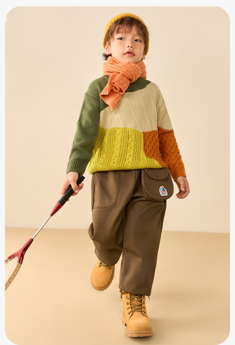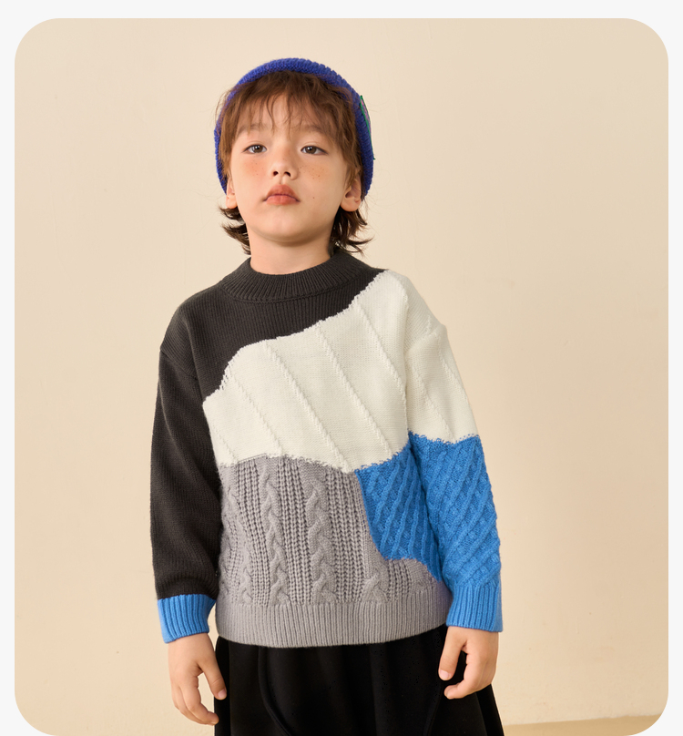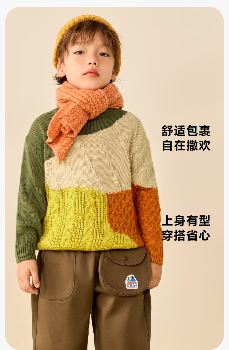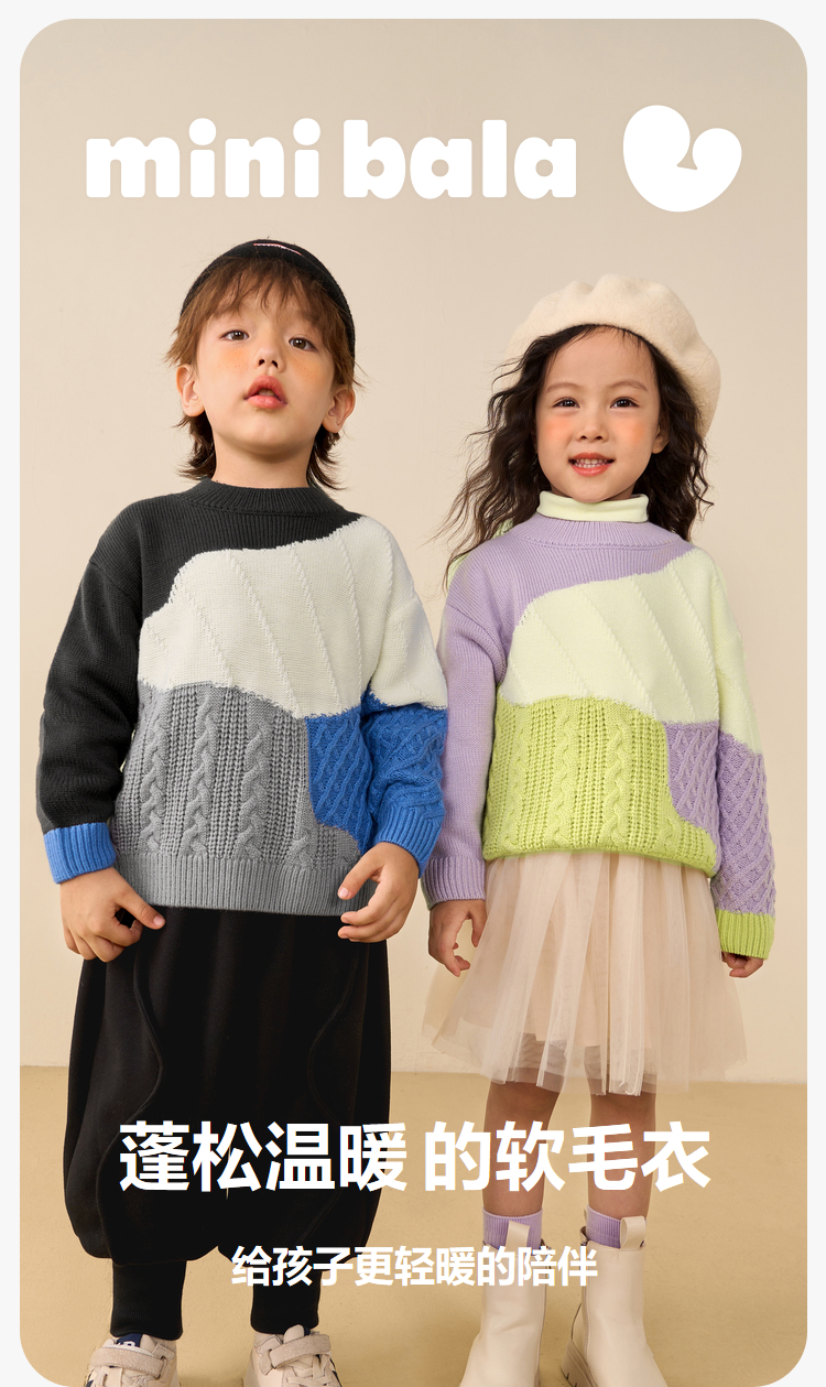 迷你巴拉男童女童针织衫冬季宝宝时尚洋气宽松舒适撞色毛衣