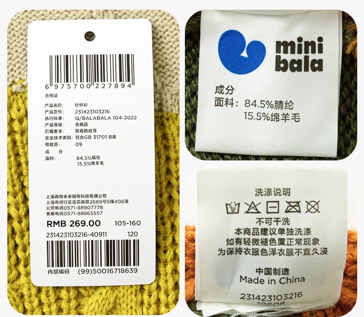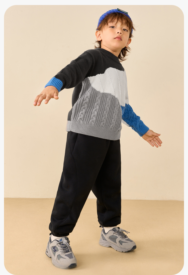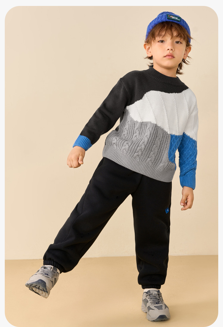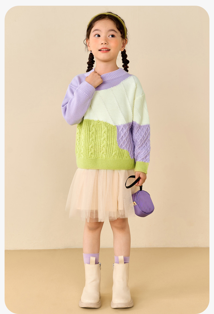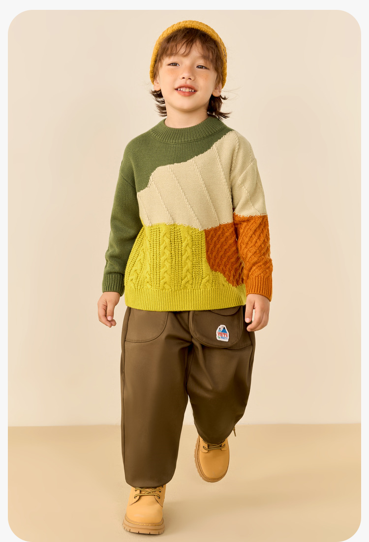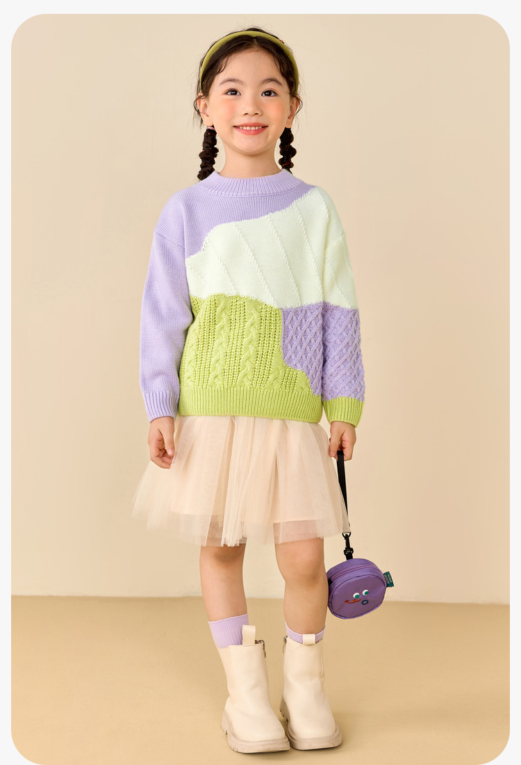 迷你巴拉男童女童针织衫冬季宝宝时尚洋气宽松舒适撞色毛衣
