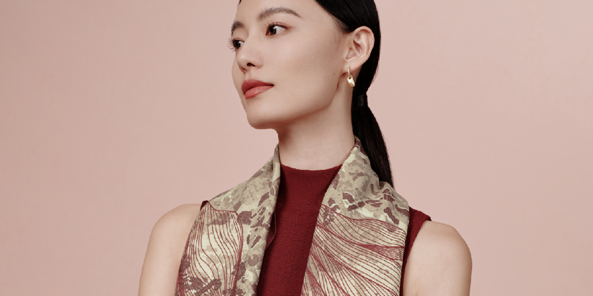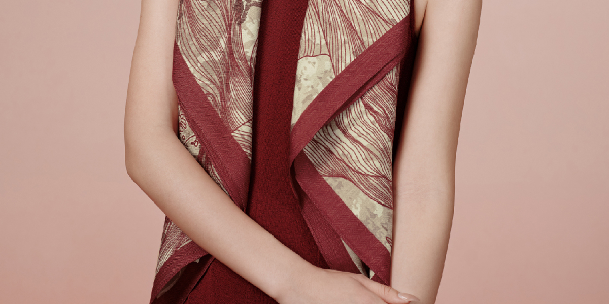 万事利“梦瑶”63厘米双面印花真丝中方巾