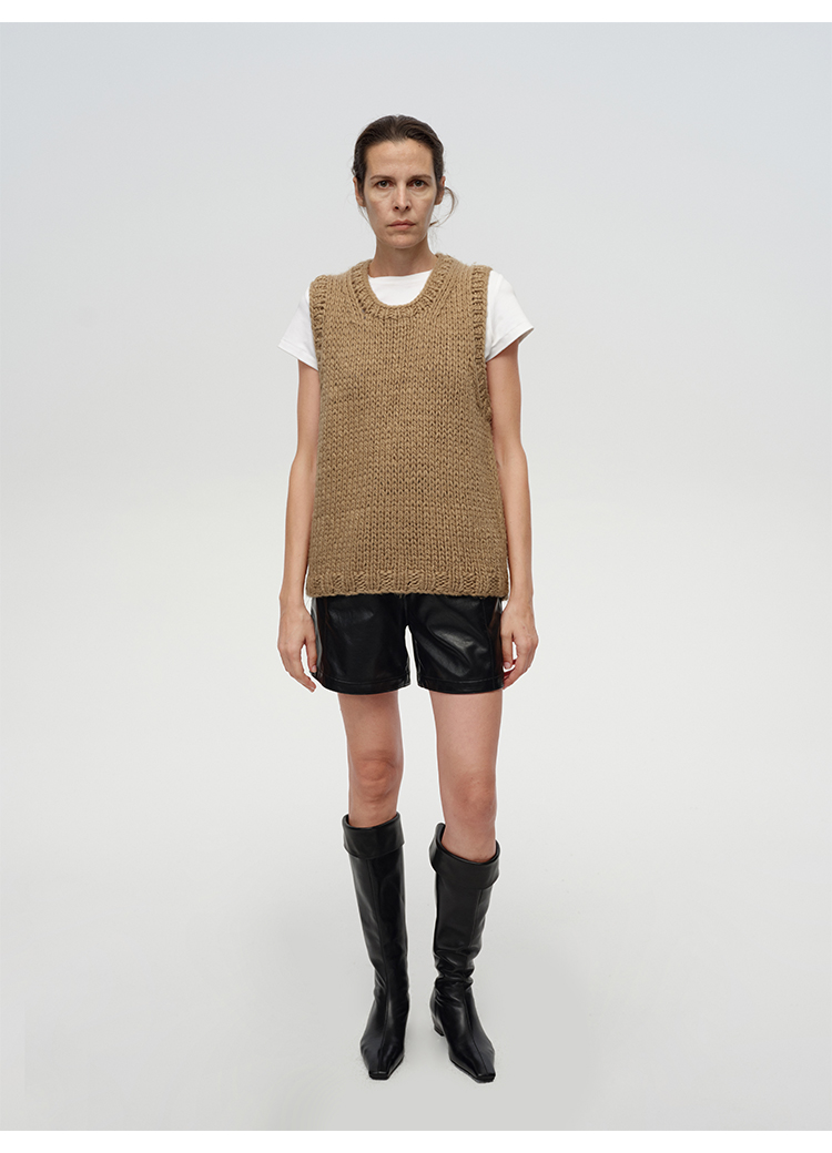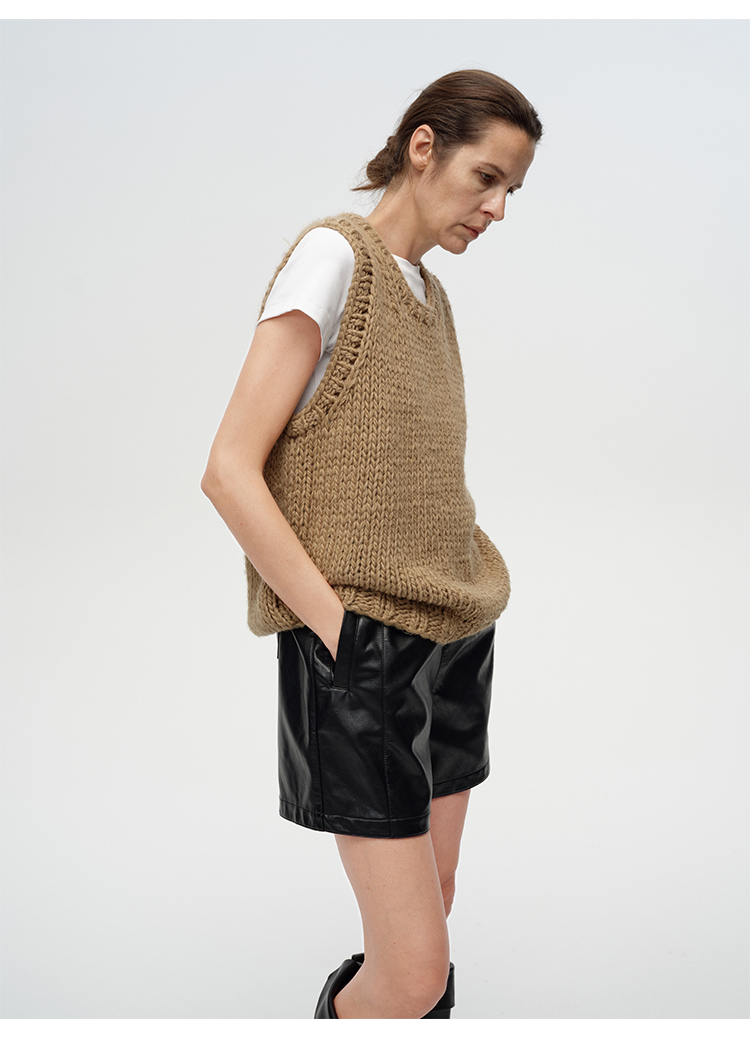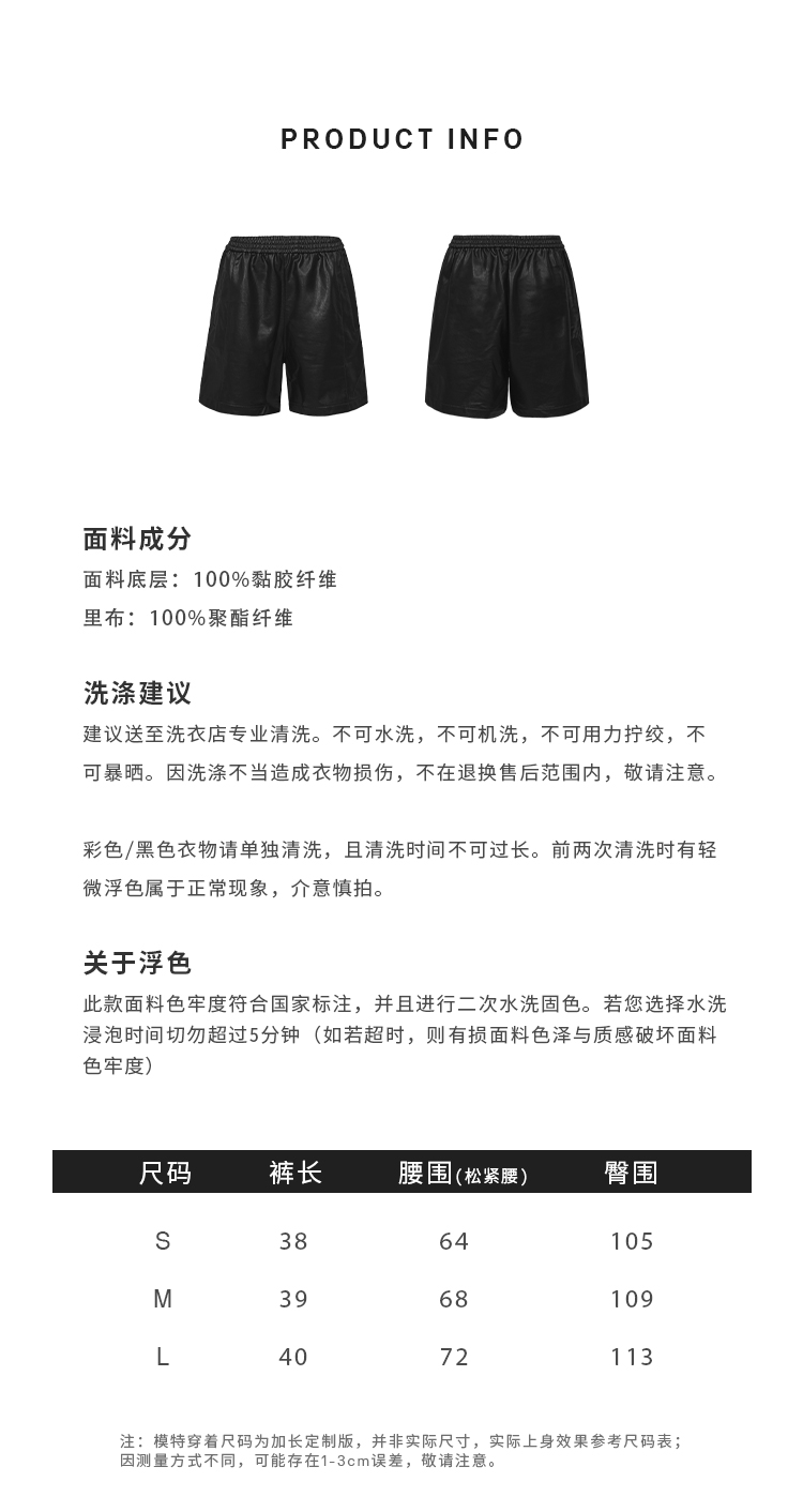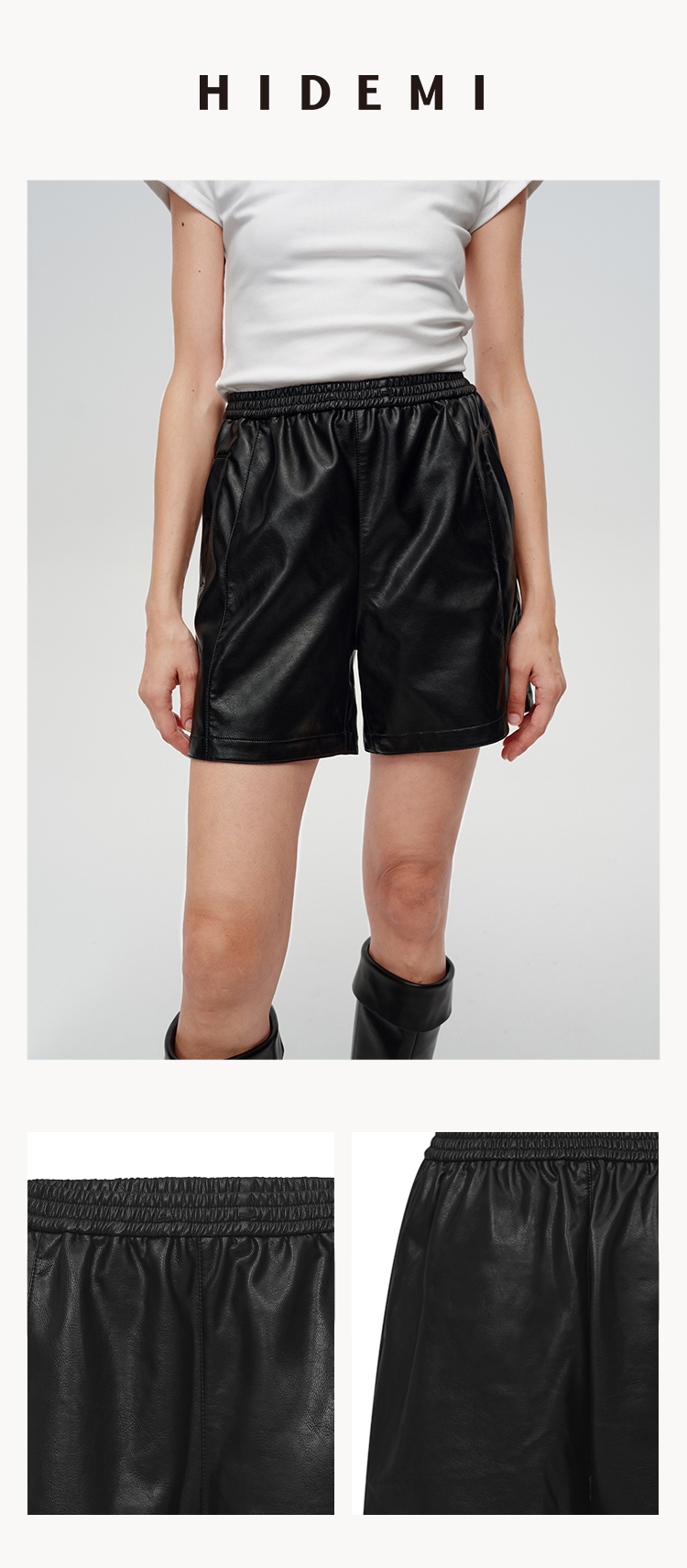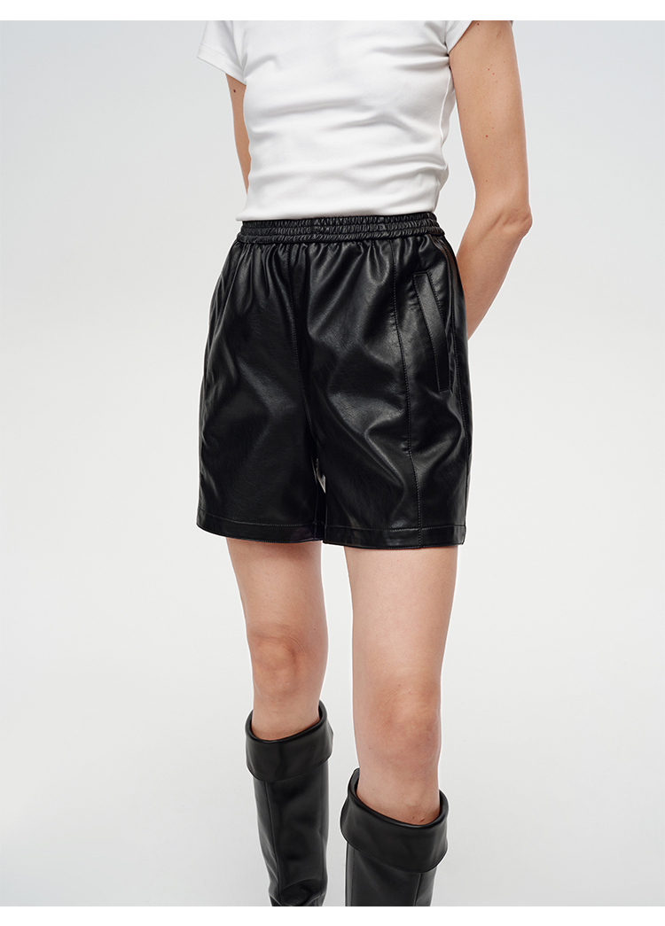 HIDEMI 超显瘦中腰款可再生蛋白皮环保皮松紧带宽松短裤