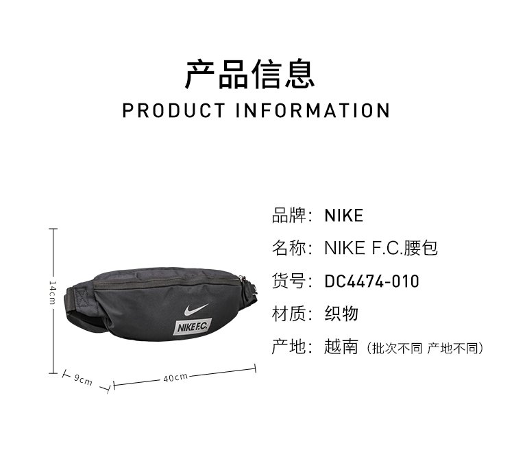 NIKE/耐克FC足球运动休闲收纳腰包成人男DC4474-010