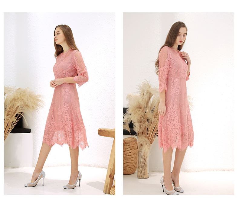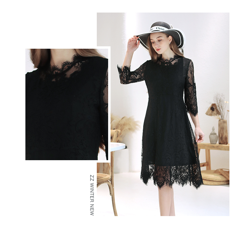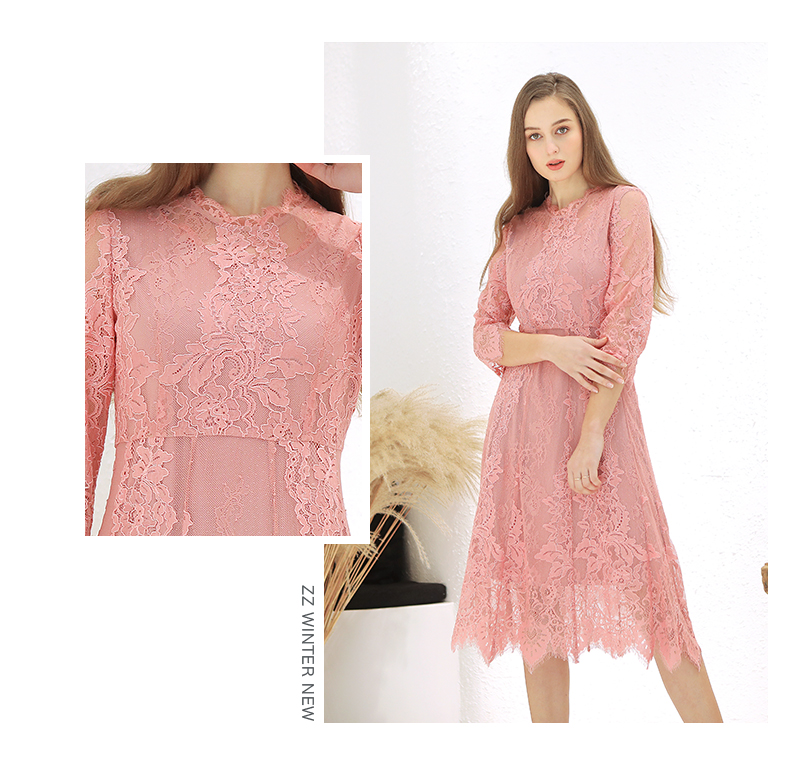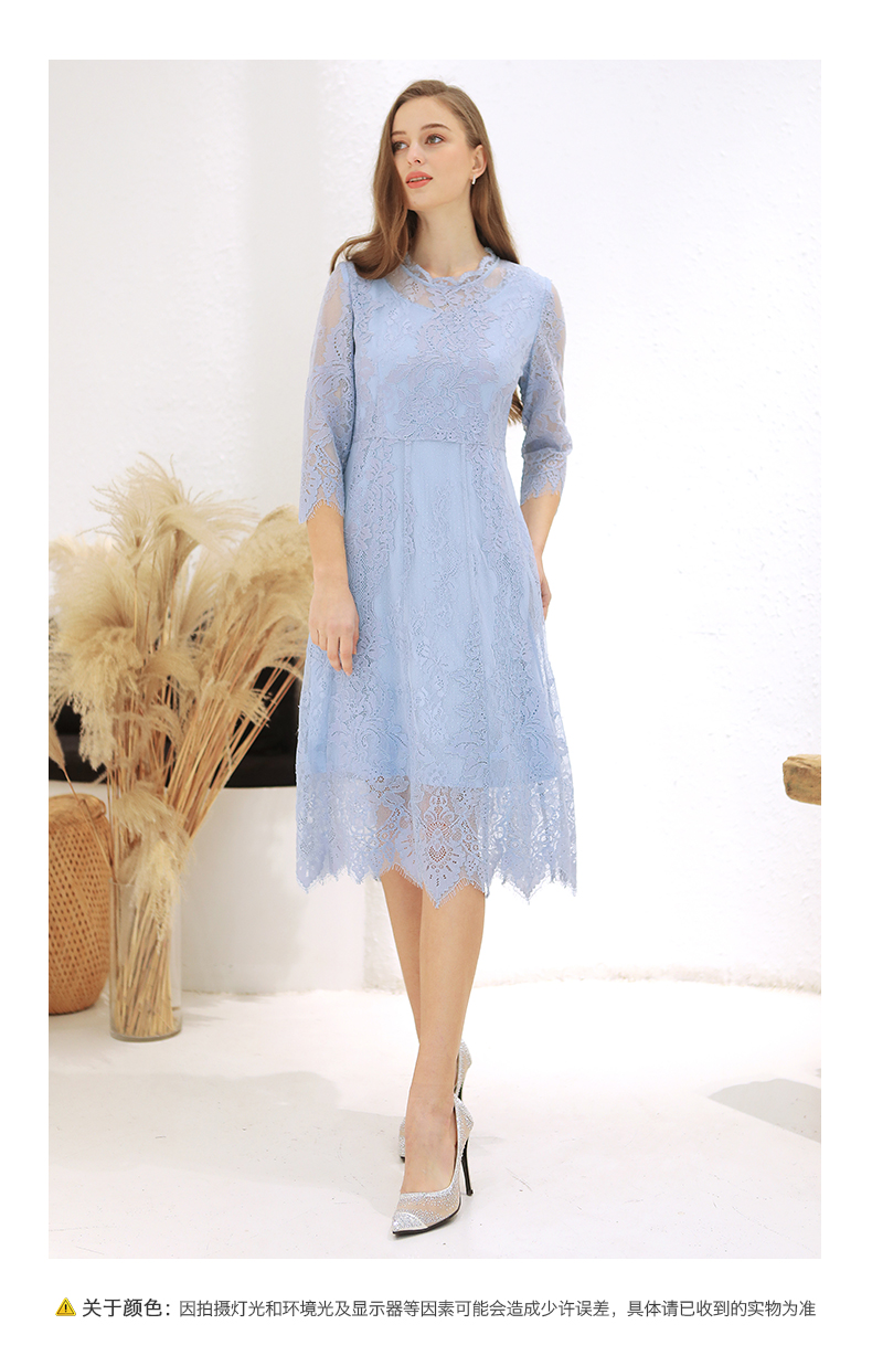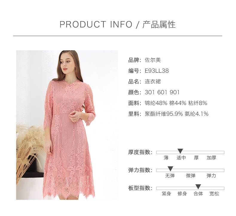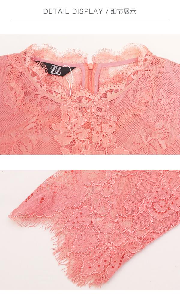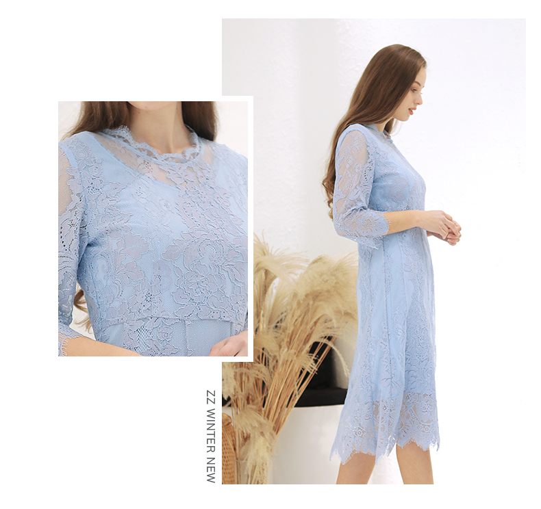 佐尔美春季新款蕾丝气质显瘦收腰长袖修身女士连衣裙E93LL38