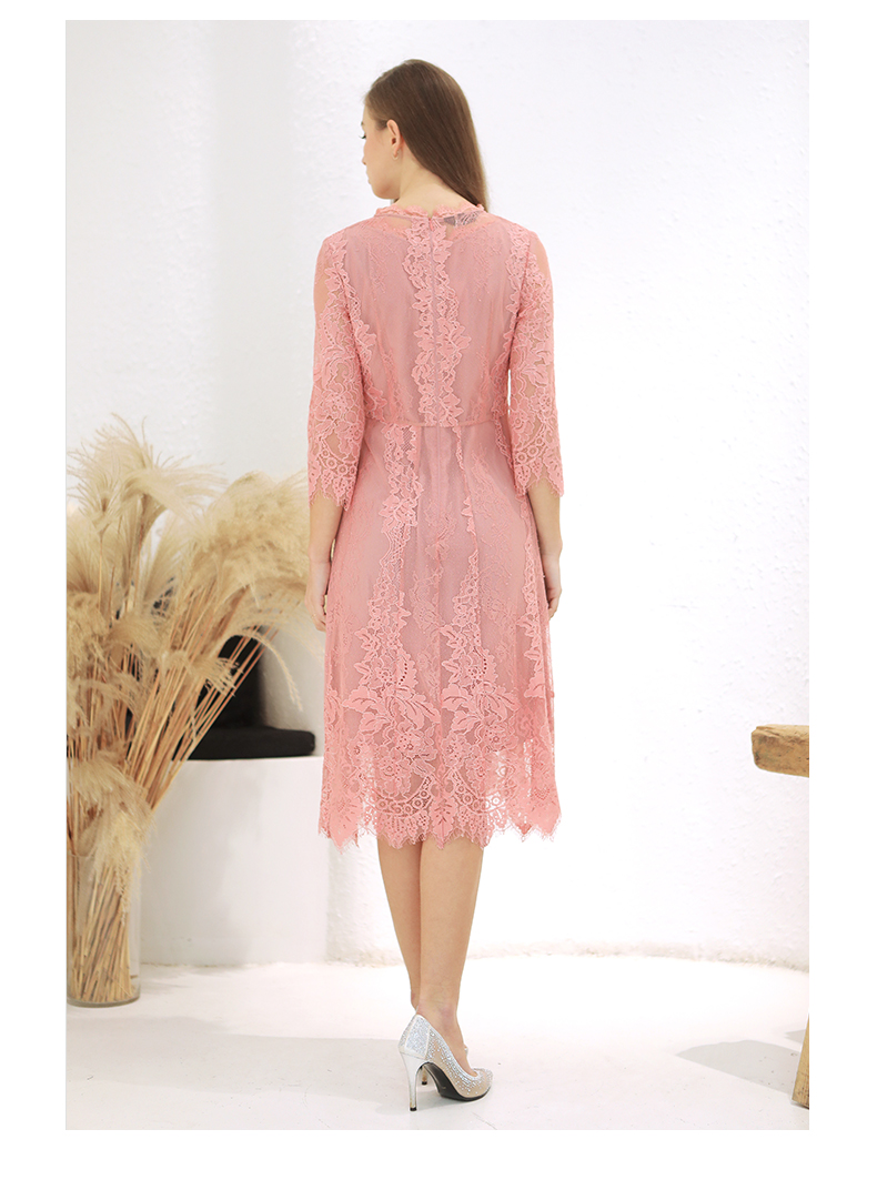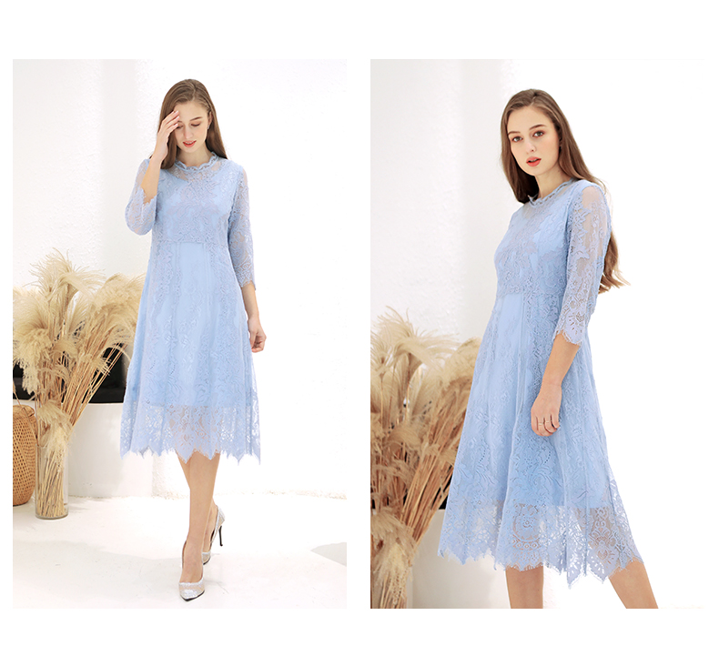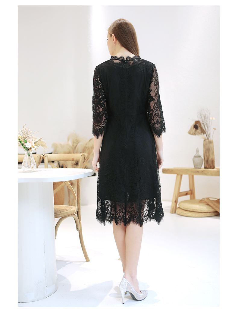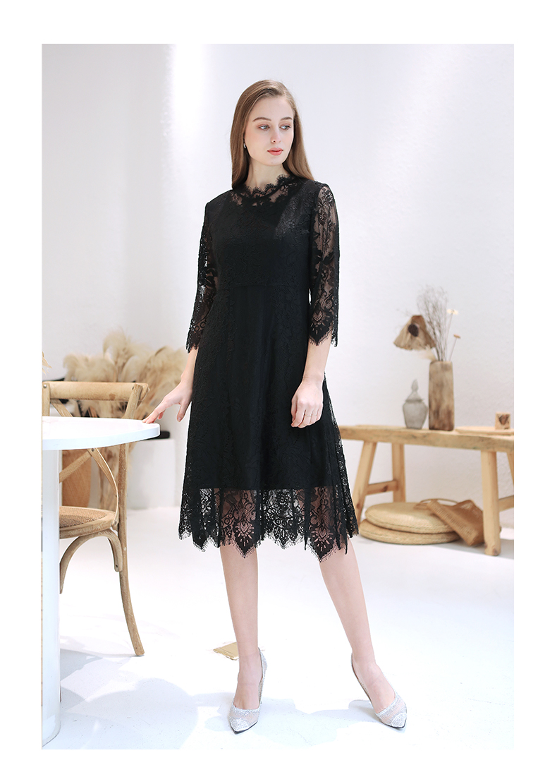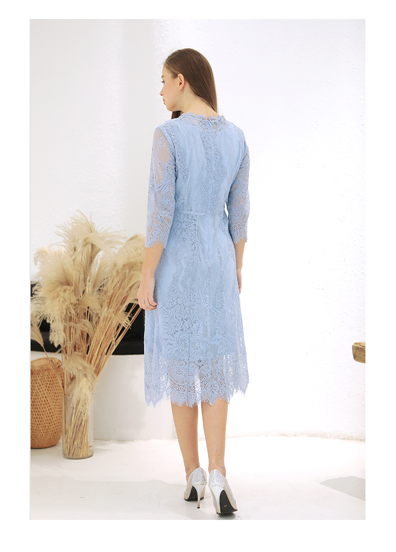 佐尔美春季新款蕾丝气质显瘦收腰长袖修身女士连衣裙E93LL38