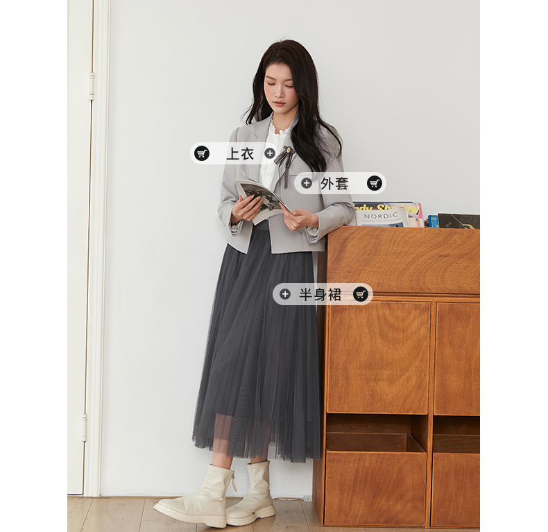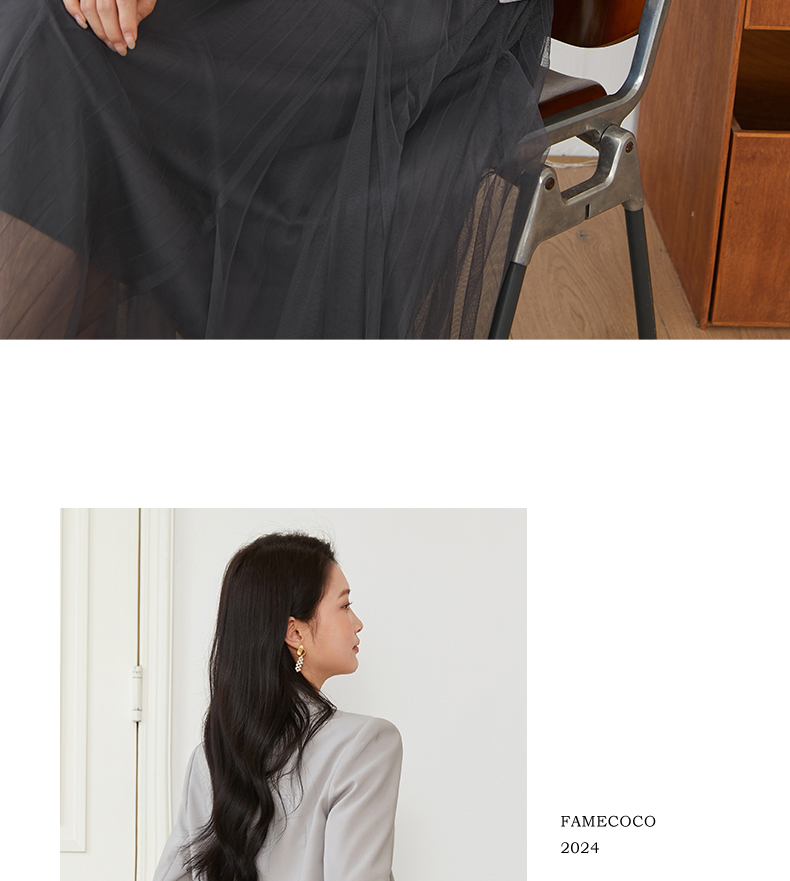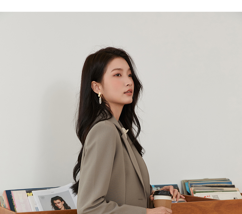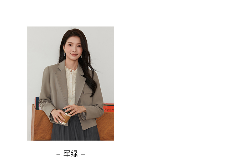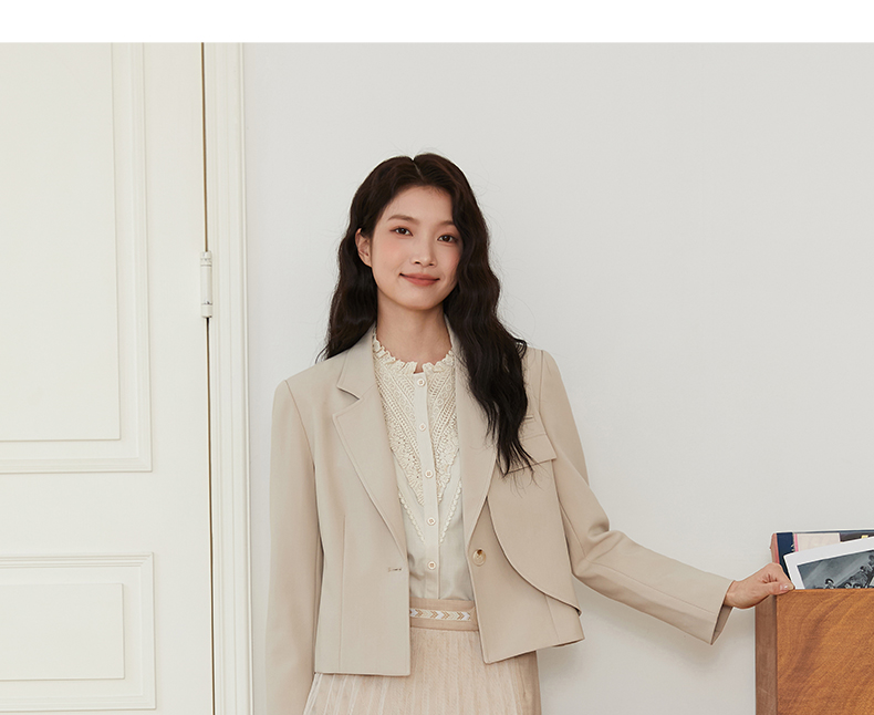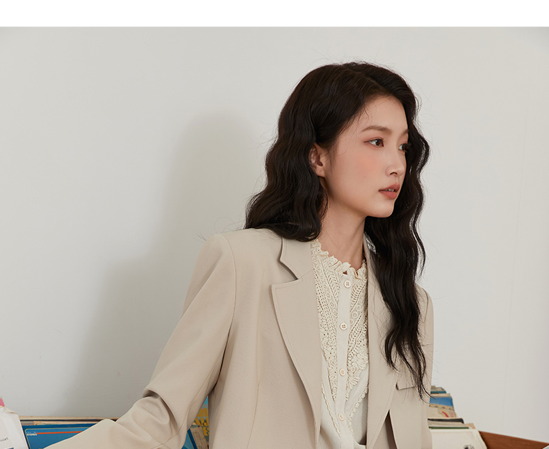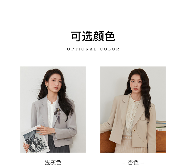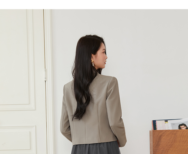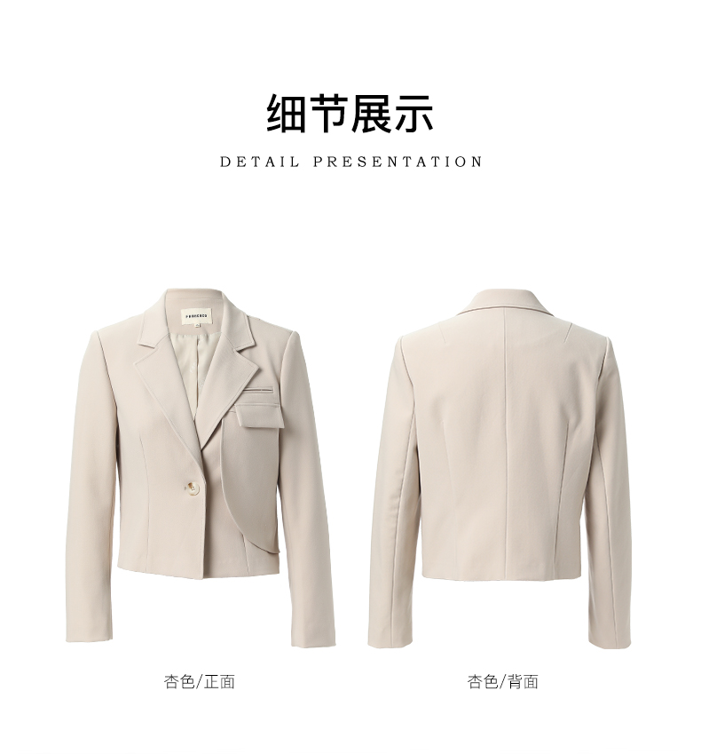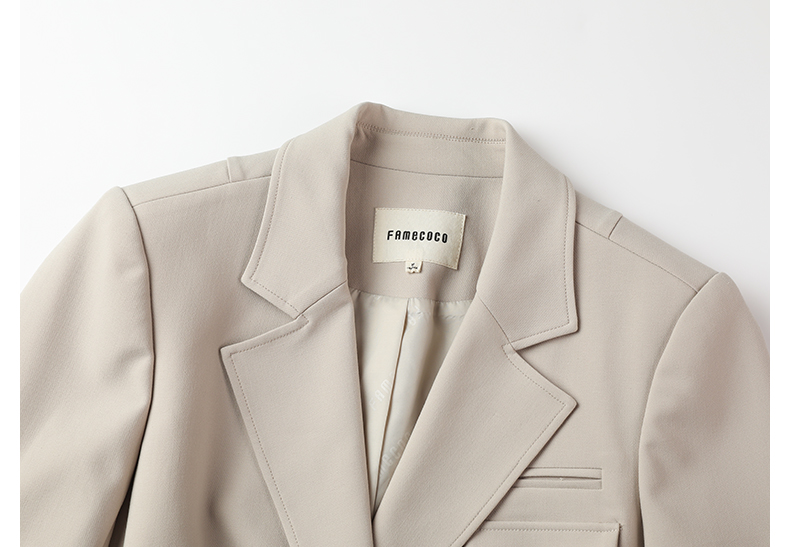 Famecoco文艺范西装外套纯色短款拼接设计职业风春秋款FAB6AW010