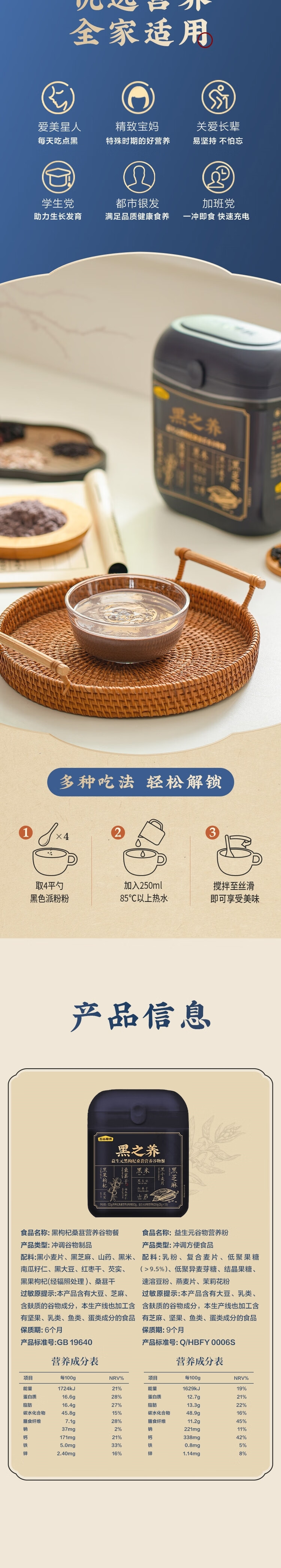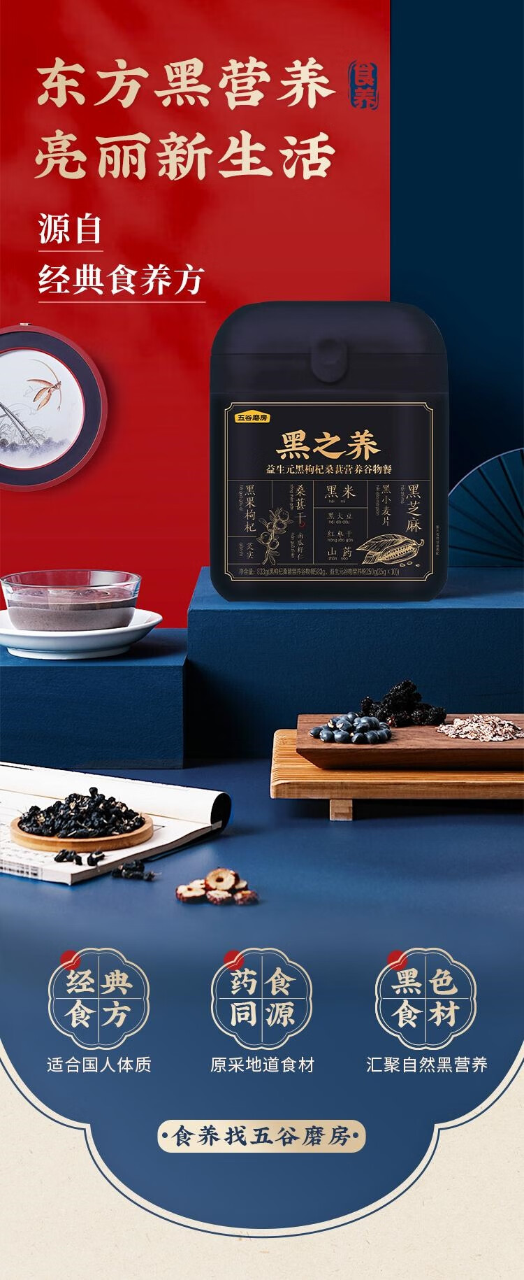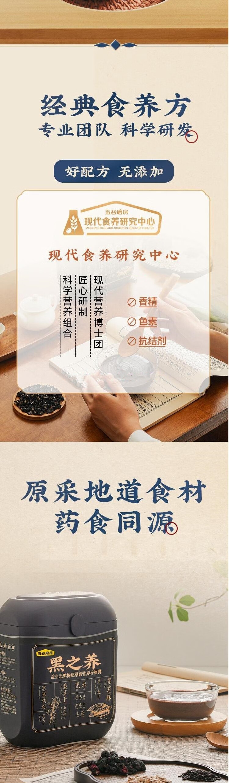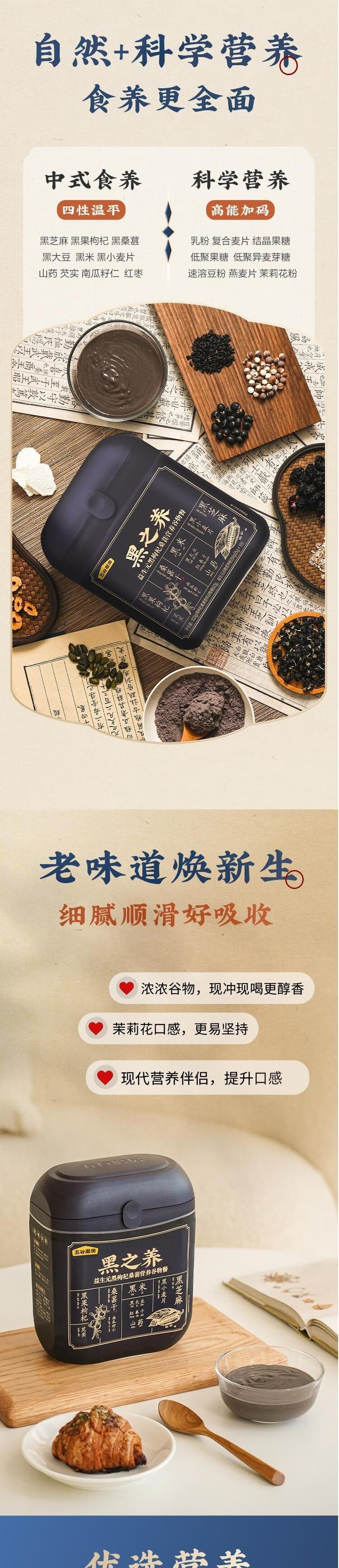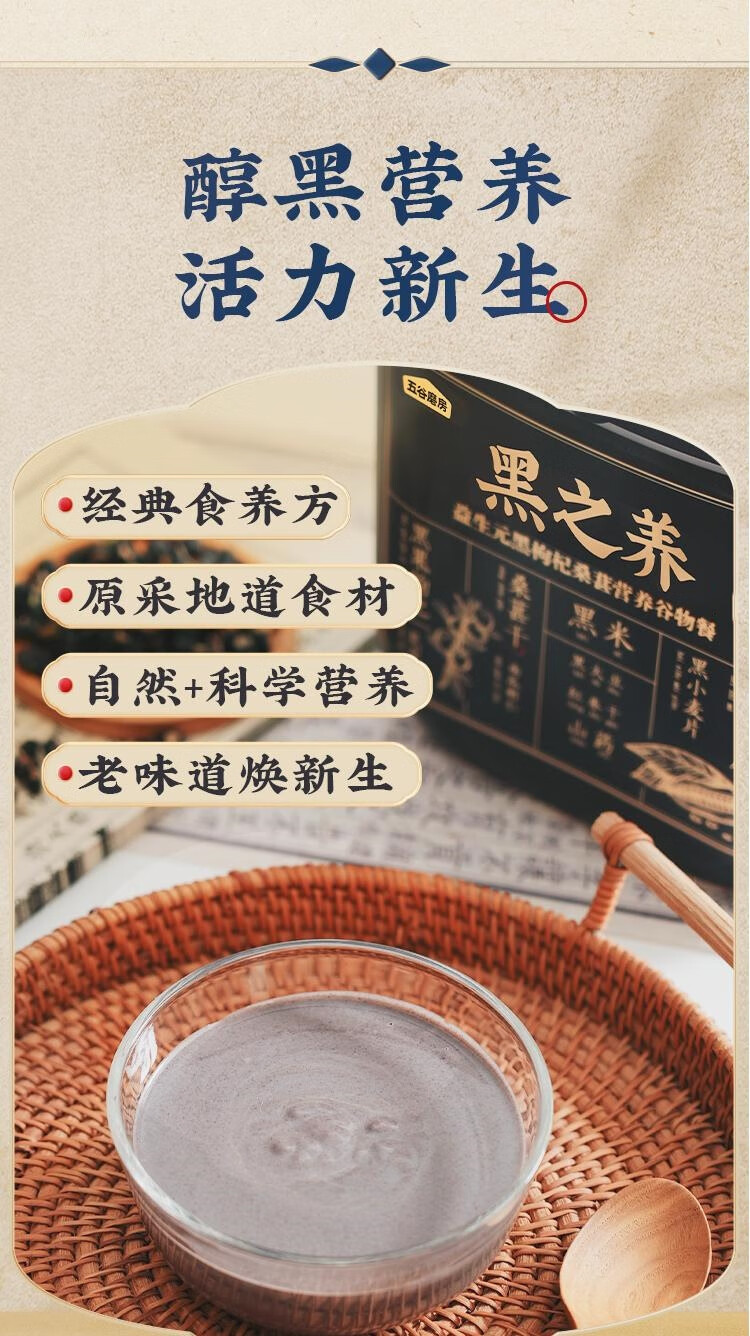 五谷磨房黑之养(益生元黑枸杞桑葚营养谷物餐)833g/套
