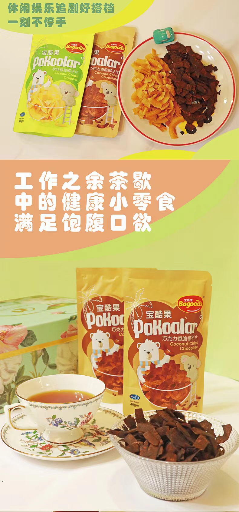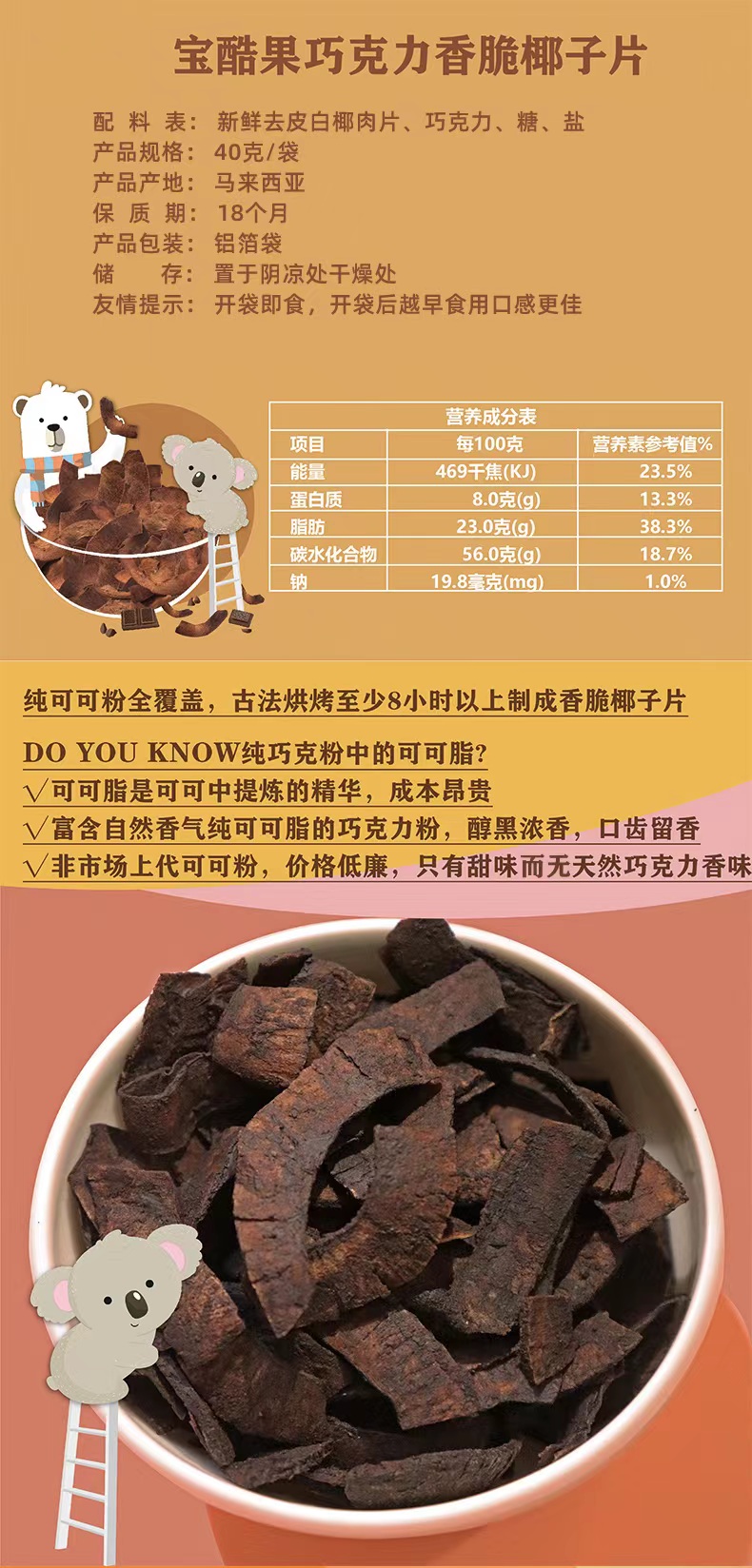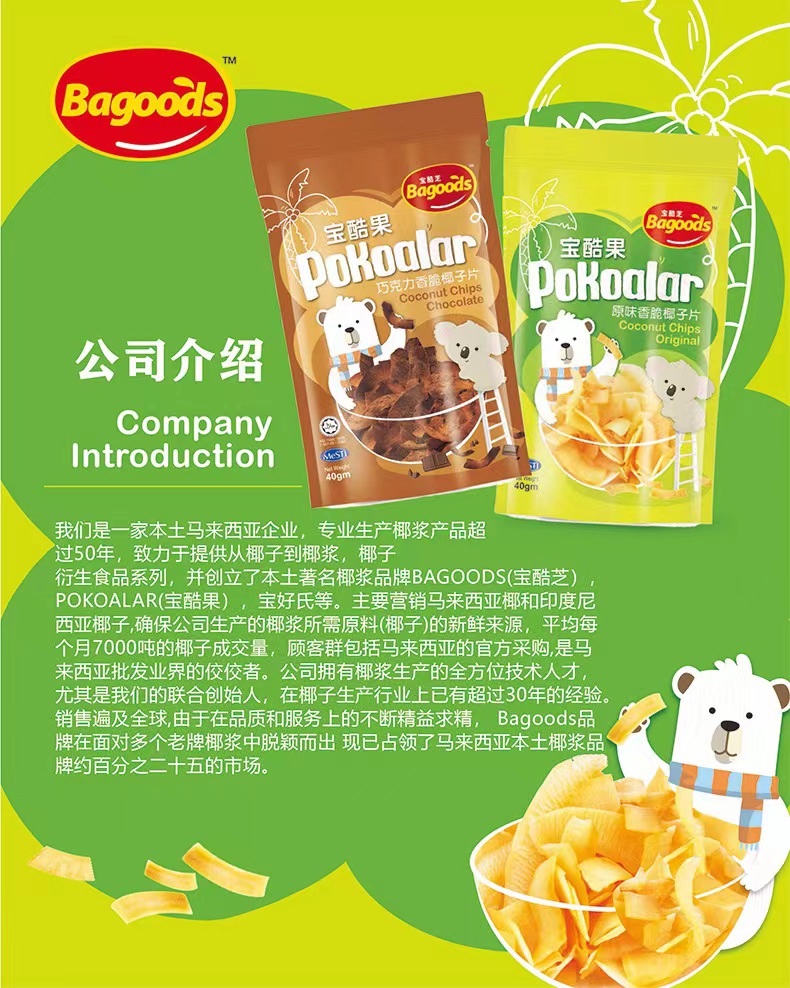 pokoalar宝酷果椰子脆片 马来西亚进口 纯可可脂 原味/可可味