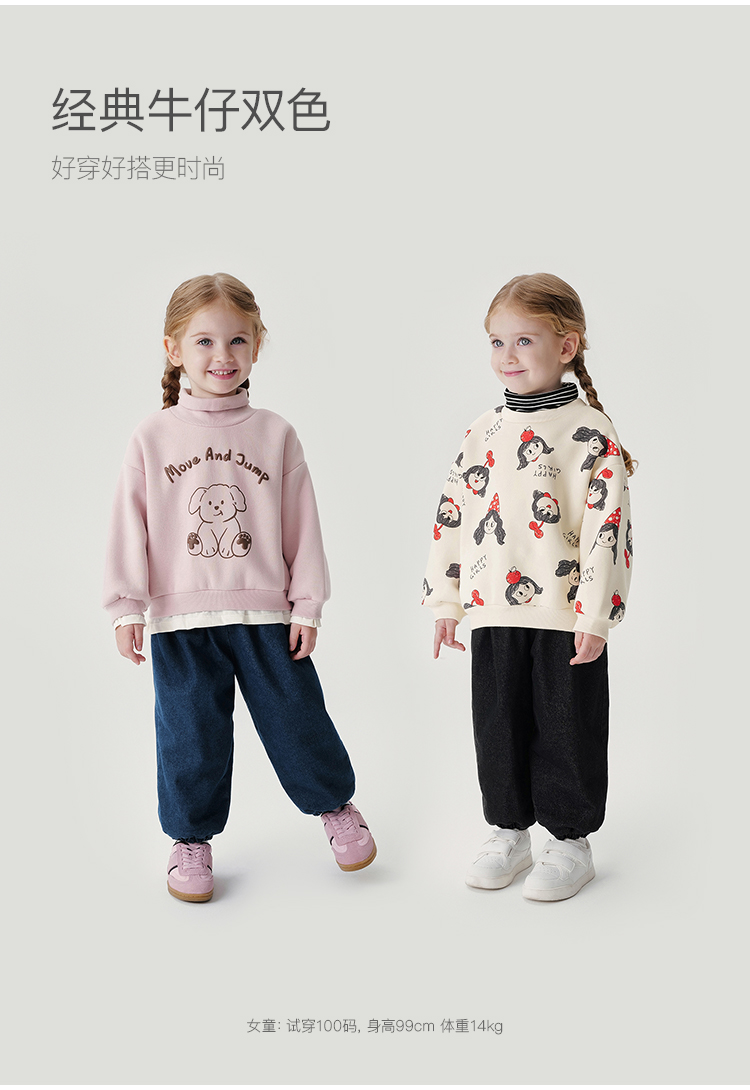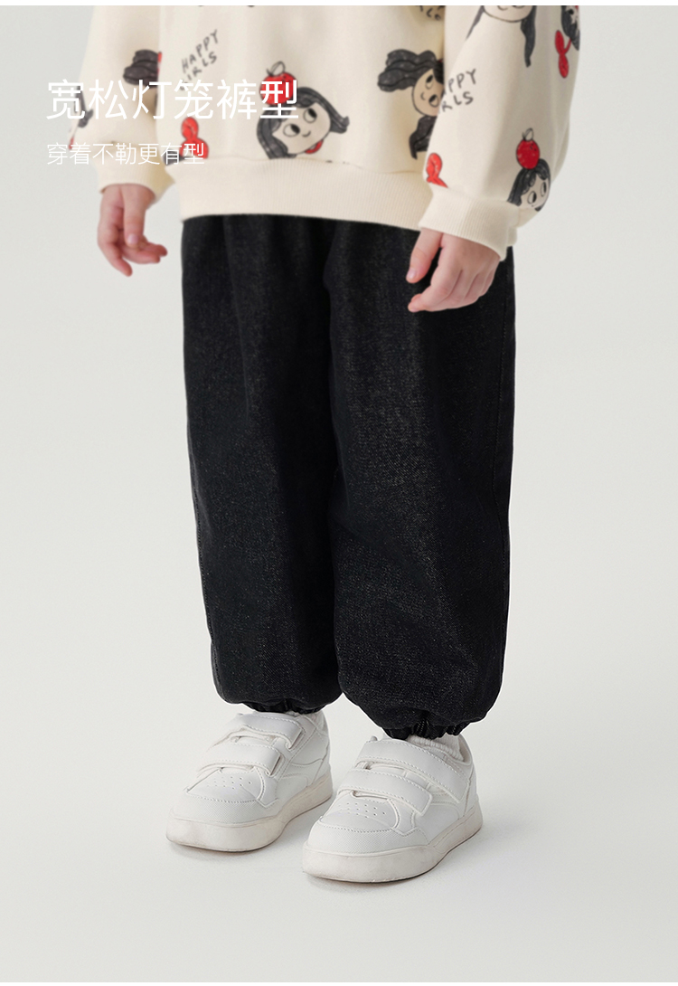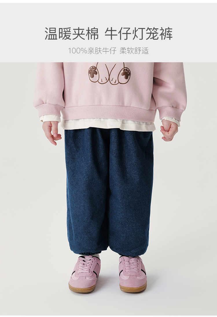 马克珍妮女童休闲加棉牛仔灯笼裤2024年秋冬新款裤子241327