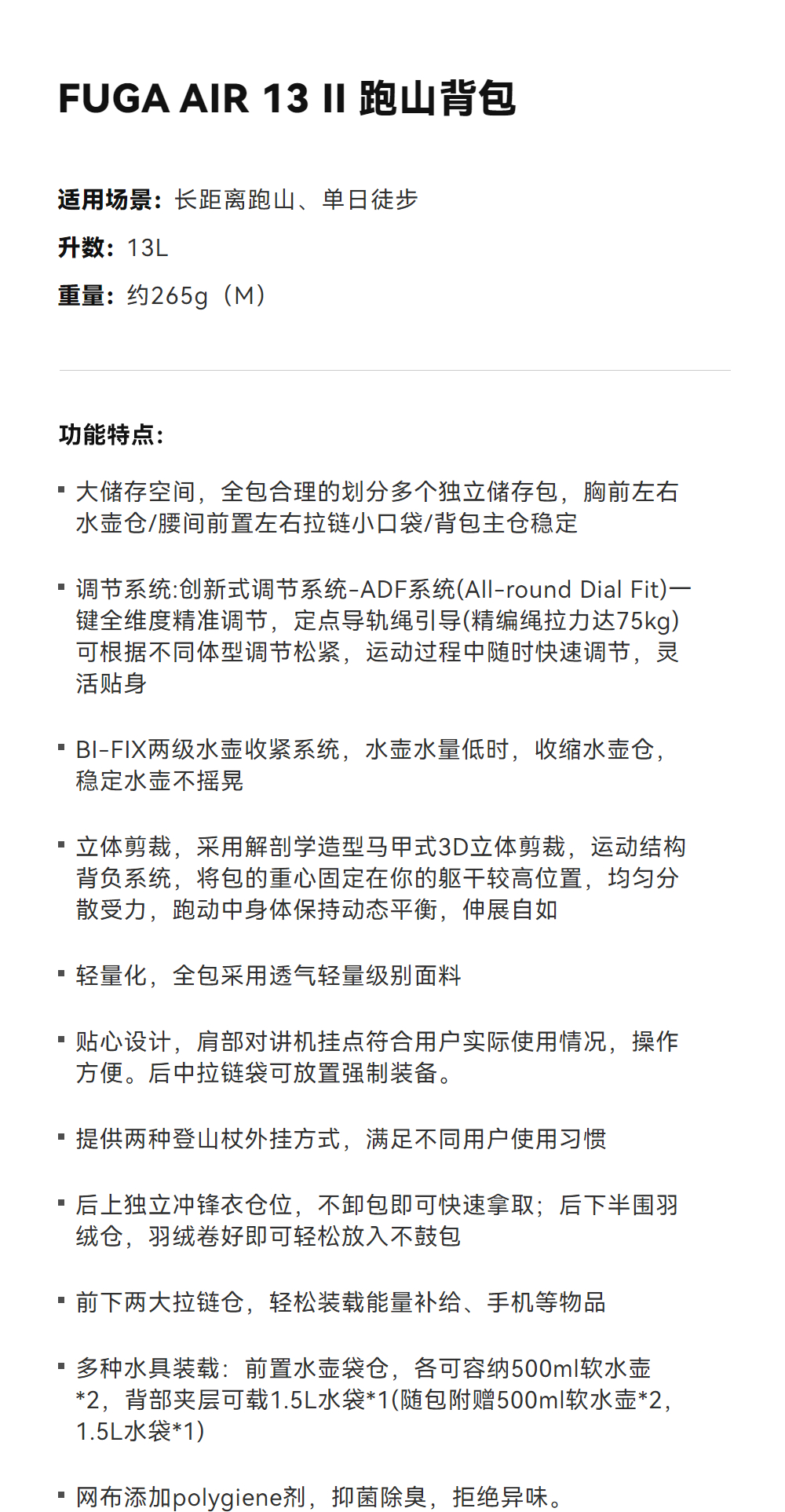 KAILAS凯乐石 FUGA AIR 13 II 跑山背包 KA2554002