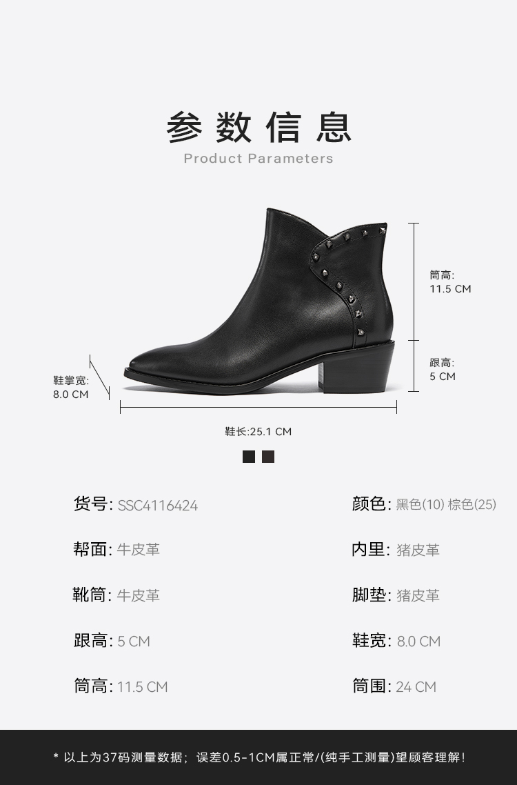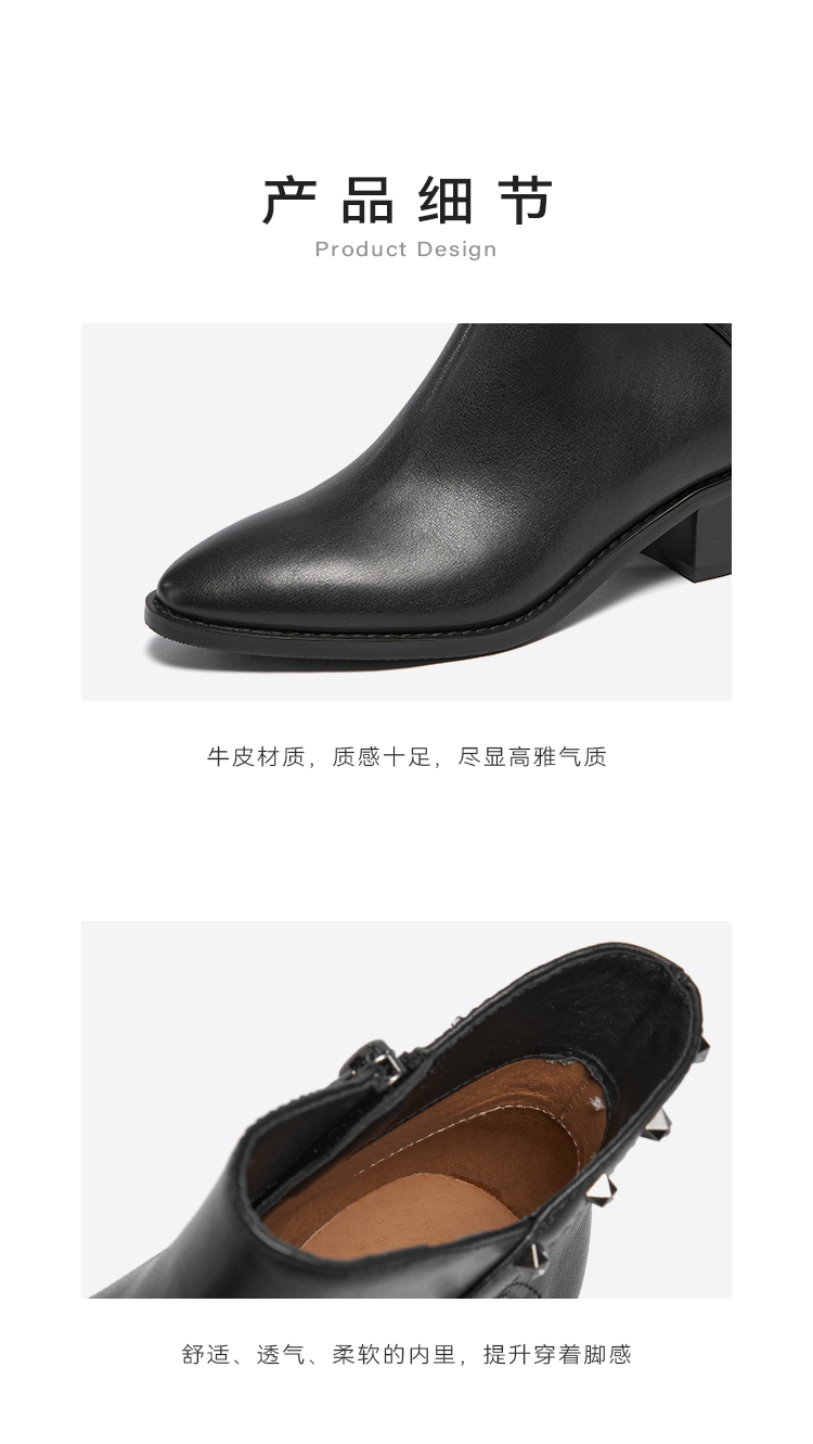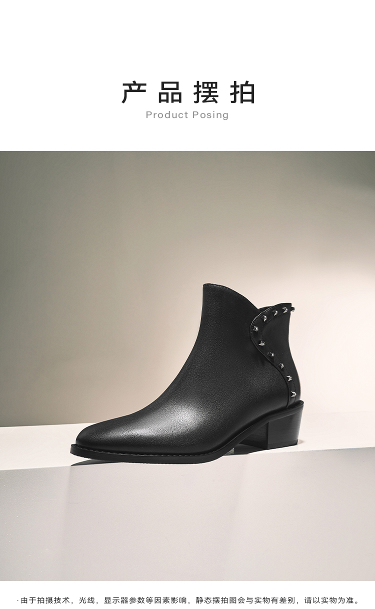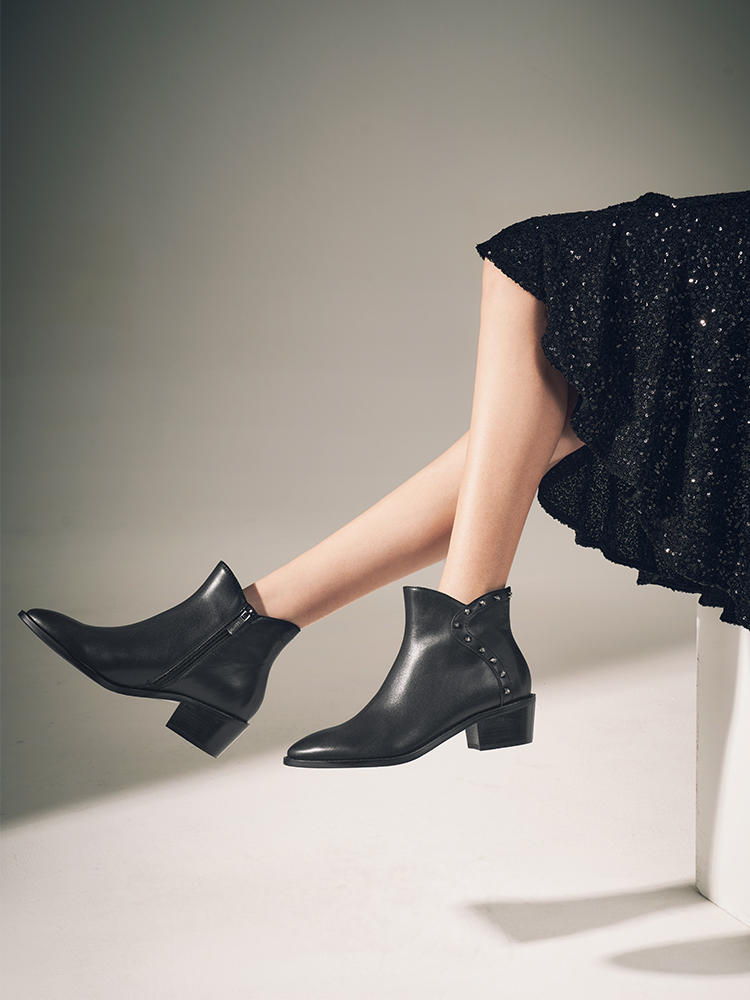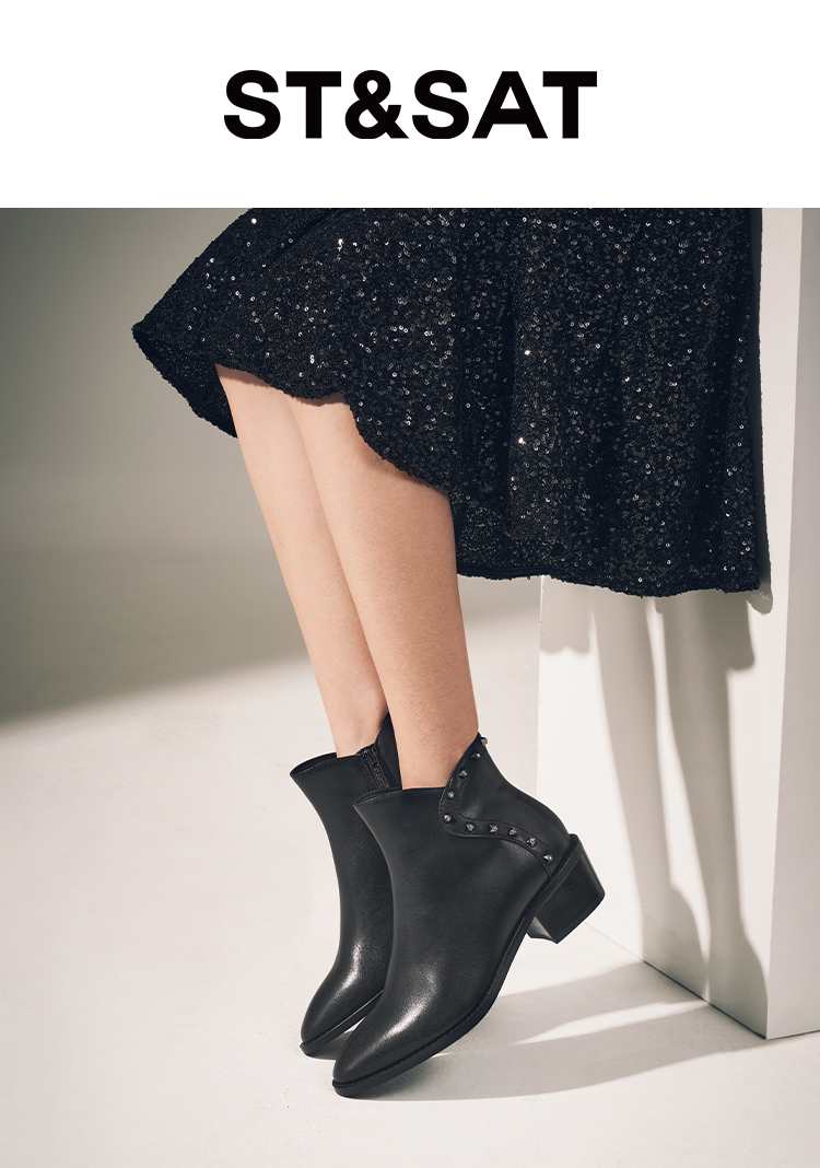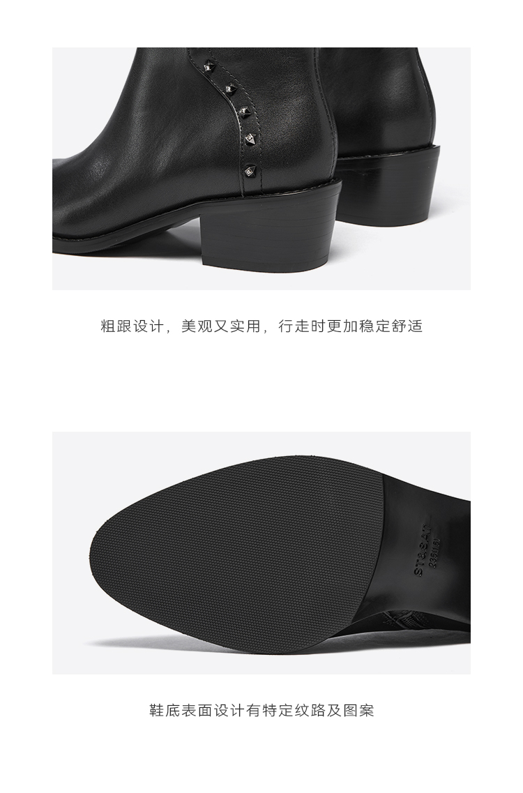 星期六铆钉钻饰摩登粗跟短靴SSC4116424