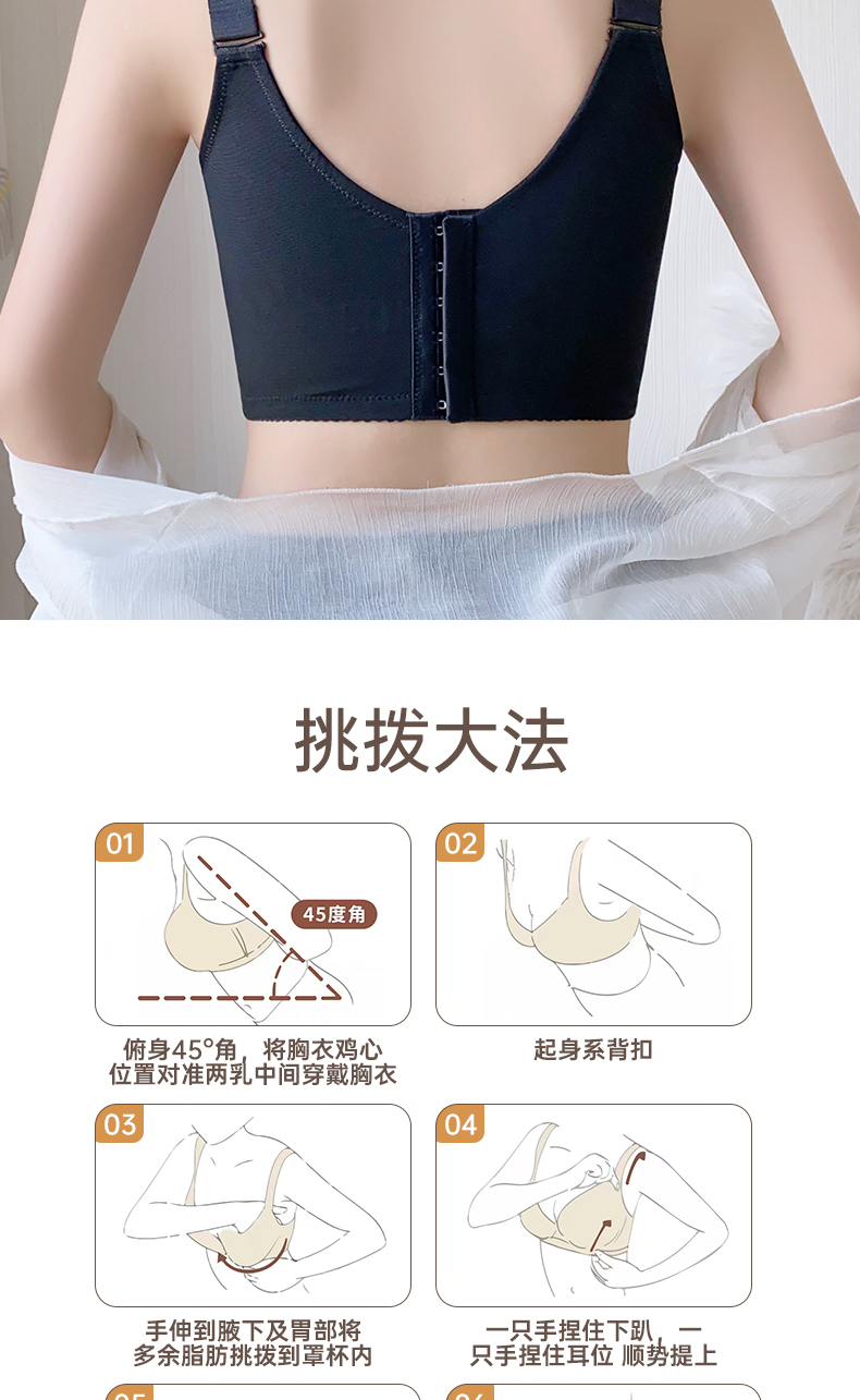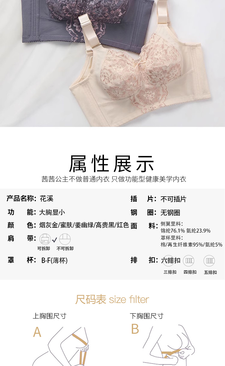 花溪调整型文胸 大胸显小全罩杯 薄款聚拢文胸 上托防下垂 侧收副乳 透气无钢圈内衣