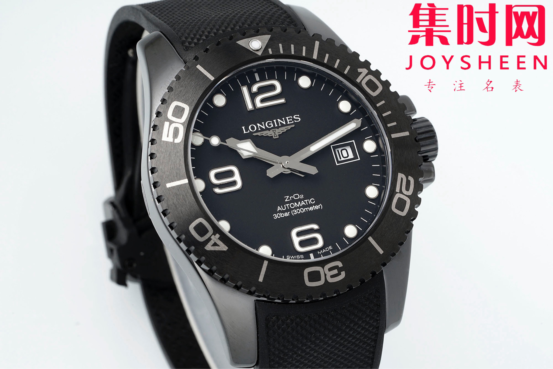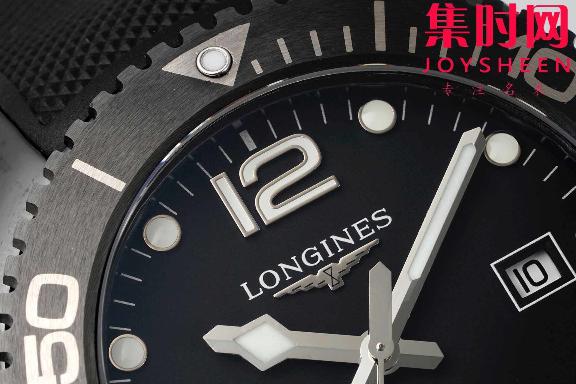 与之前的陶瓷圈款一样,HydroConquest全黑陶瓷款也采用了相同的表盘布局。刻度与指针都涂上了Super-Luminova夜光涂料,使得在黑暗中也能清楚读取时间。