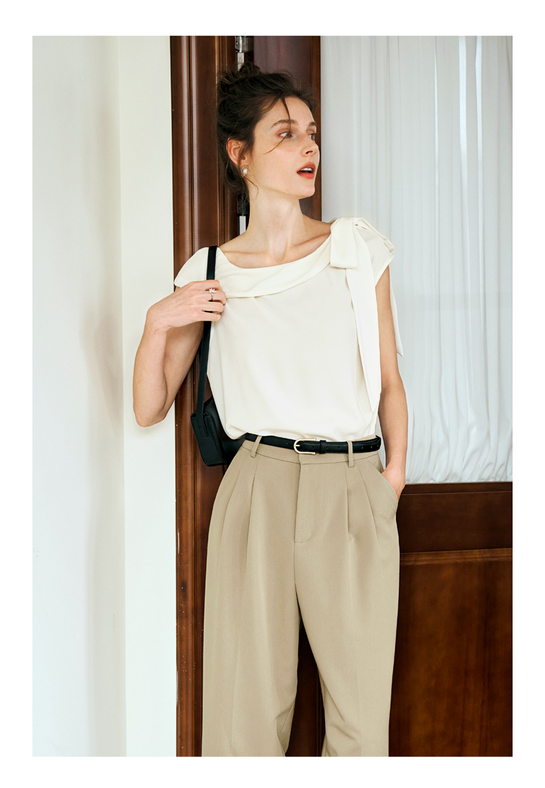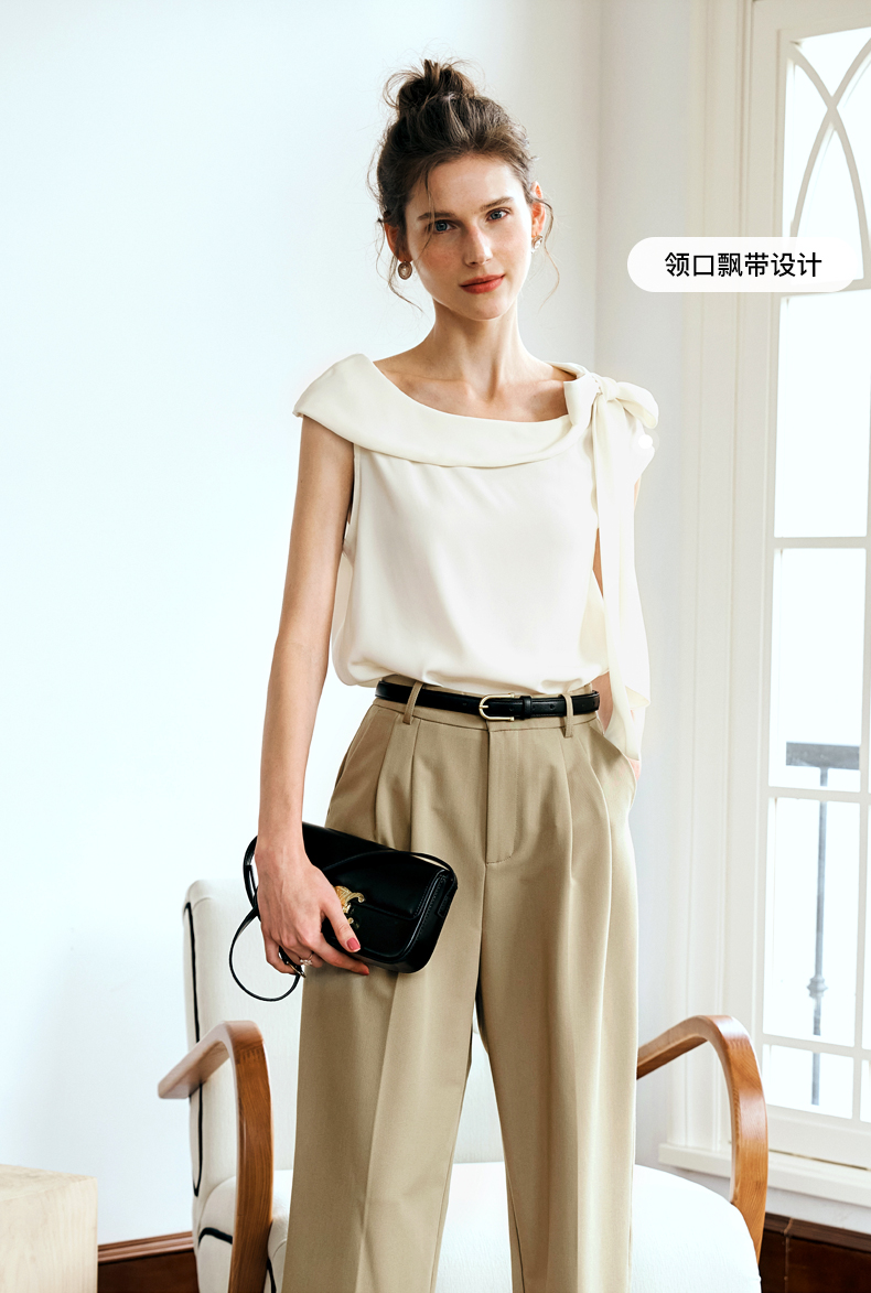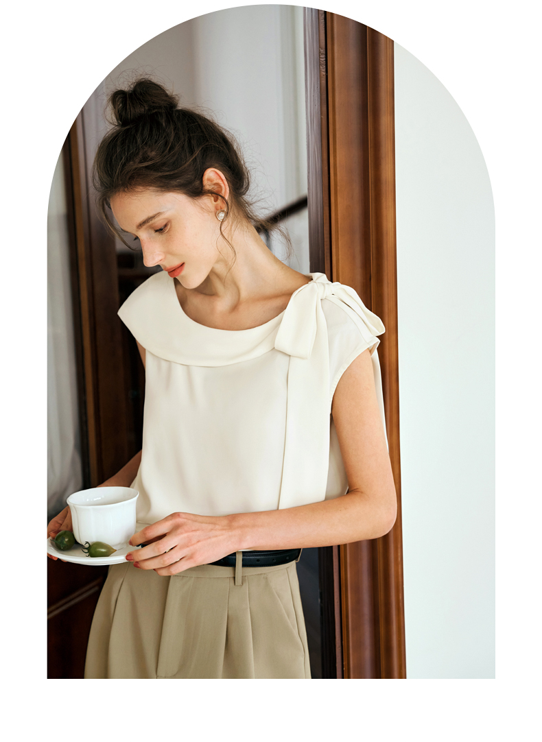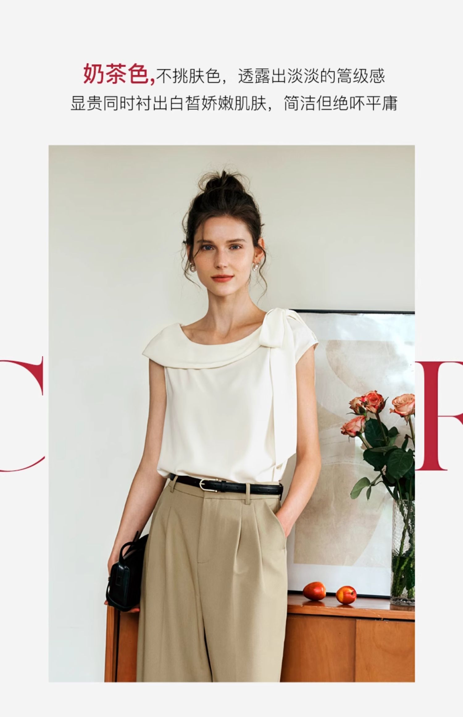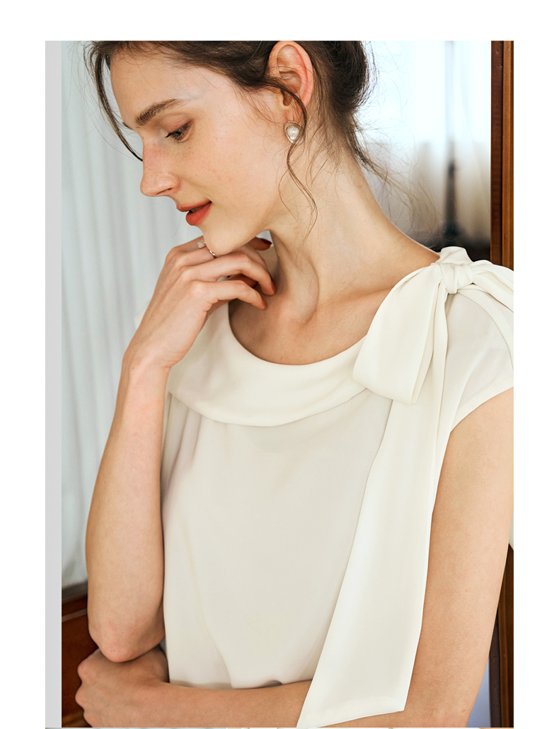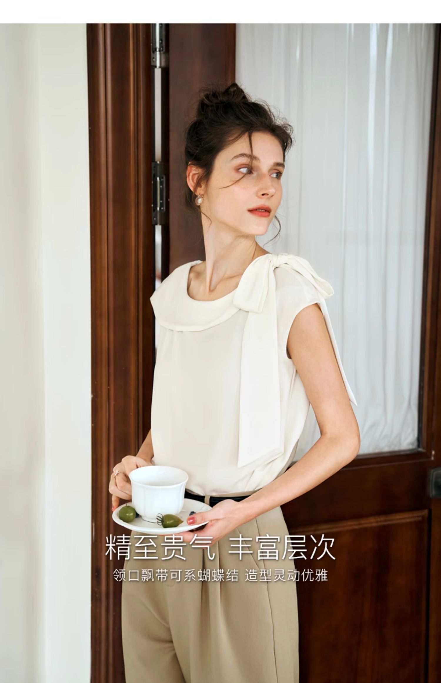 OLrain欧芮儿法式雪纺衫女夏季2024年新款百搭设计感蝴蝶结上衣