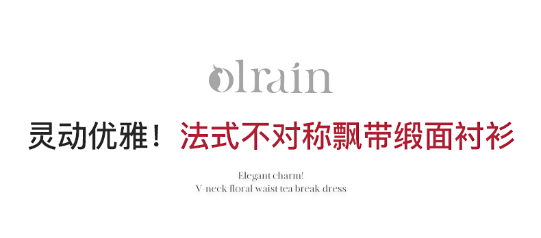 - “精致”是欧芮儿olrain品牌文化的核心,欧芮儿认为,精致的女人,不但要外在动人,更要内在迷人,内外兼修,有魅力、有气质、有内涵,自信而不自傲,优雅而不矫揉,自有万种风情而不轻浮,更不故作矜持。