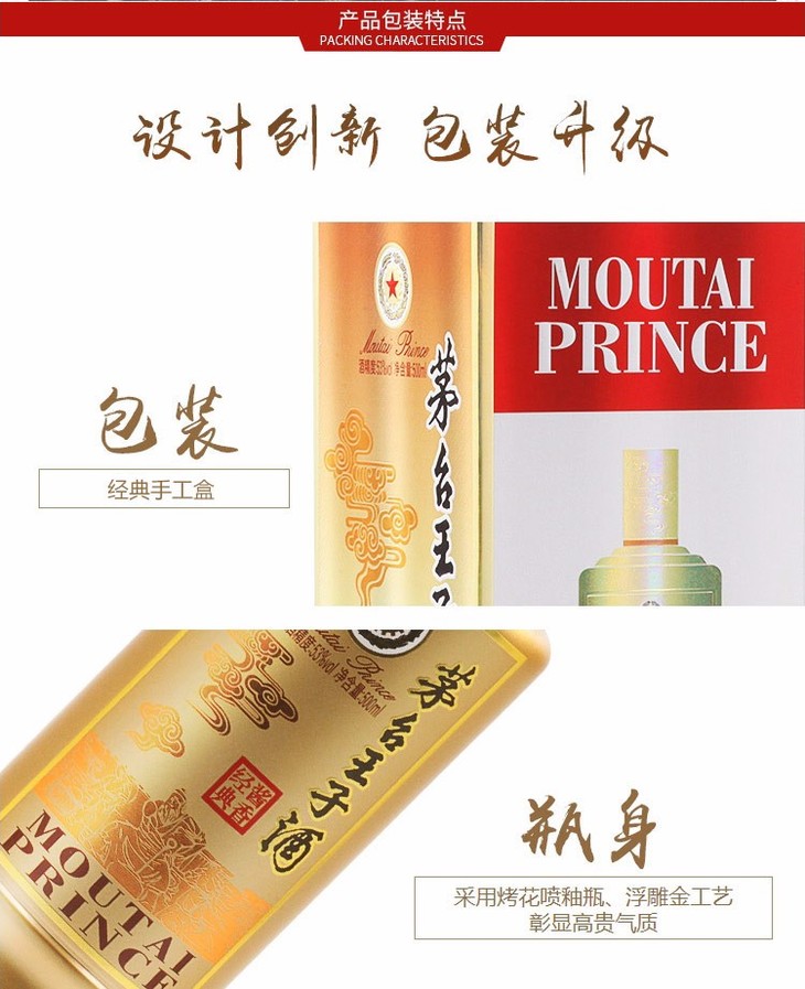 茅台王子酒 酱香经典白酒53度 500ml*1瓶/2瓶/6瓶整箱