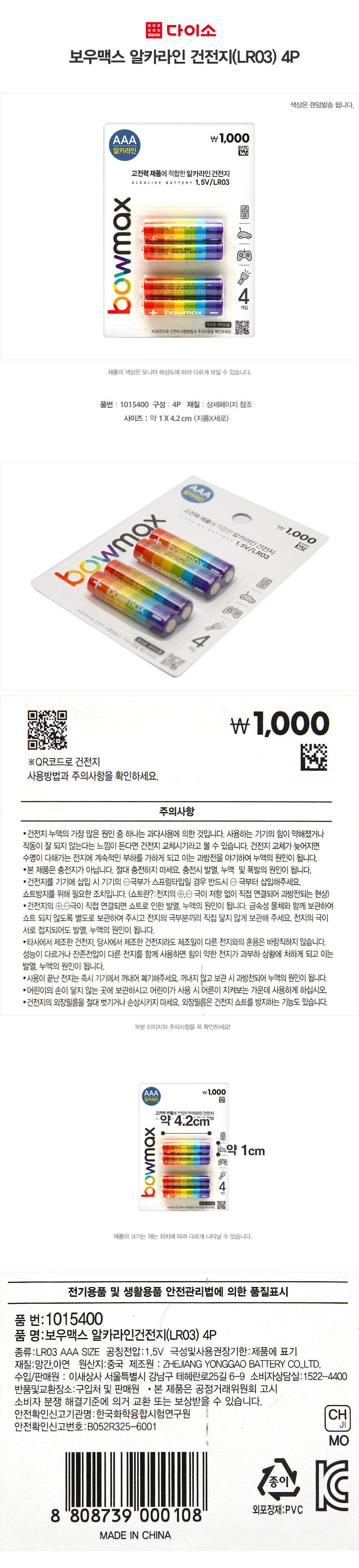 [Daiso] Bowmax alkaline batteries (LR03) 4P-1015400 干电池JPY带授权招加盟代理