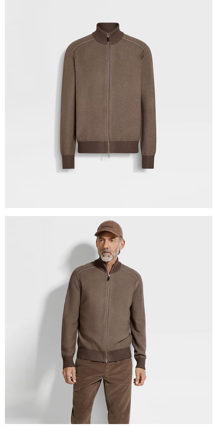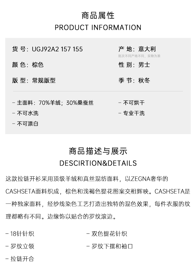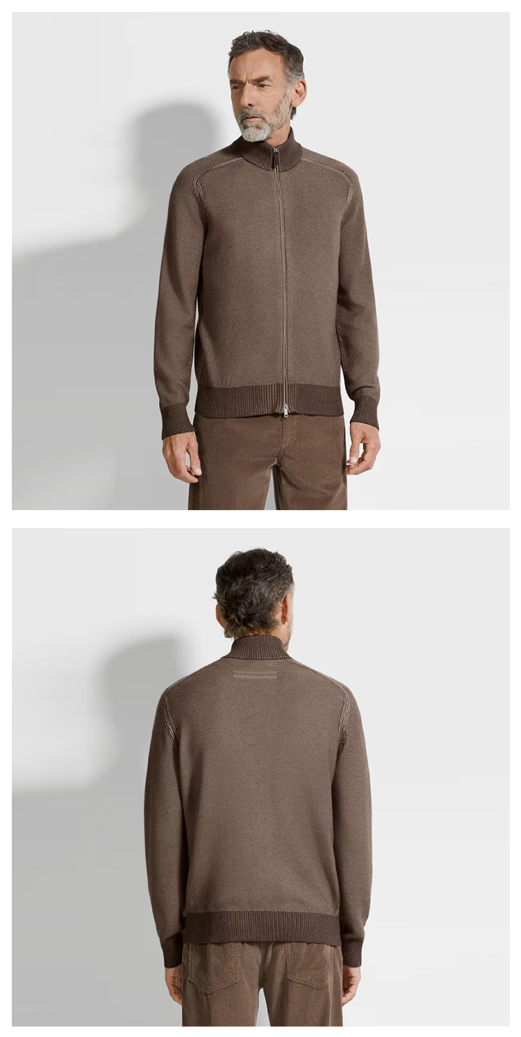 ZEGNA 杰尼亚 男士 Cashseta 全拉链针织开衫 棕色 UGJ92A2 157 155