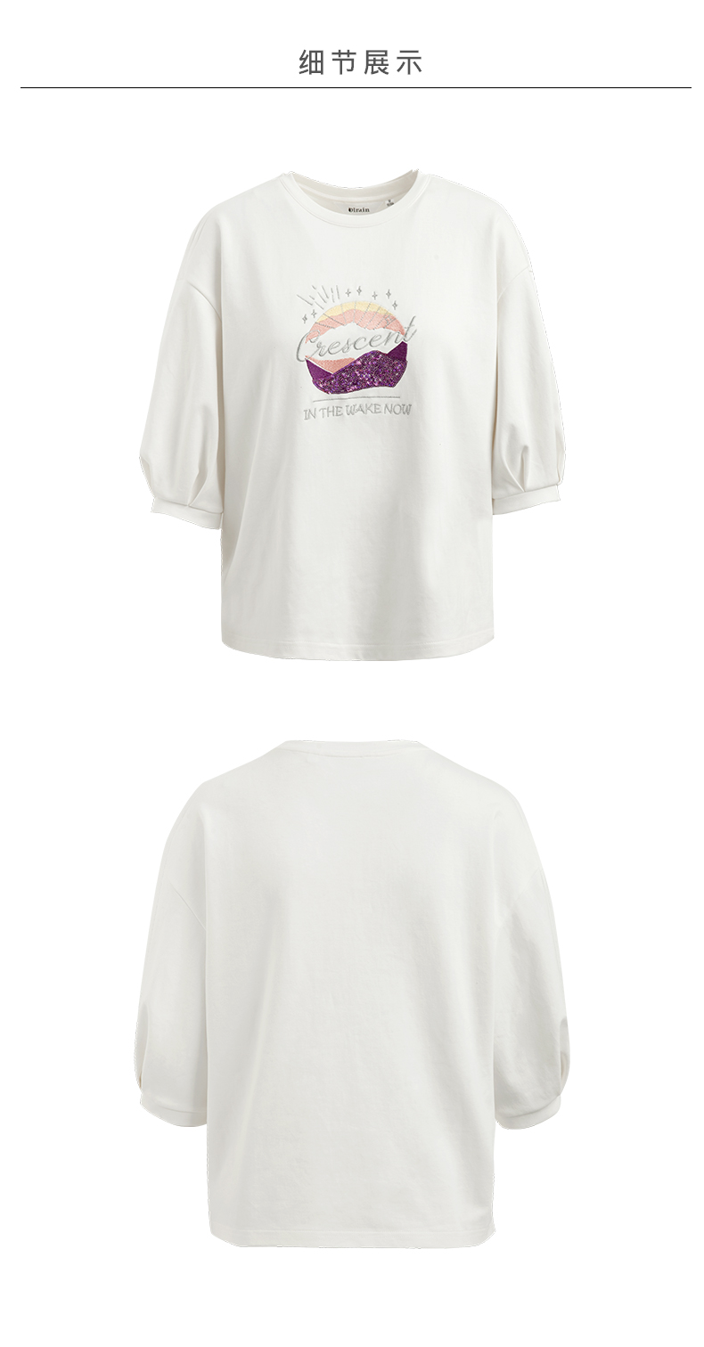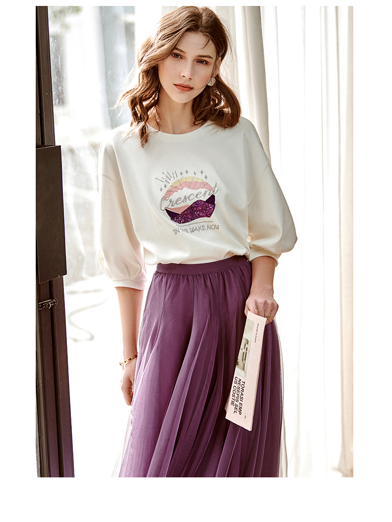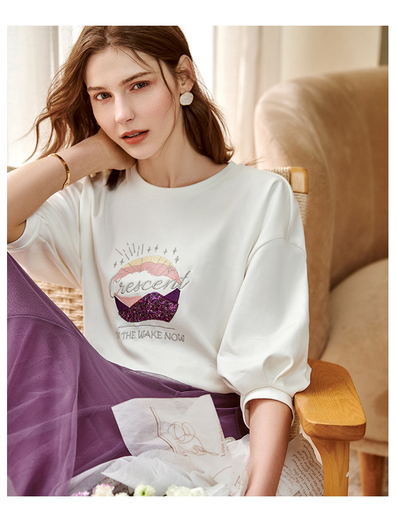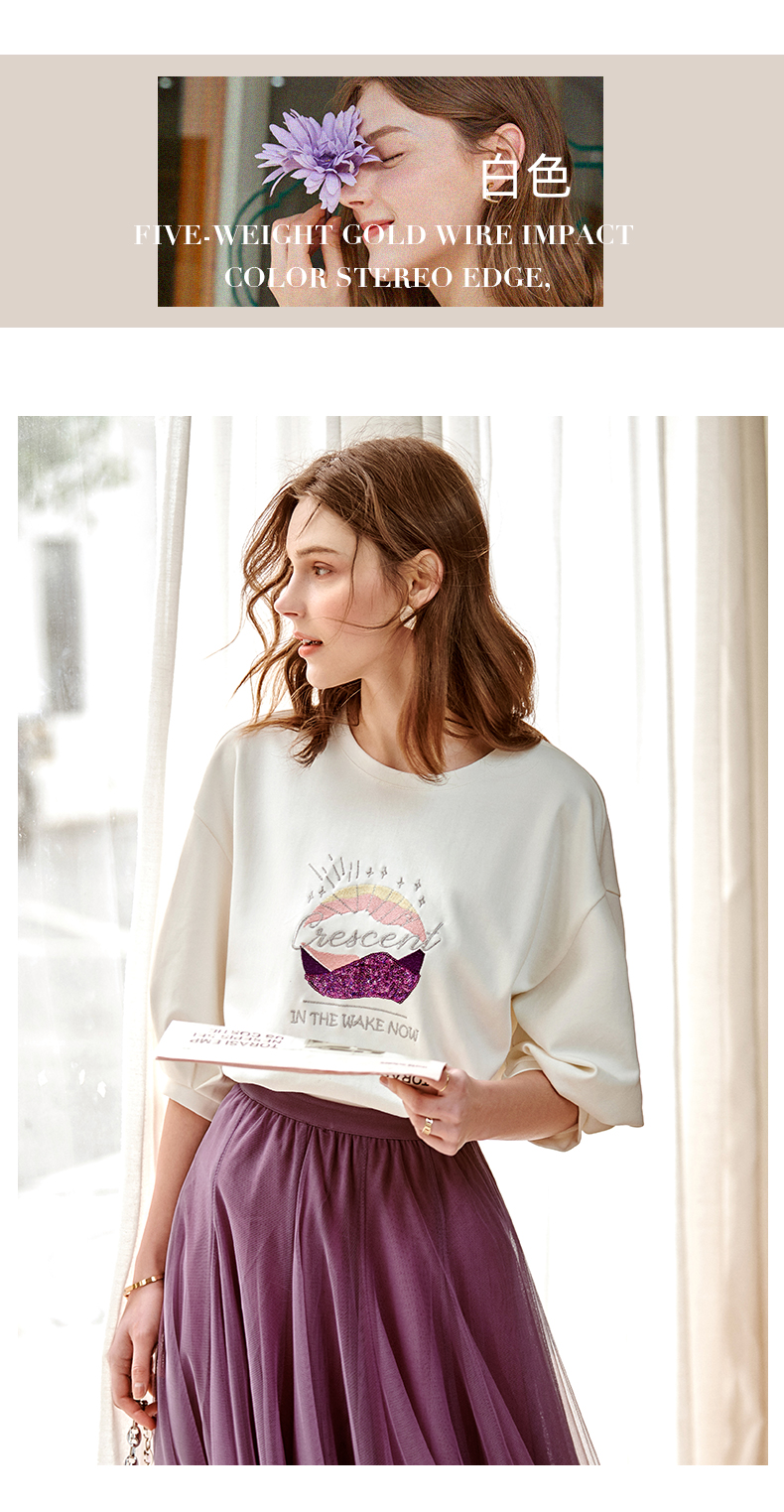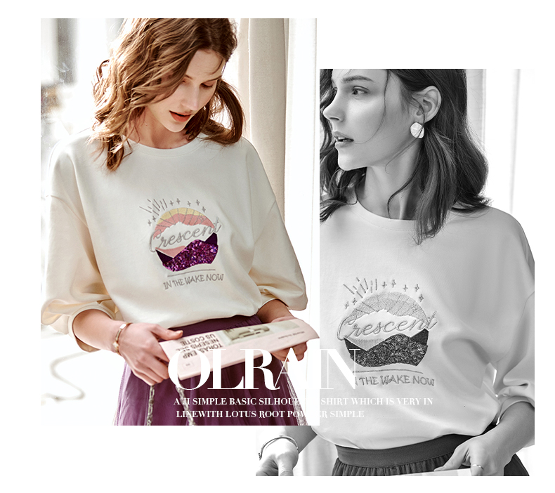 欧芮儿珠片刺绣t恤女2021年新款灯笼袖休闲宽松气质时髦优雅上衣