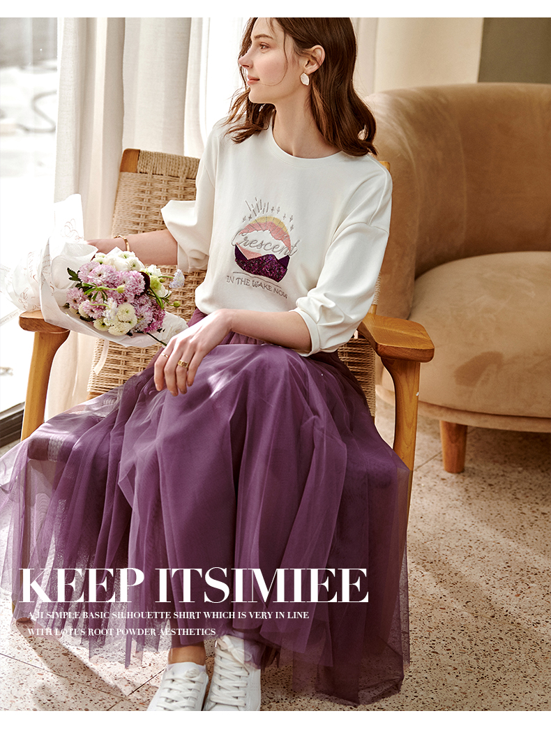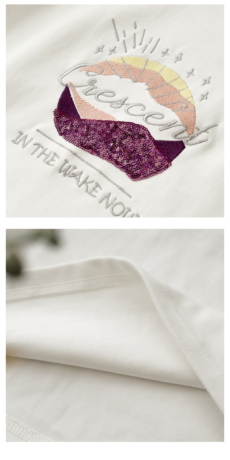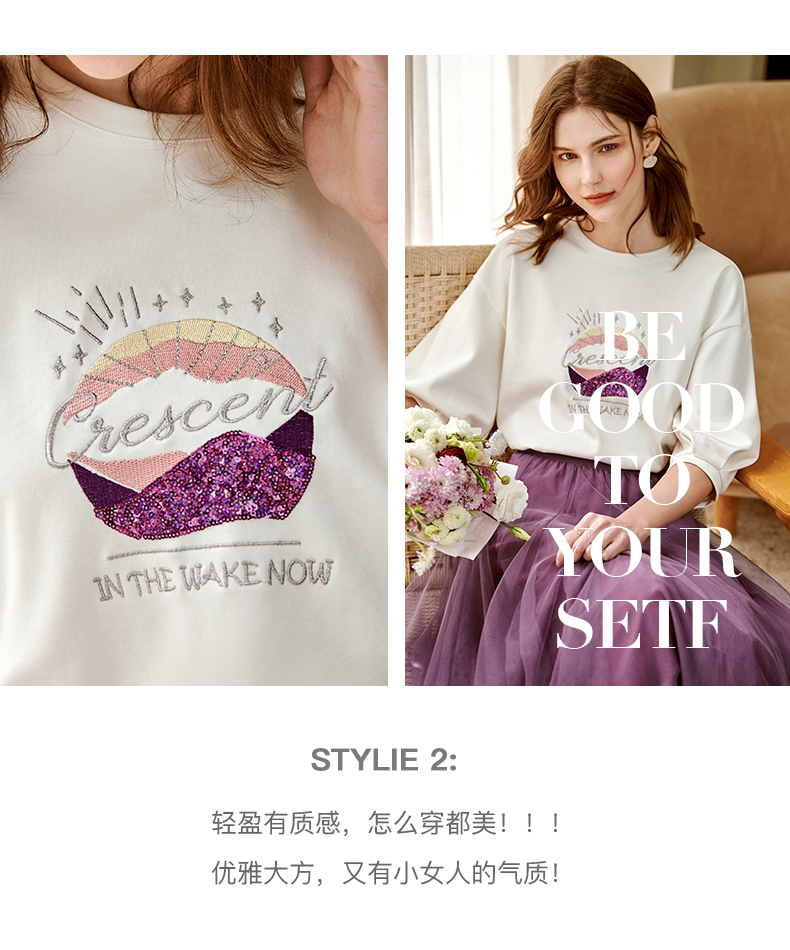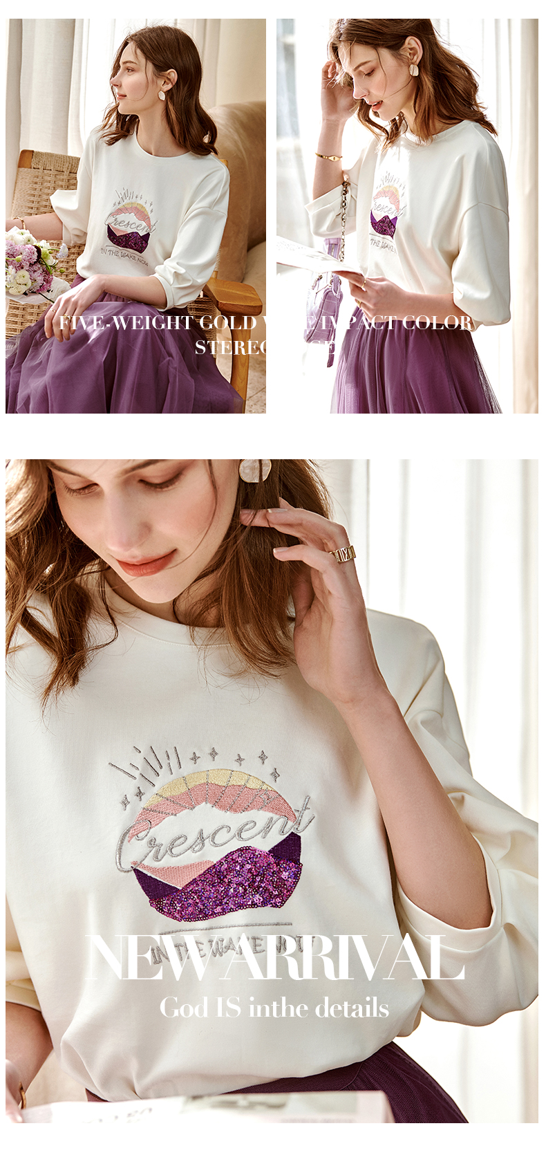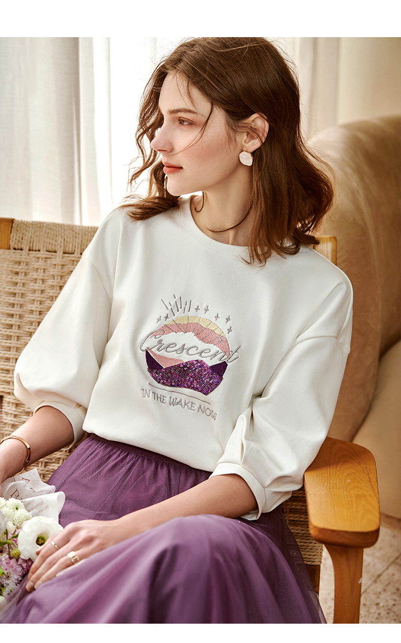 欧芮儿珠片刺绣t恤女2021年新款灯笼袖休闲宽松气质时髦优雅上衣