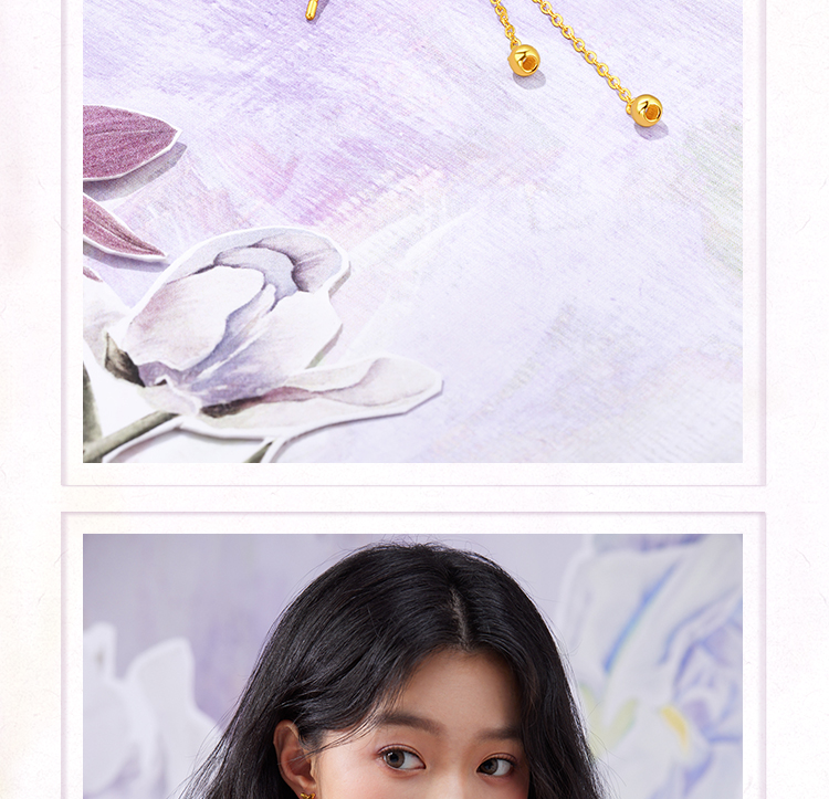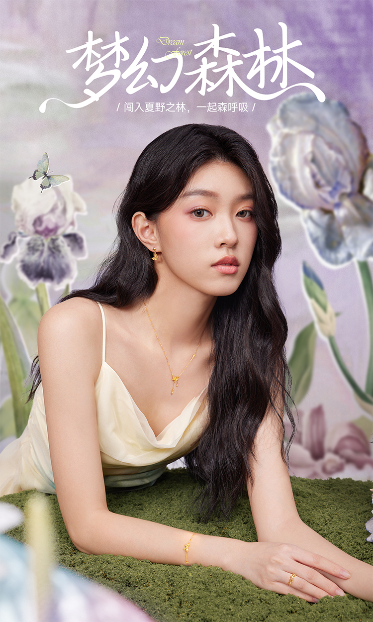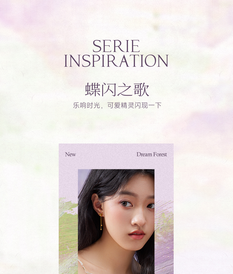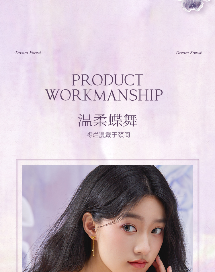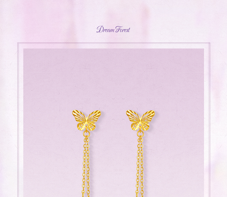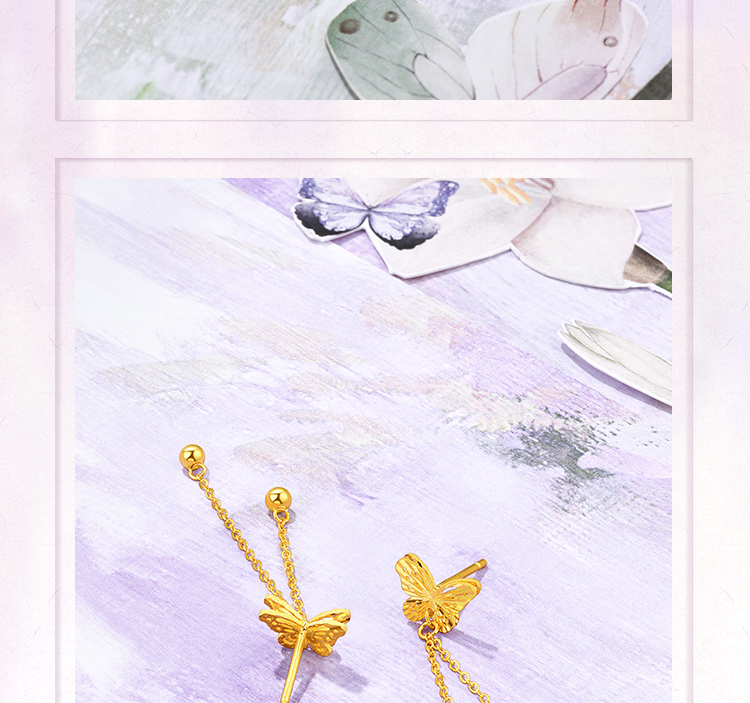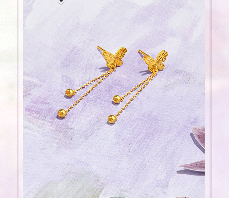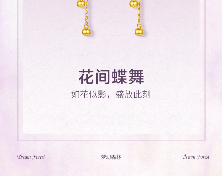 周六福黄金耳钉5G足金计价蝴蝶耳坠金耳饰梦幻森林系列节日礼物