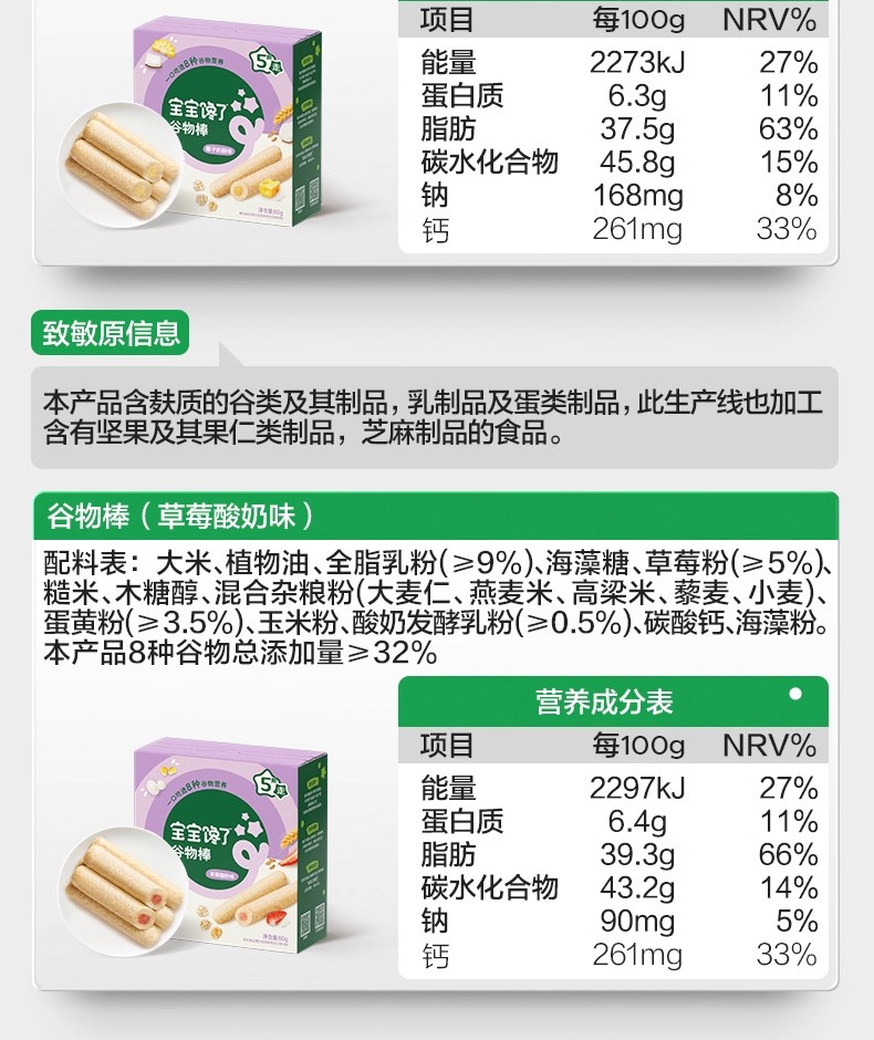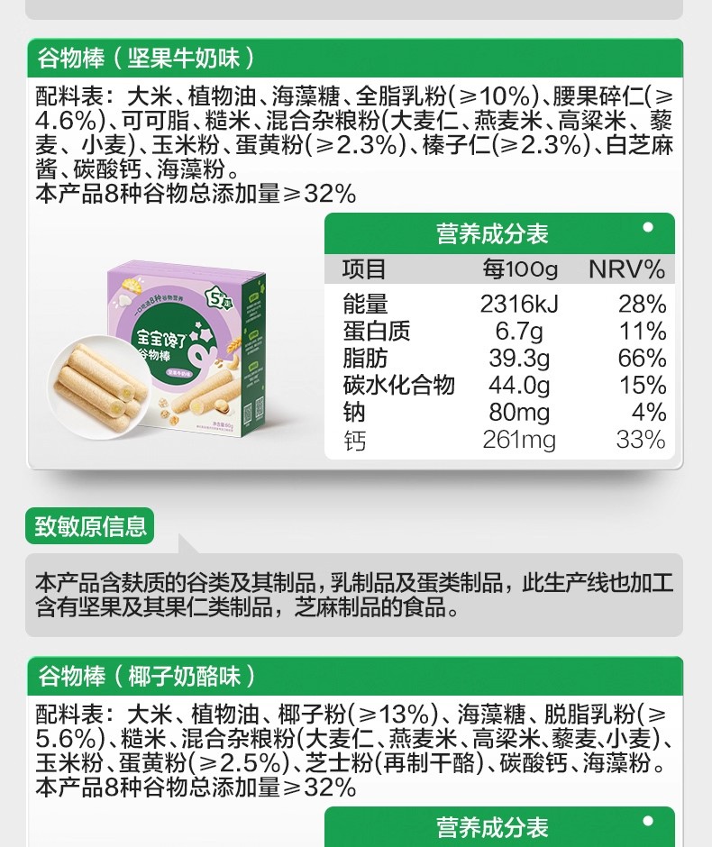 宝宝馋了高钙谷物棒72g