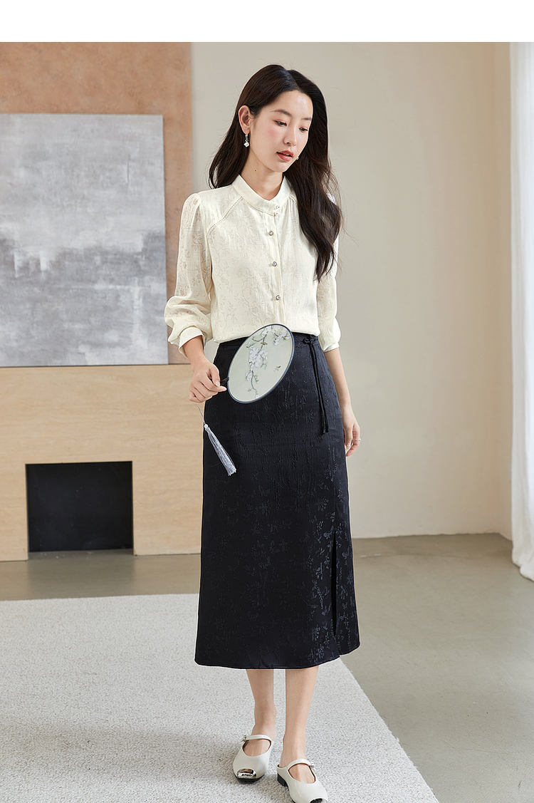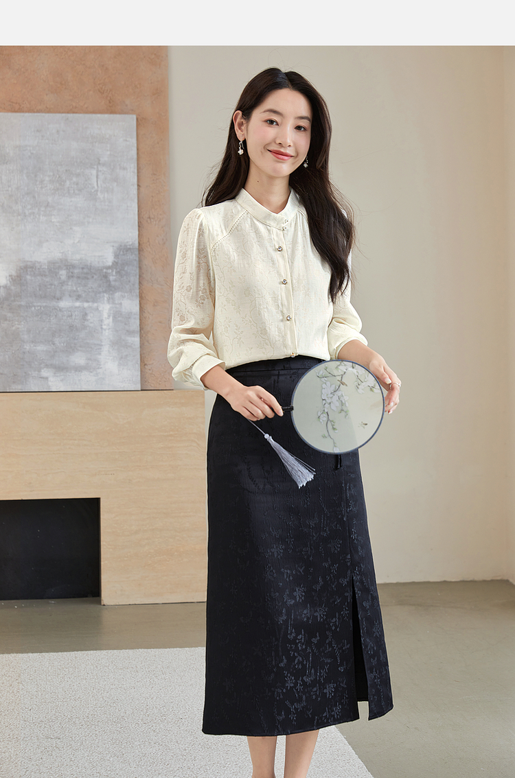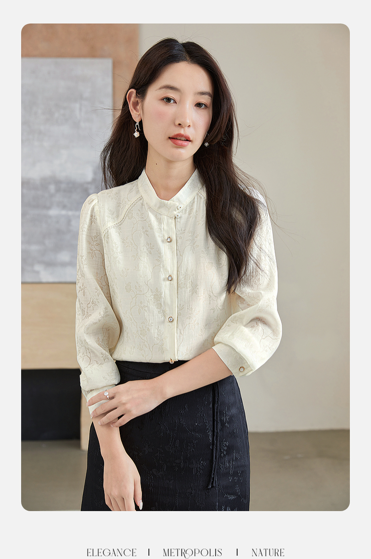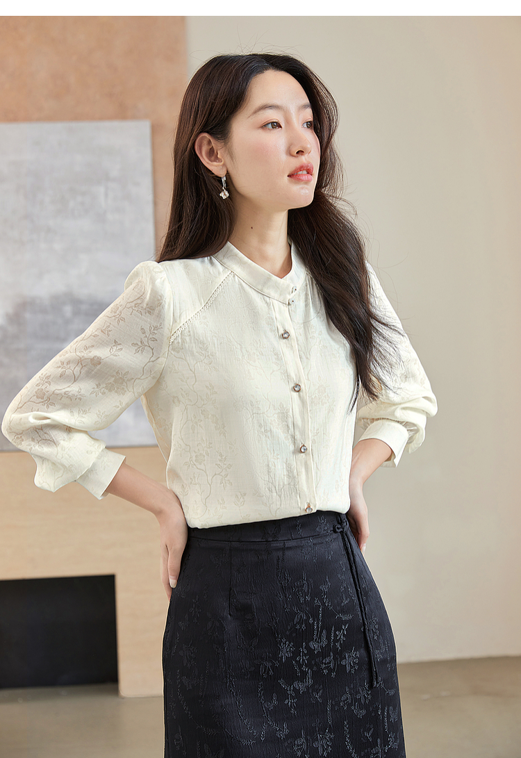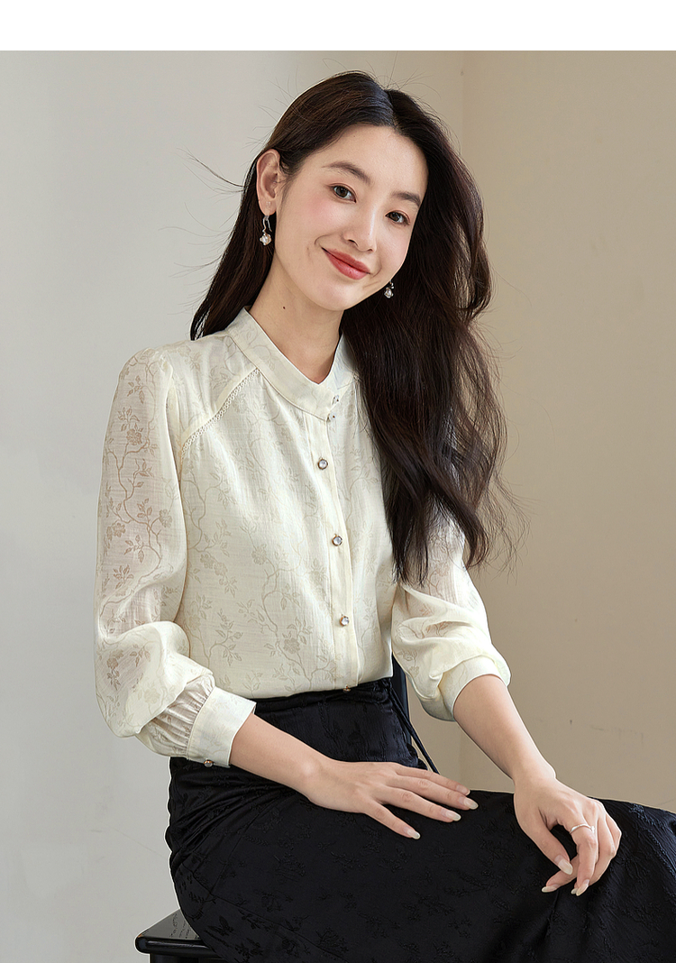 【59元福袋不支持退换】熙世界新中式杏白色衬衫2024年秋季新款轻国风暗纹提花长袖衬衣