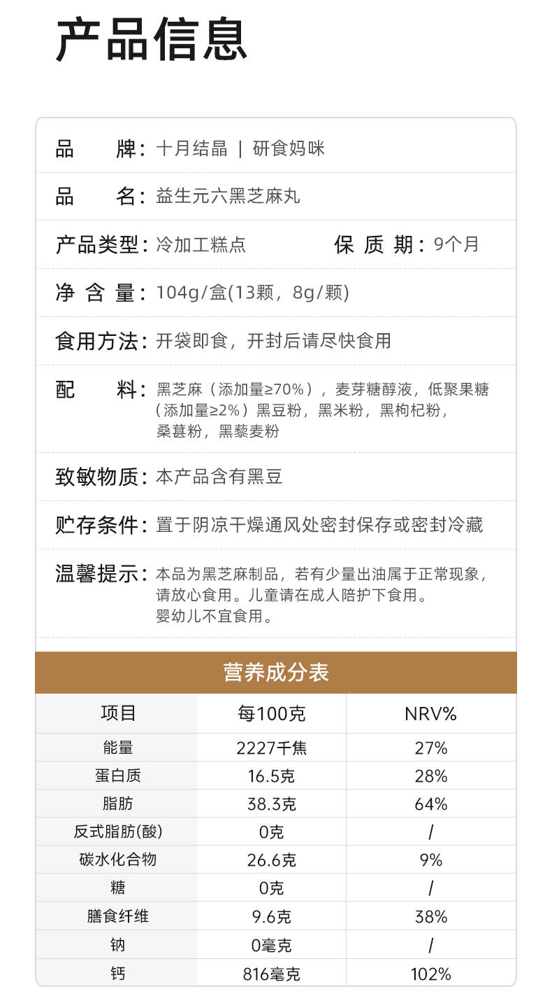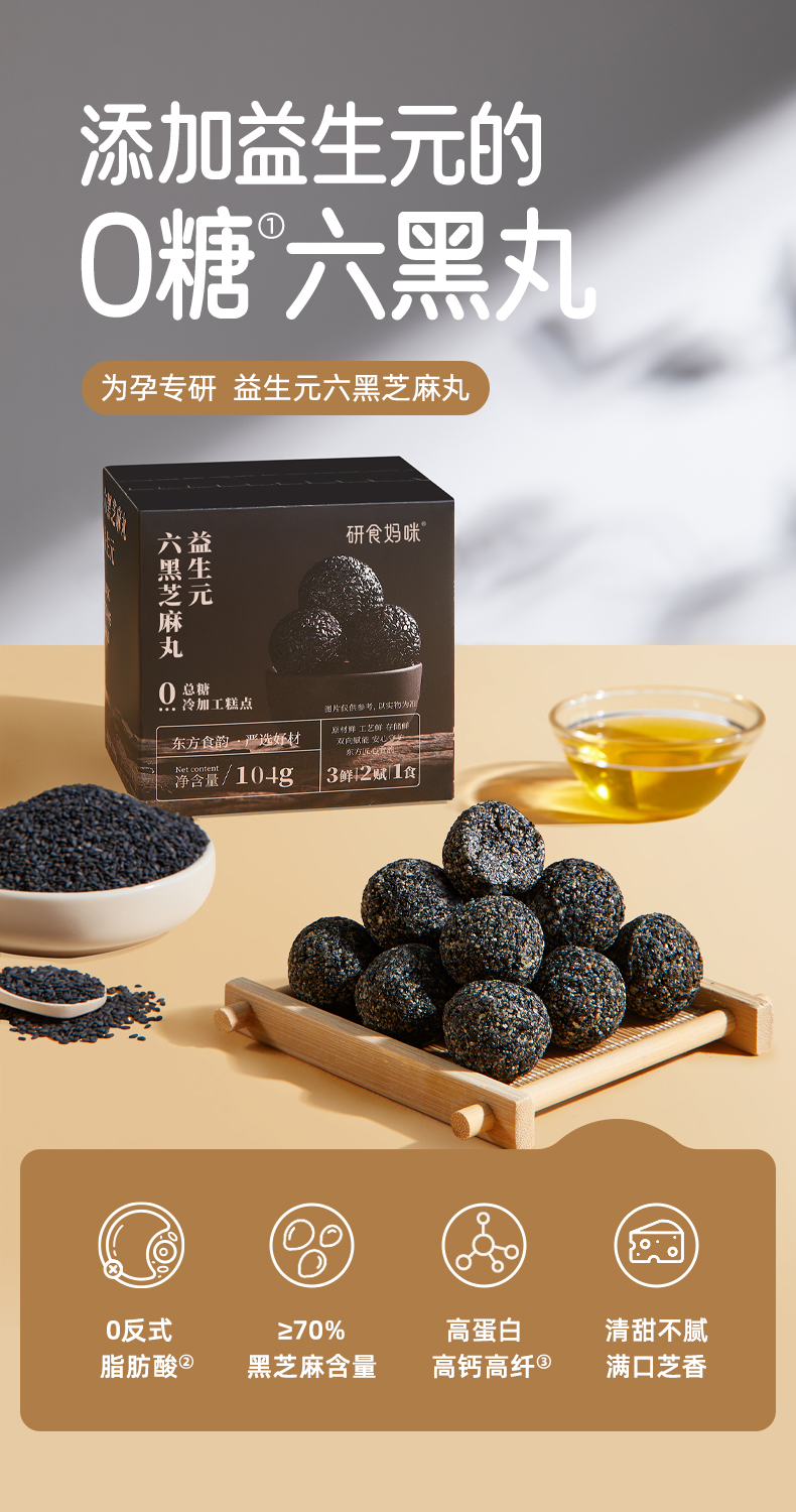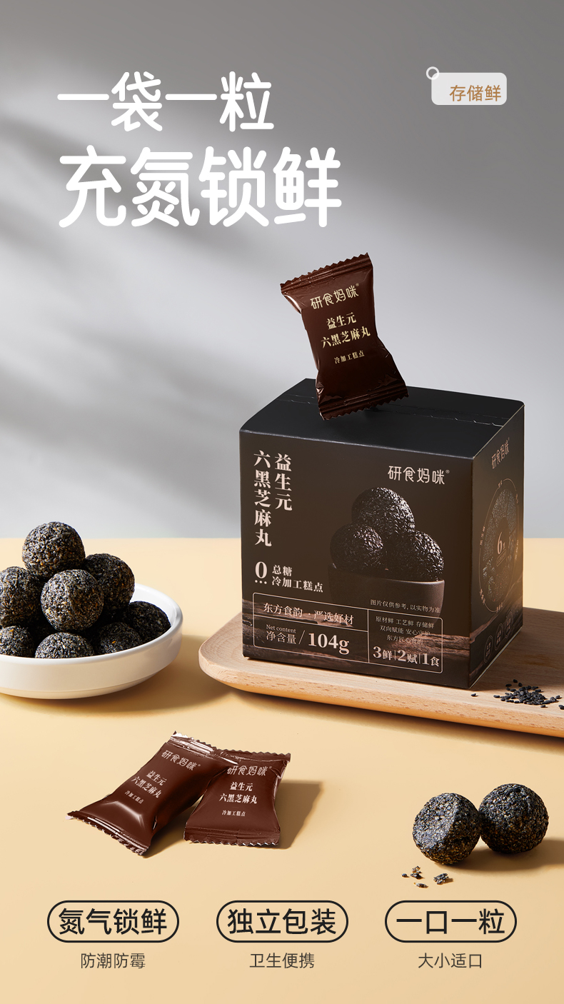 研食妈咪益生元六黑芝麻丸养生丸孕妇零食熬夜营养小零食