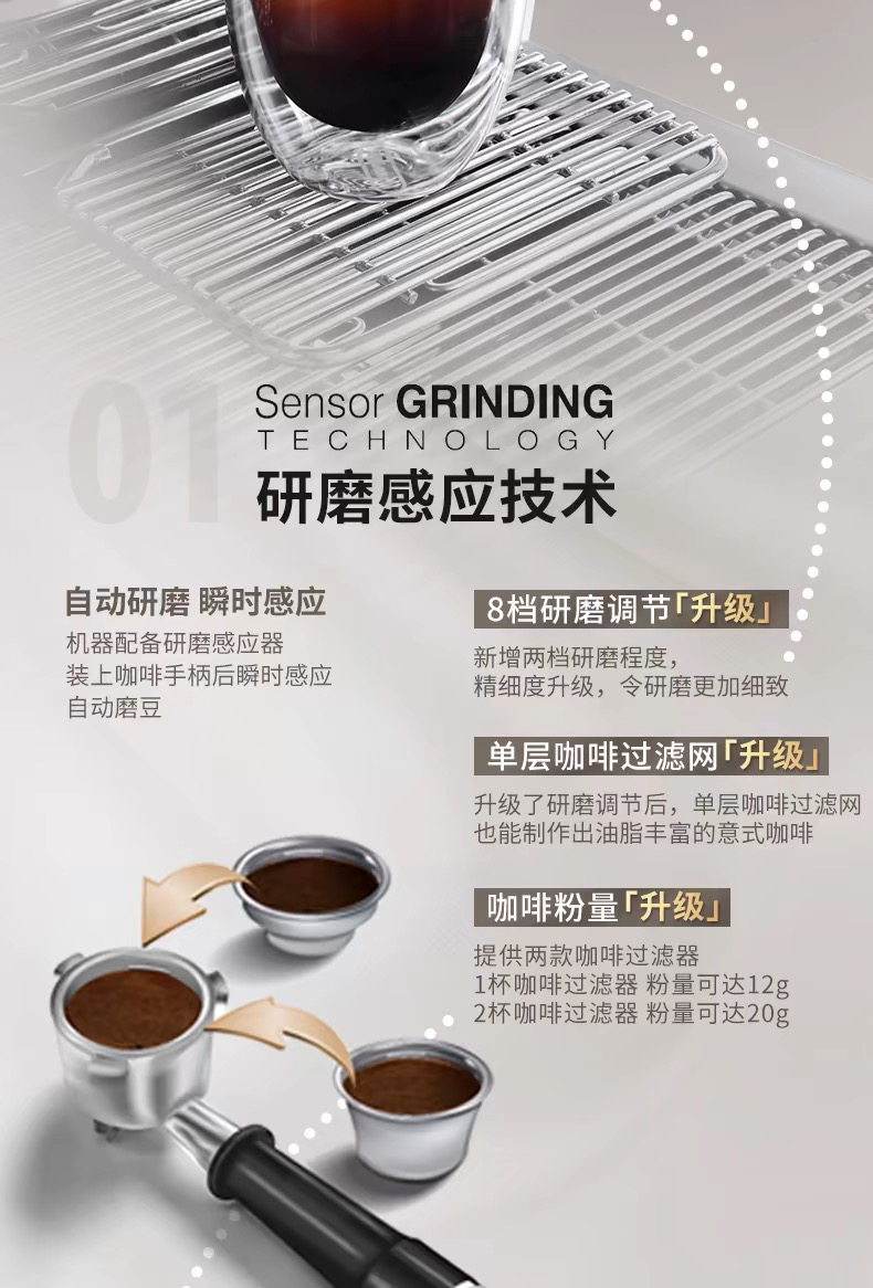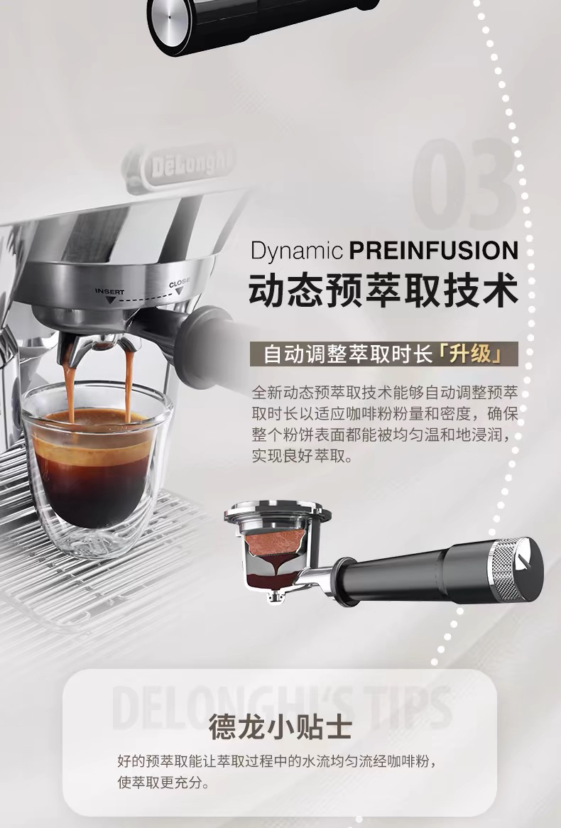 Delonghi/德龙半自动咖啡机家用泵压智能研磨一体意式EC9355.M