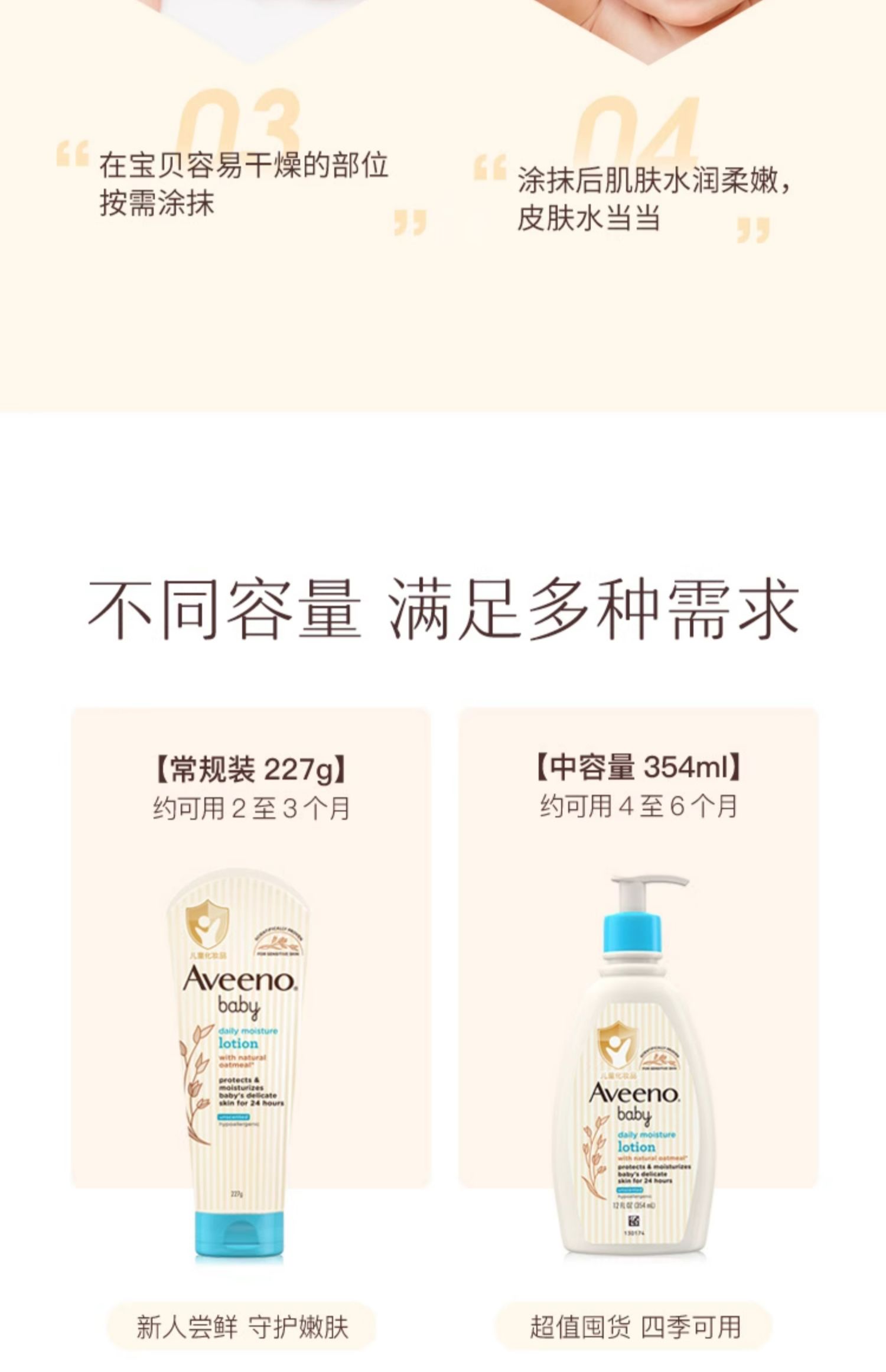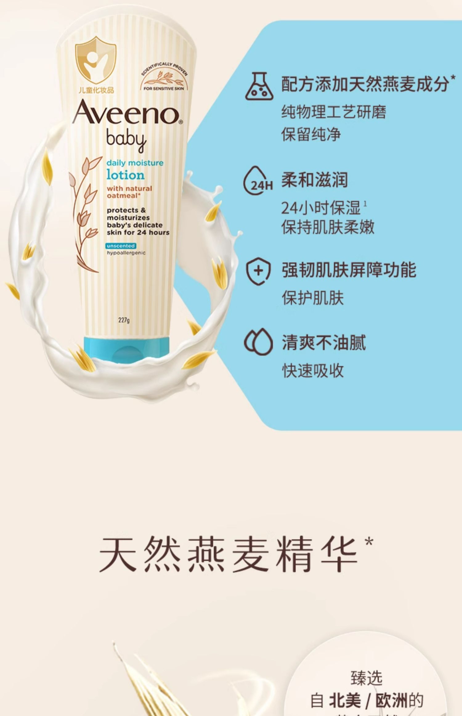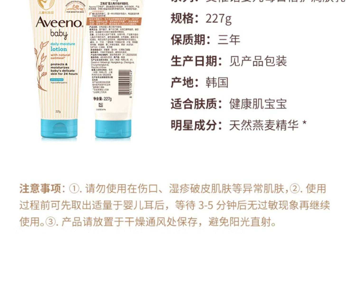 Aveeno艾惟诺/艾维诺婴儿面霜滋润霜燕麦宝宝身体乳新生儿润肤乳