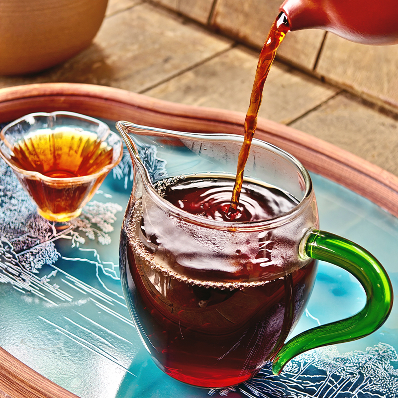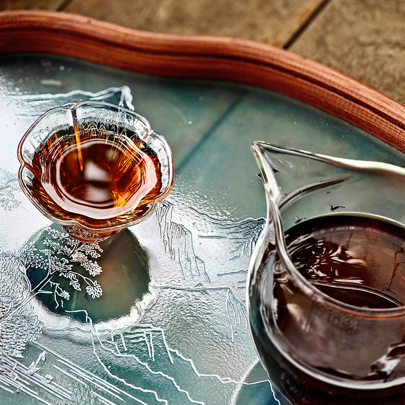 四至六泡,茶汤甜意更显,质感如蜂蜜水般细腻成团,入口即化。甜香、木质香与沉稳陈香层层交融,馥郁饱满,口感纯粹柔滑,尽显曼松熟茶底蕴。
