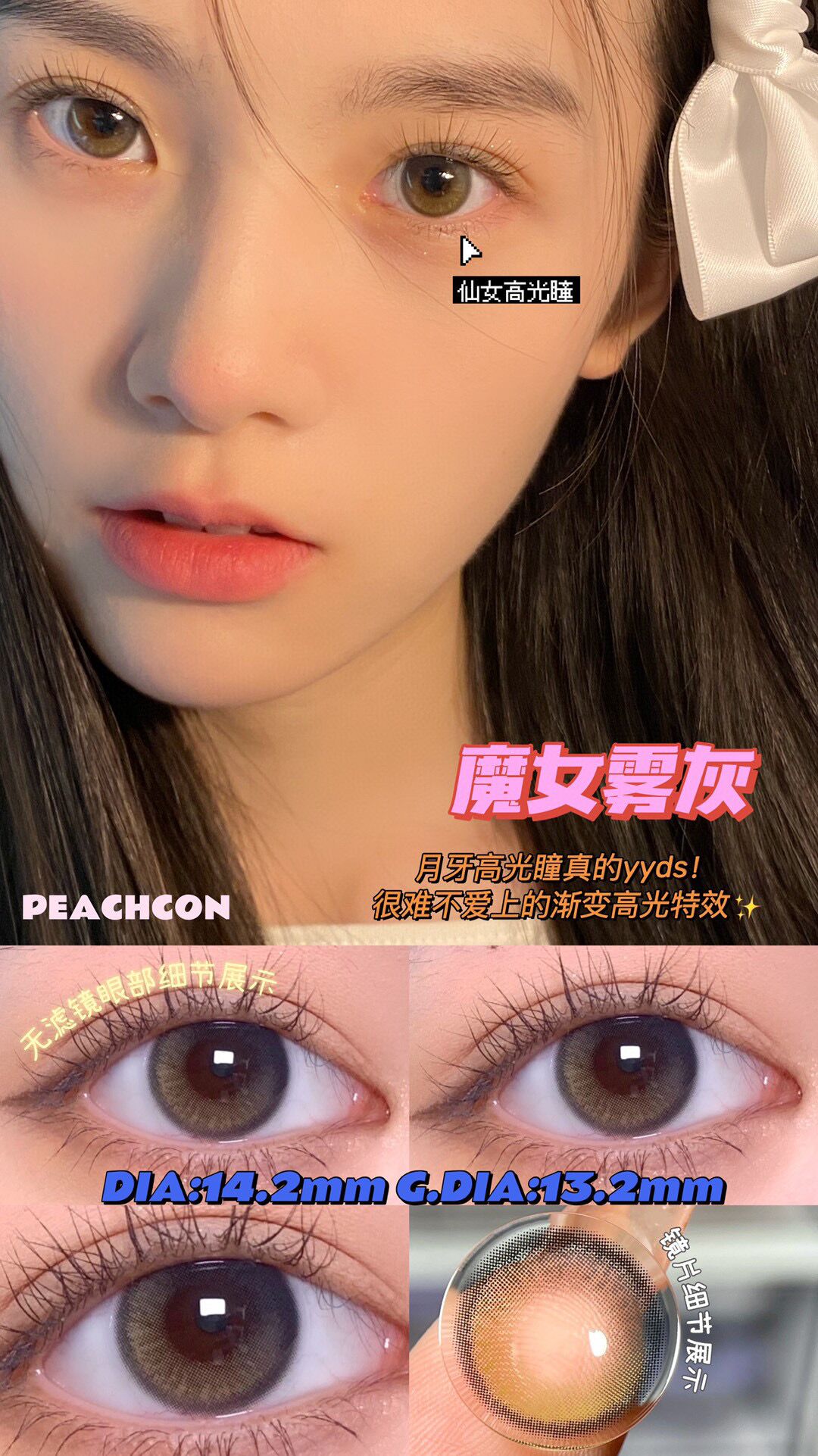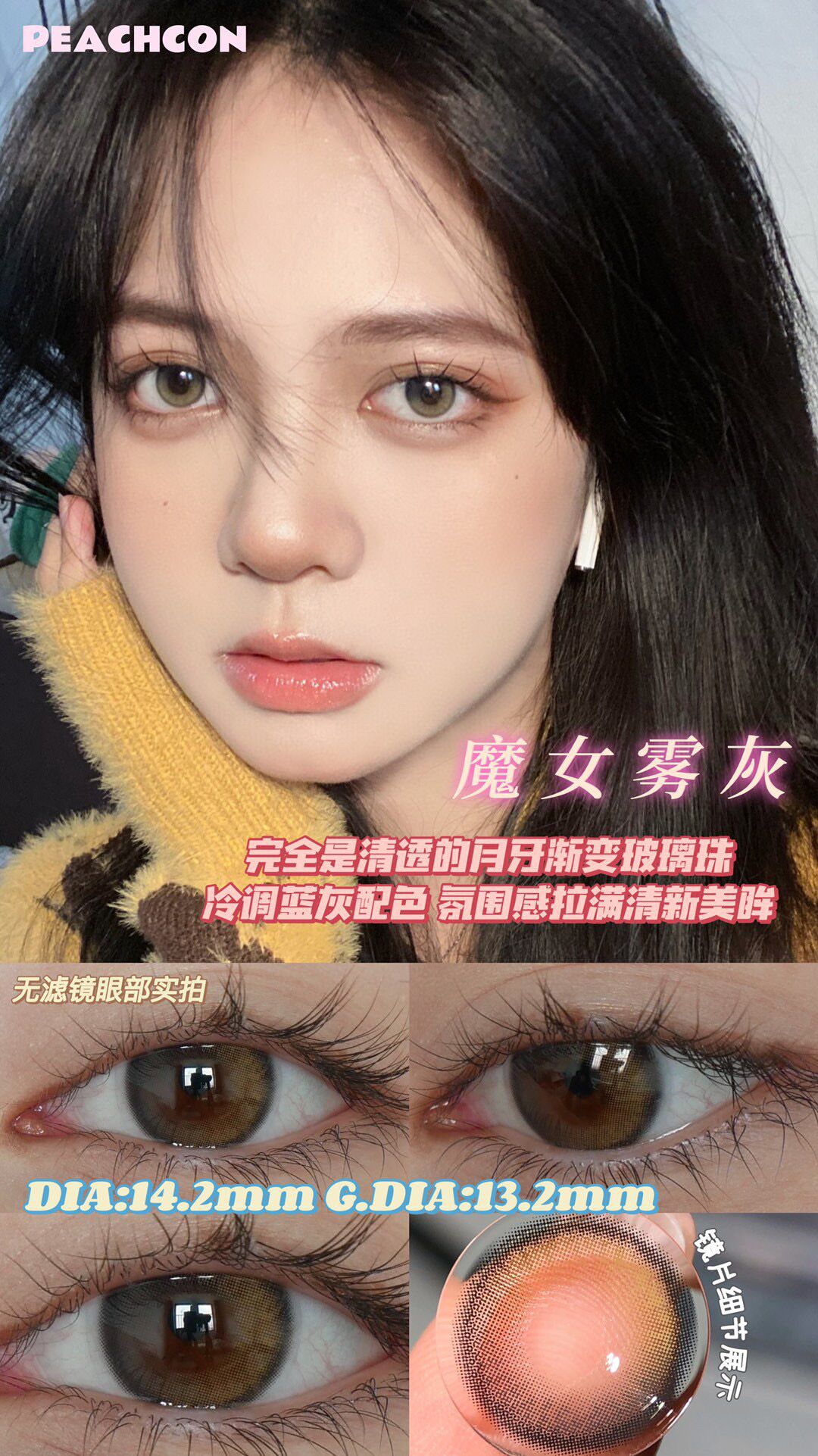Peachcon魔女雾灰 14.2mm 韩产进口添加硅水凝胶 年抛 商品图0