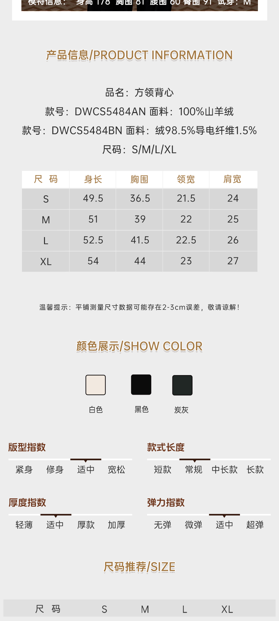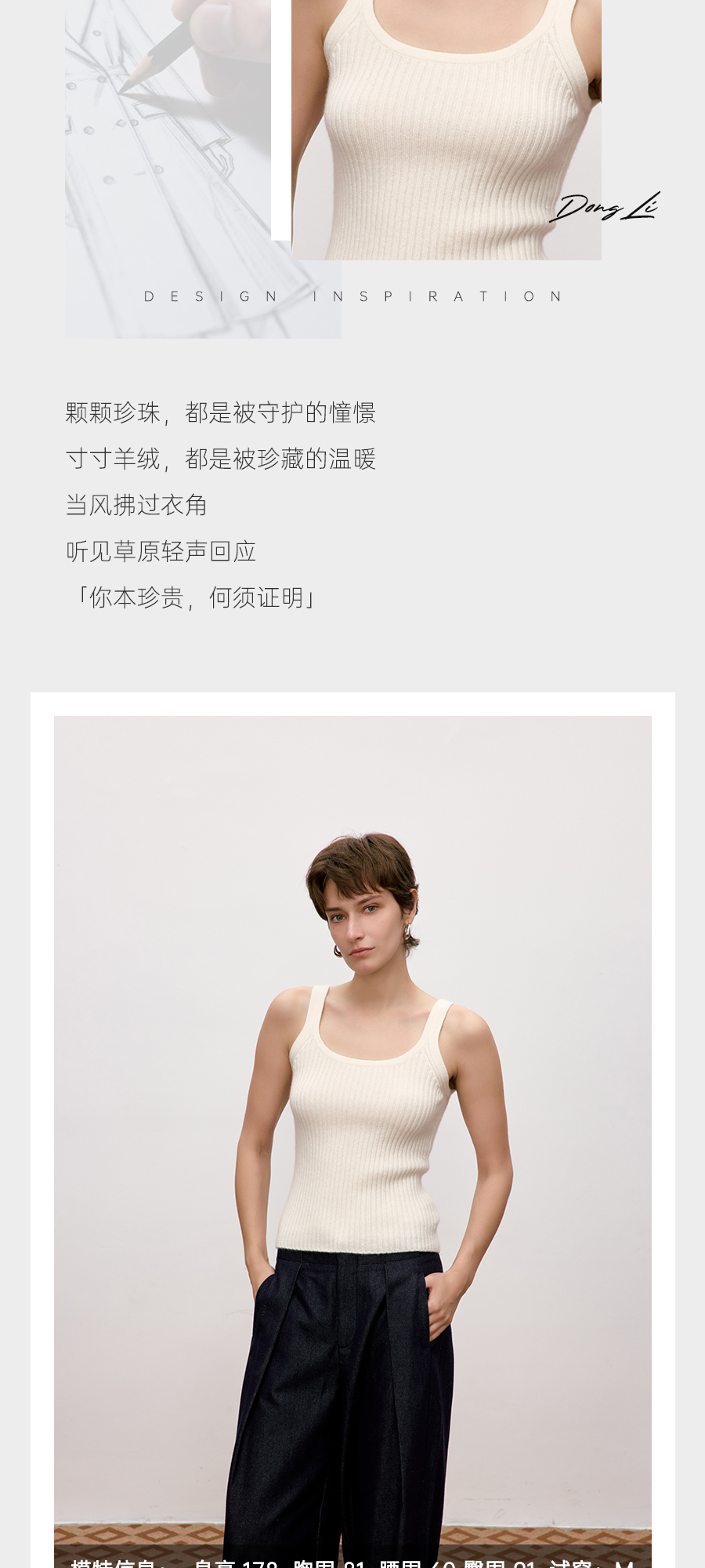 东黎 • 你本珍贵 万物共生-背心 山羊绒女士打底方领背心 5484