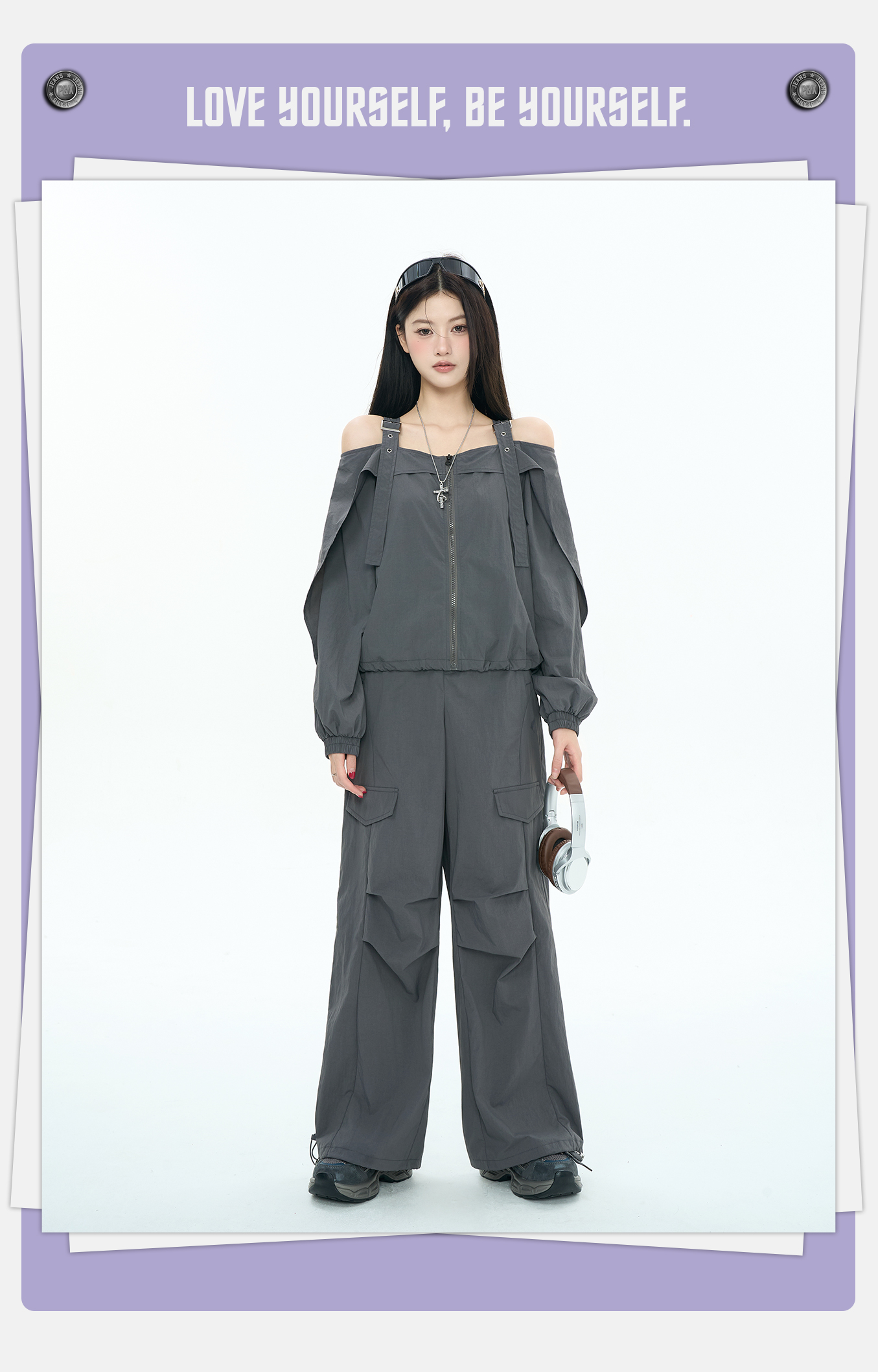 P&X设计师女装2025秋季时尚套装长裤抽绳韩版825314152 灰色