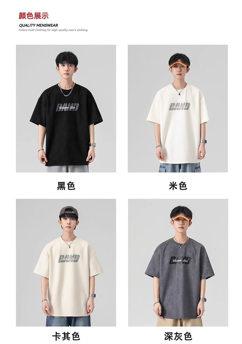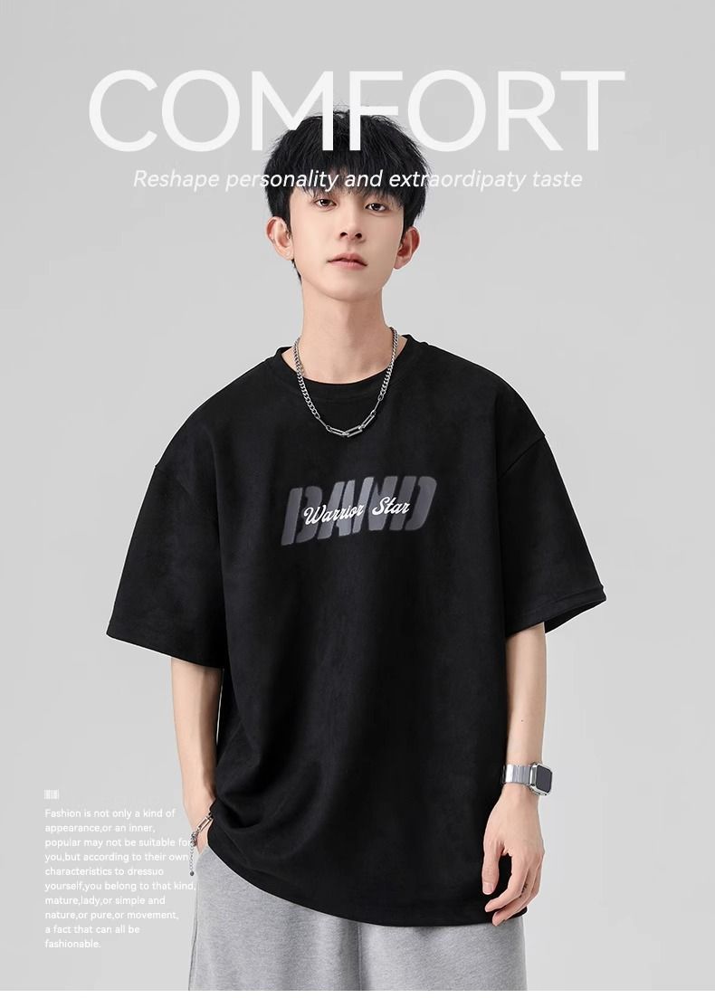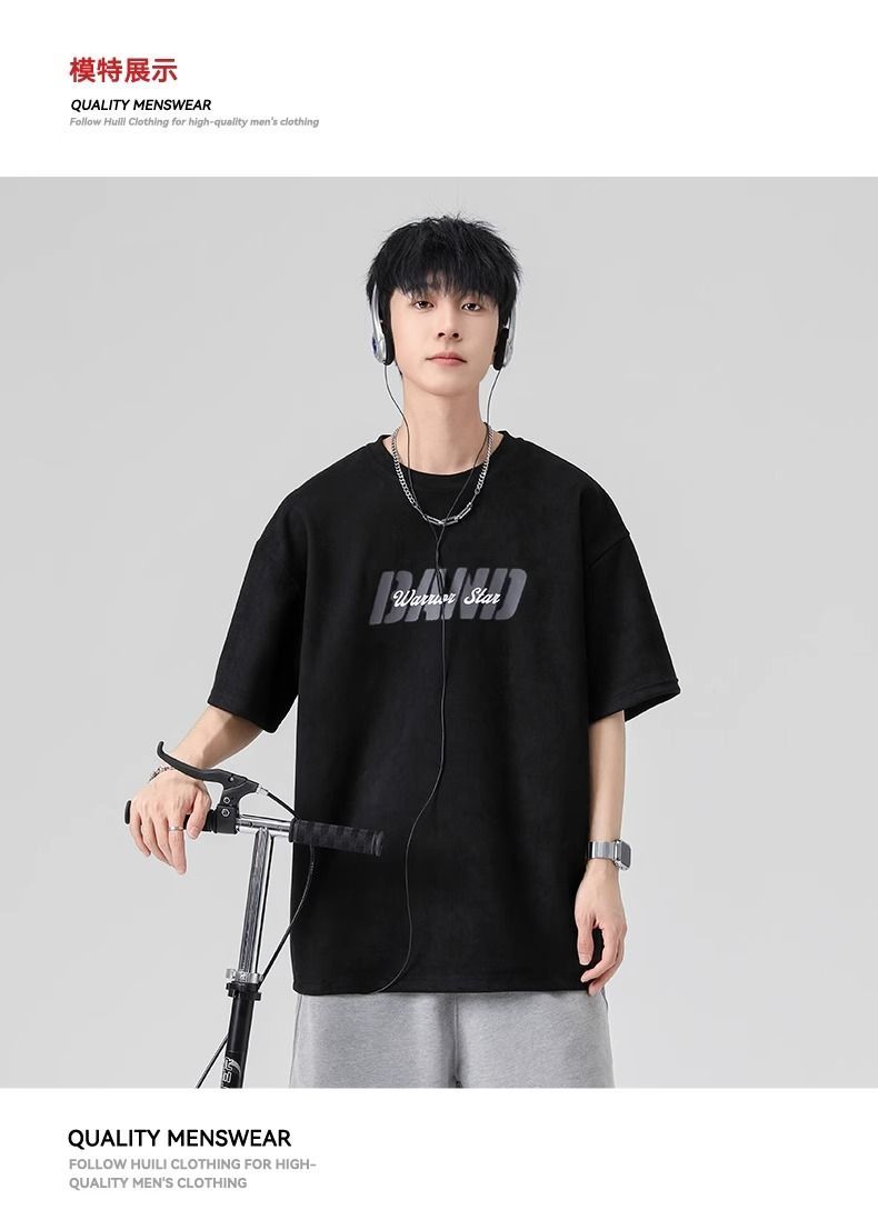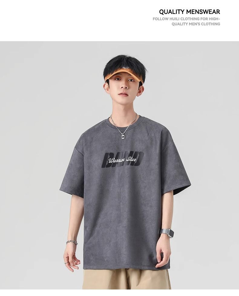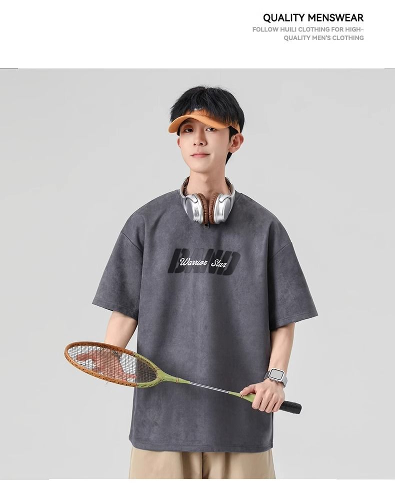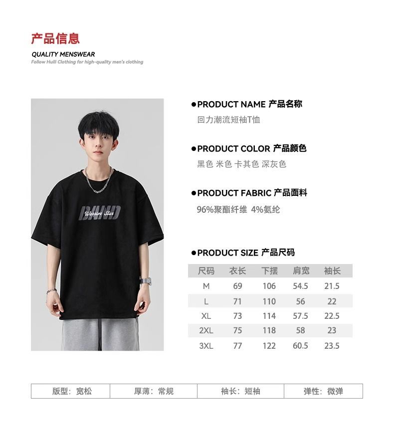 回力短袖男夏季新款重磅字母潮流麂皮绒圆领宽松印花半袖T恤