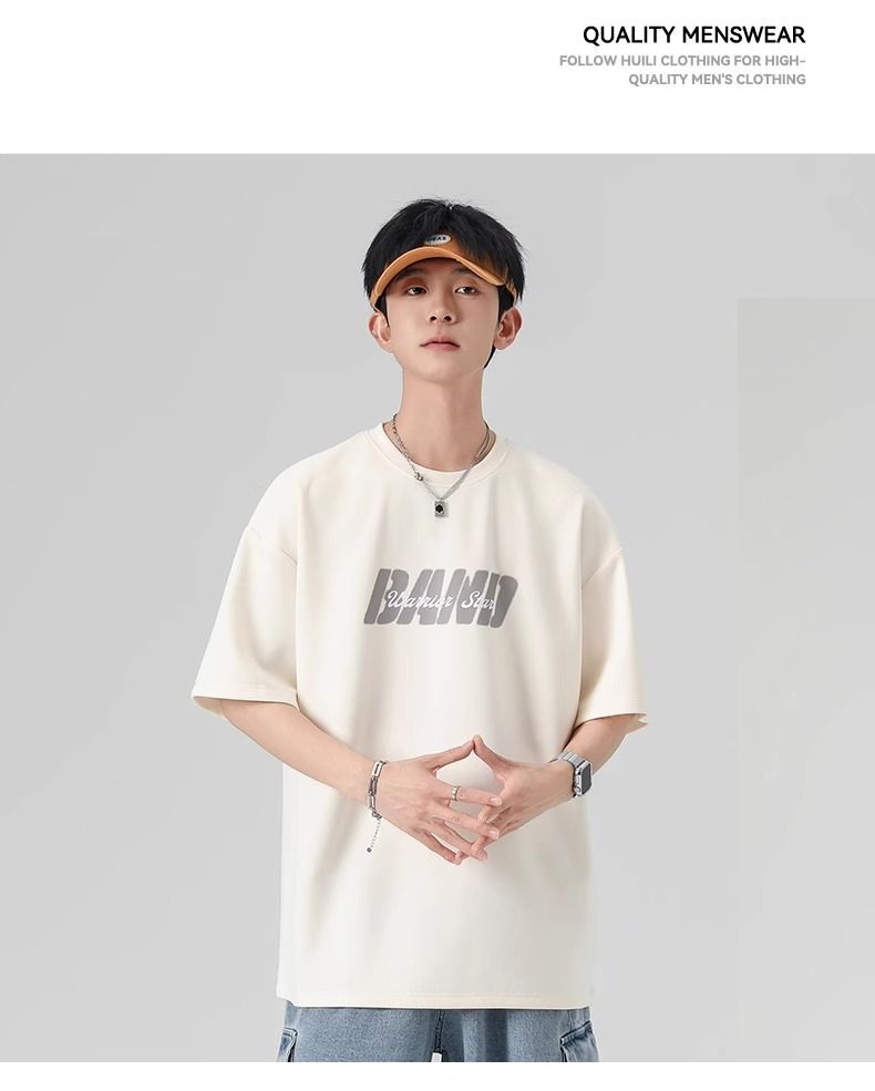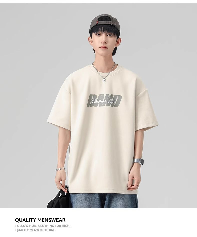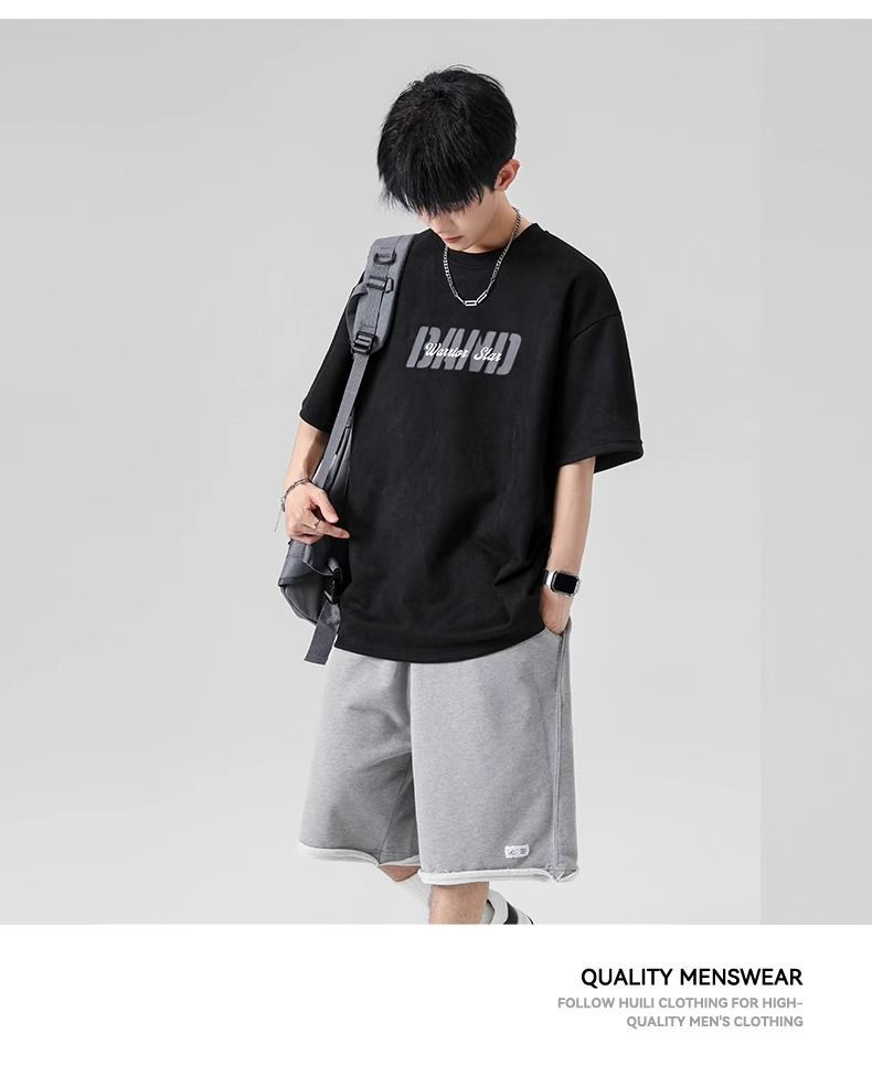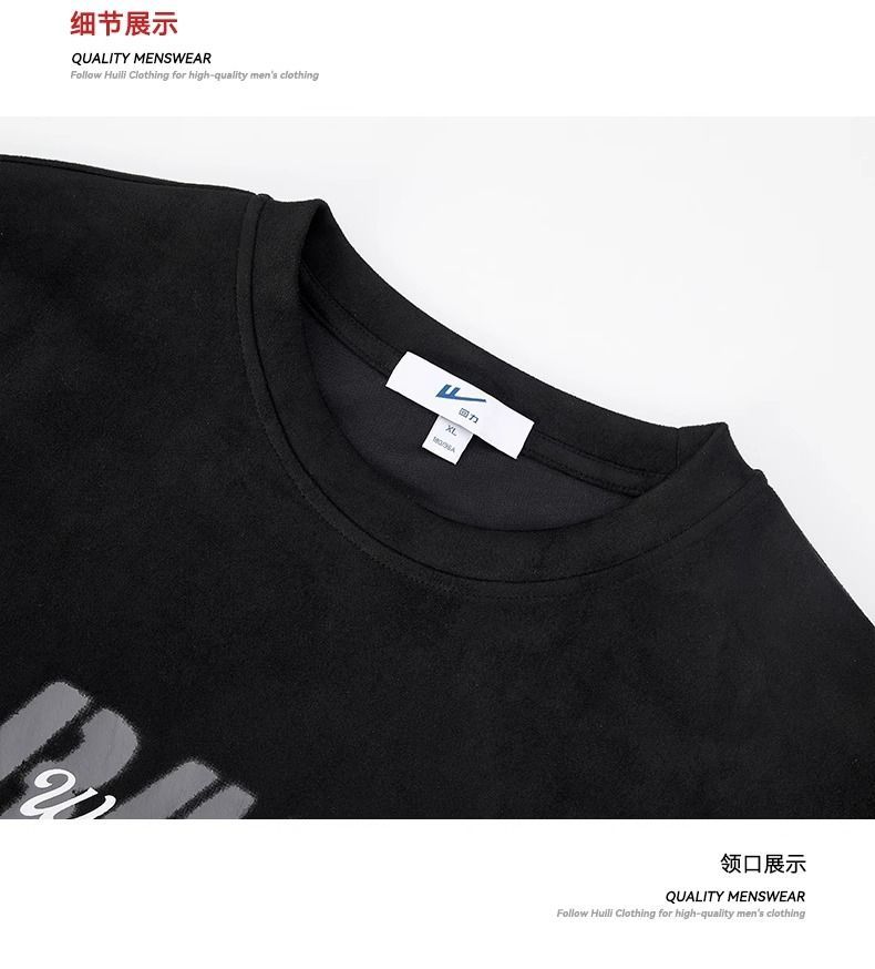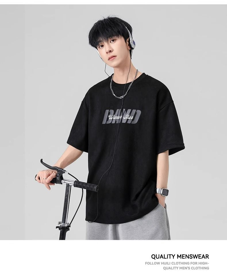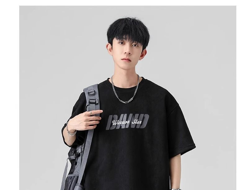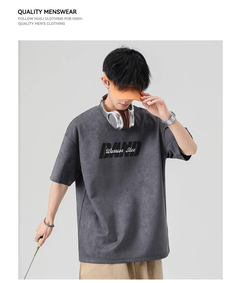 回力短袖男夏季新款重磅字母潮流麂皮绒圆领宽松印花半袖T恤