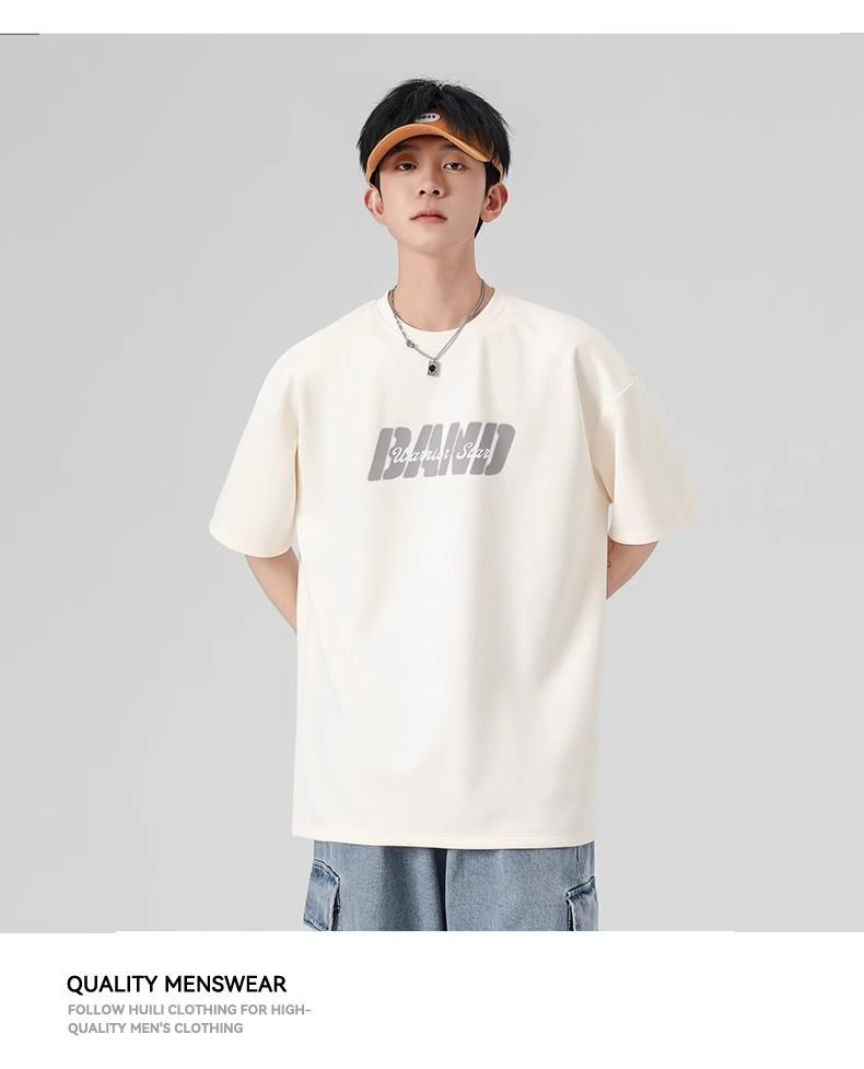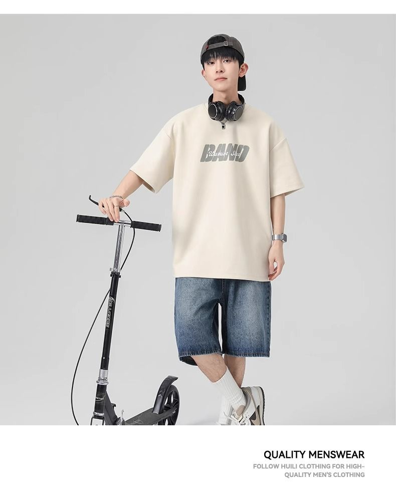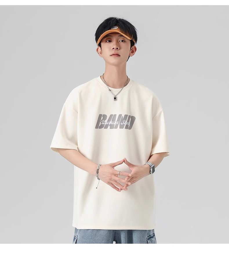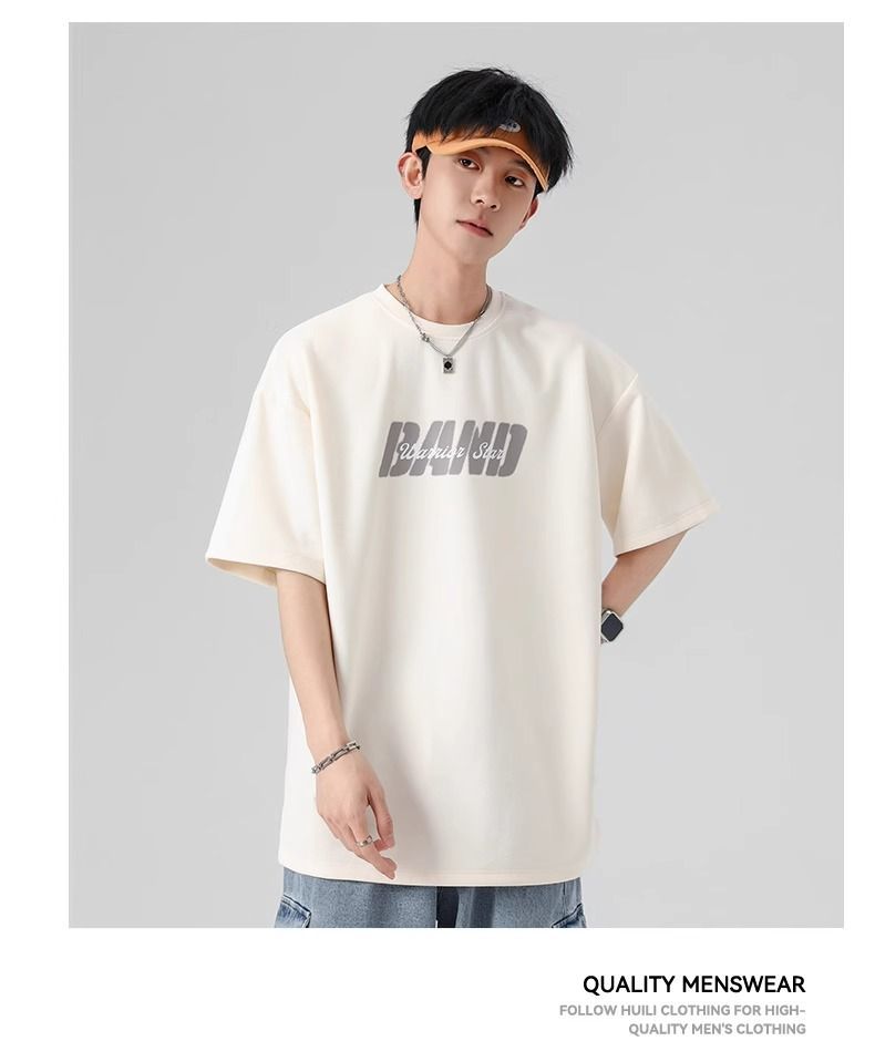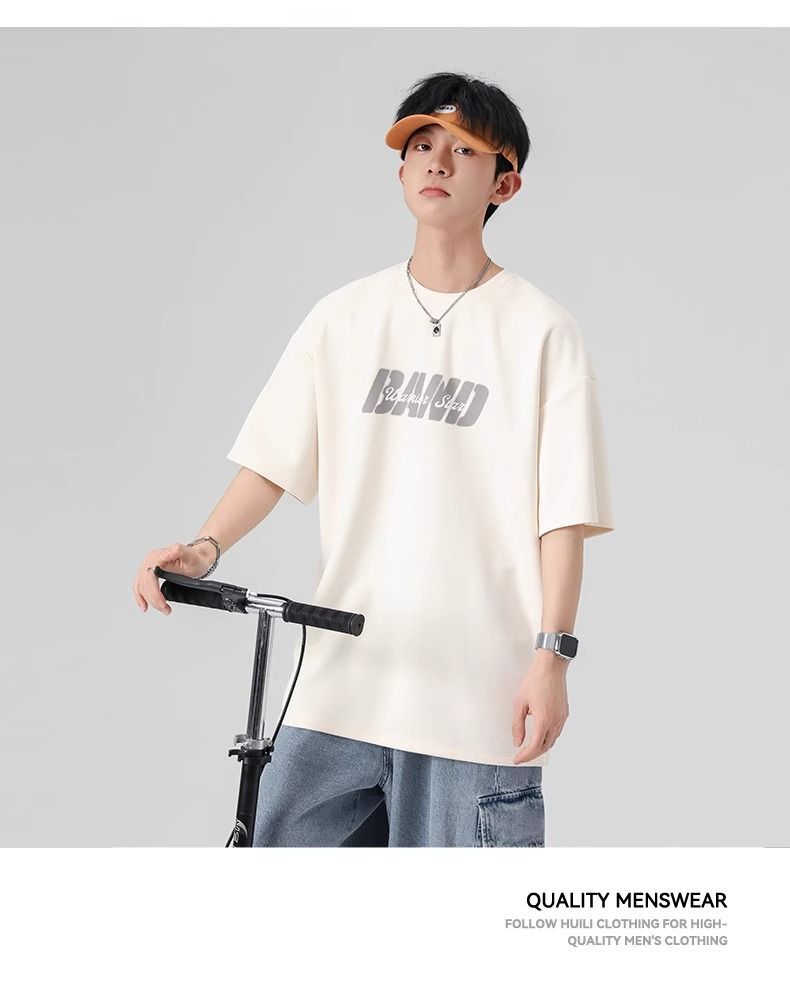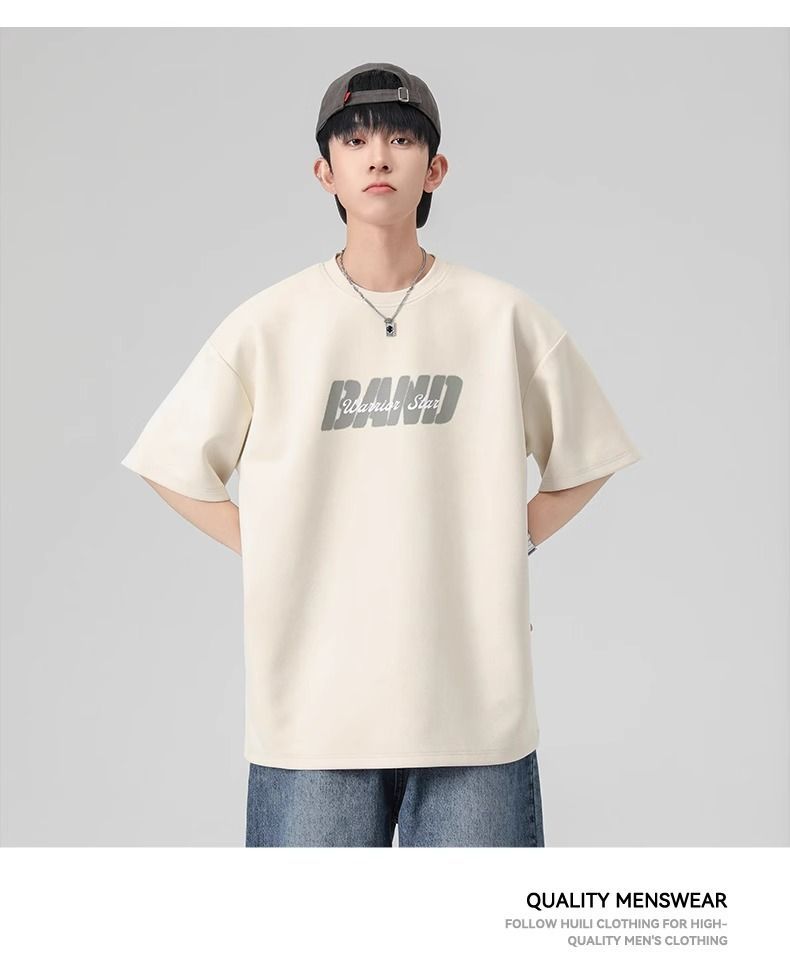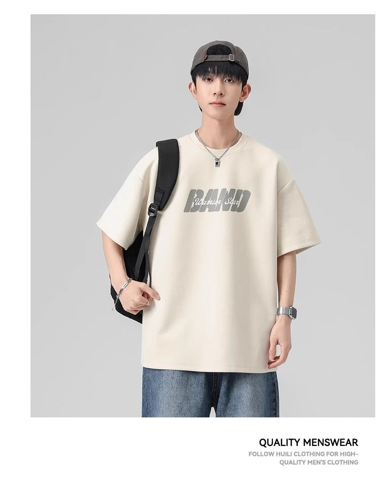 回力短袖男夏季新款重磅字母潮流麂皮绒圆领宽松印花半袖T恤