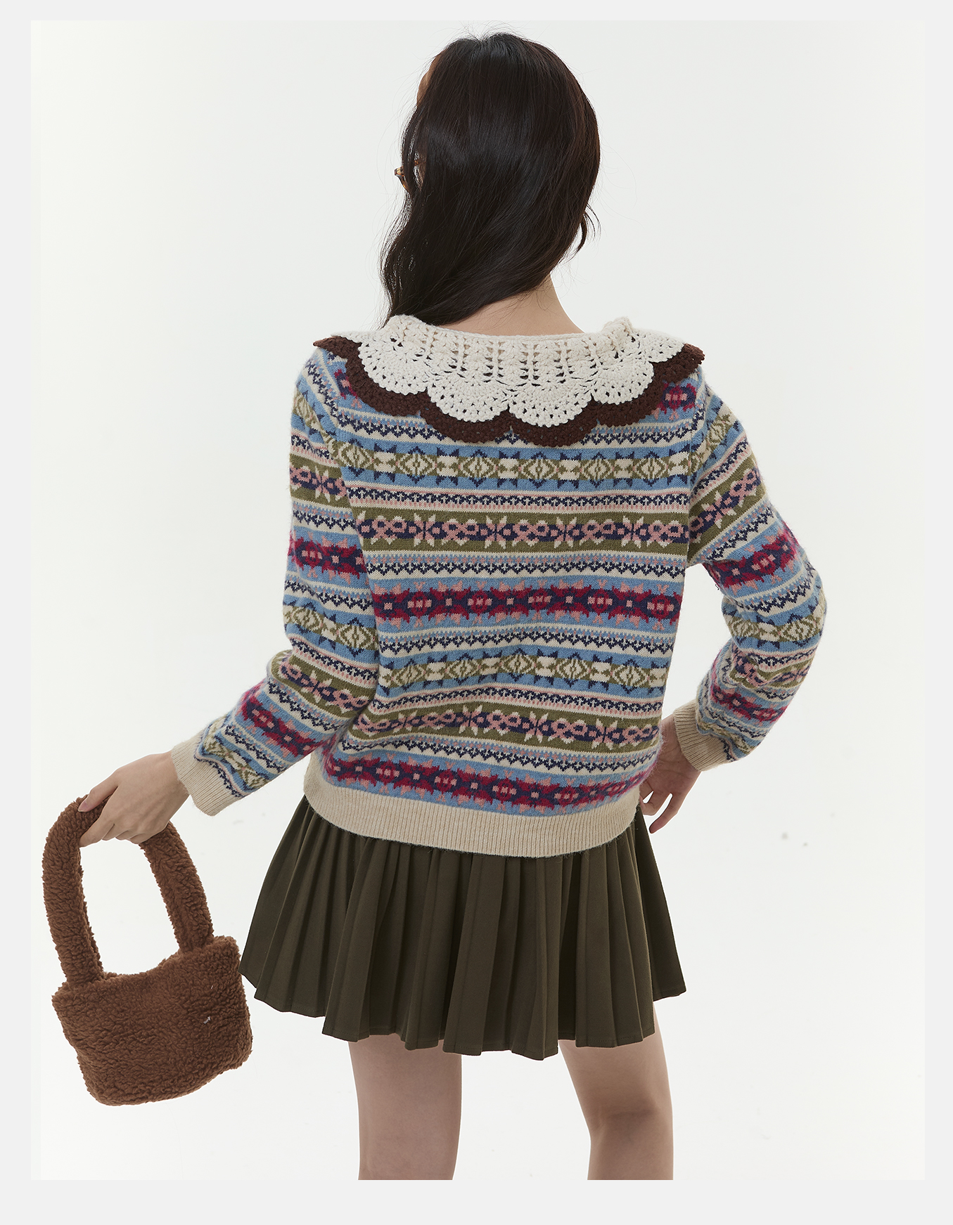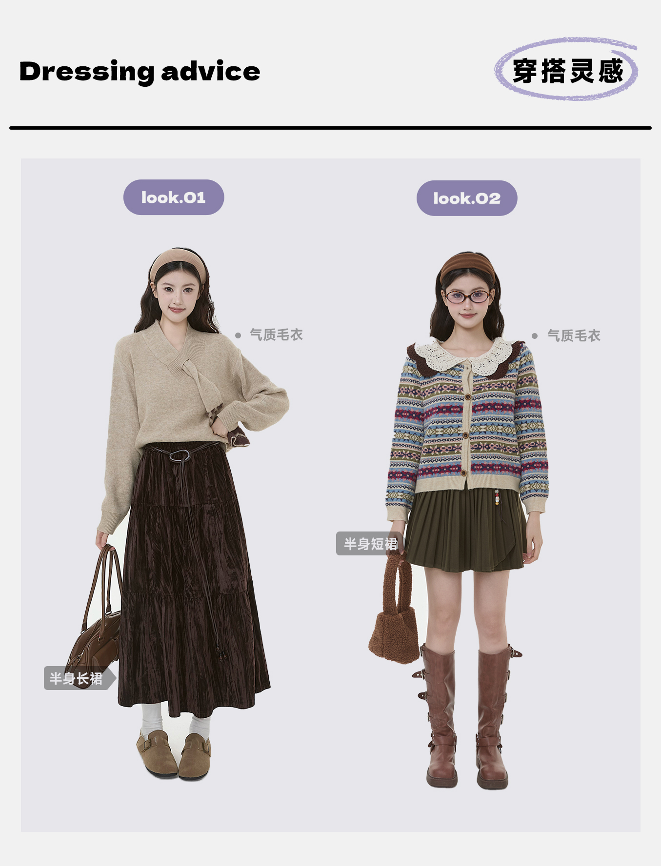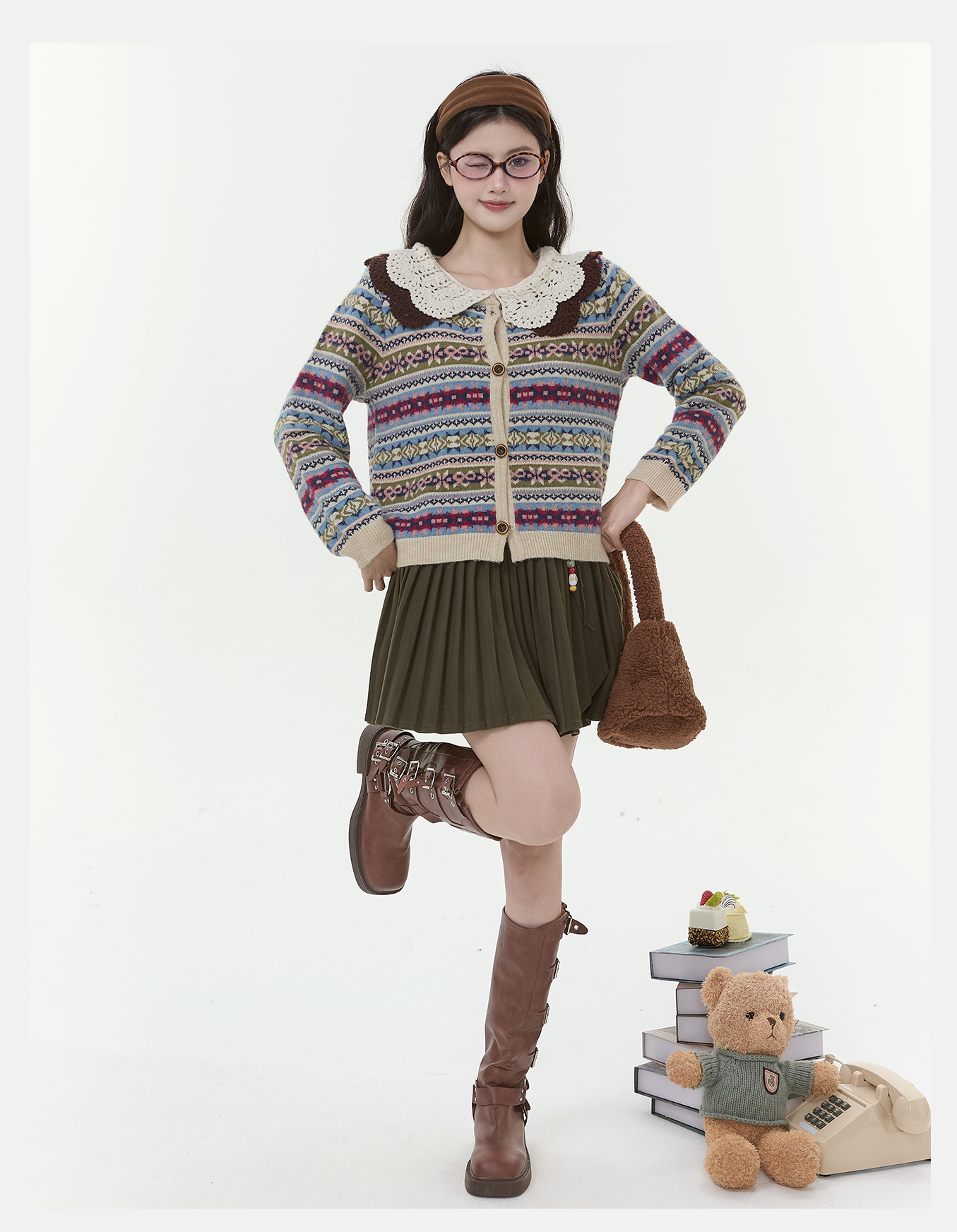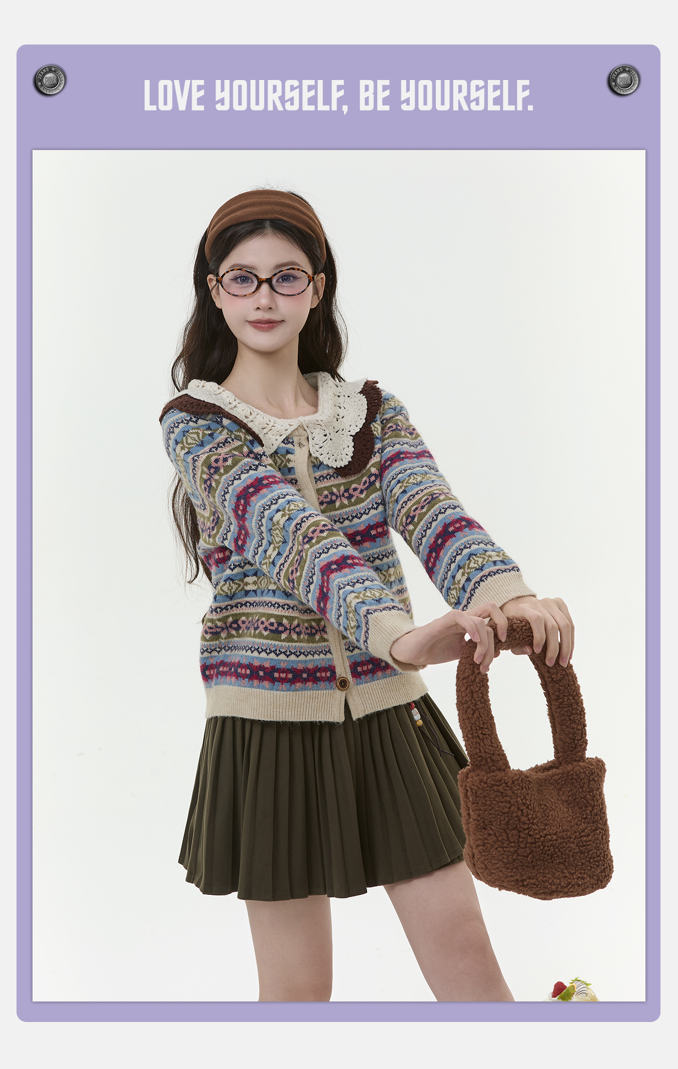 P&X设计师女装2025冬季开衫小香风复古短款毛衣 825418172 花色