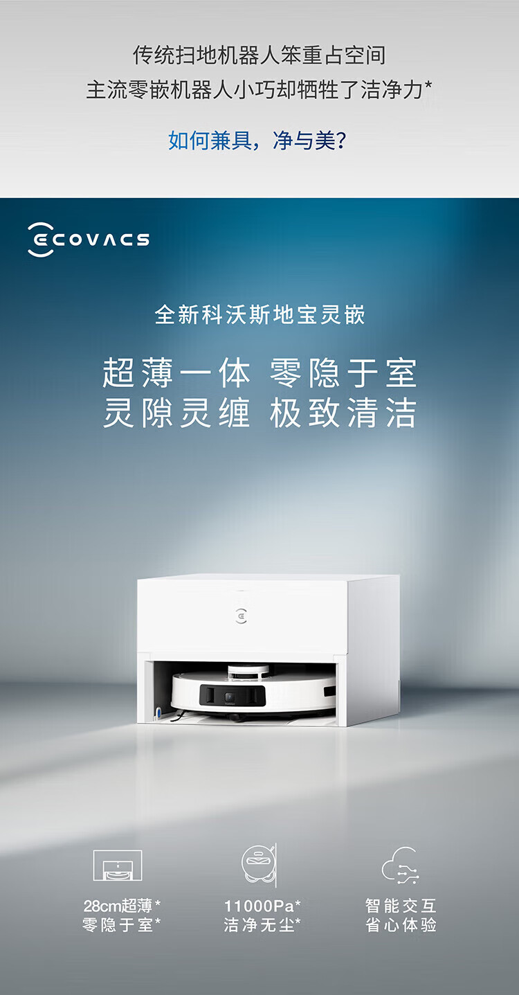 科沃斯(ECOVACS)扫地机器人灵嵌扫拖一体自动清洗全自动清洁一体超薄嵌入式_T30PRO超薄上下水嵌入式_T30PRO灵嵌【晒单返现100红包】【新】
